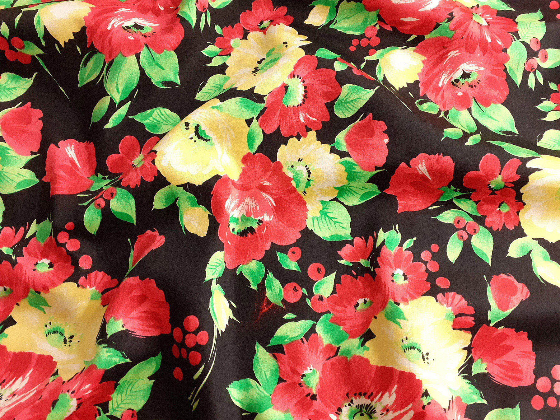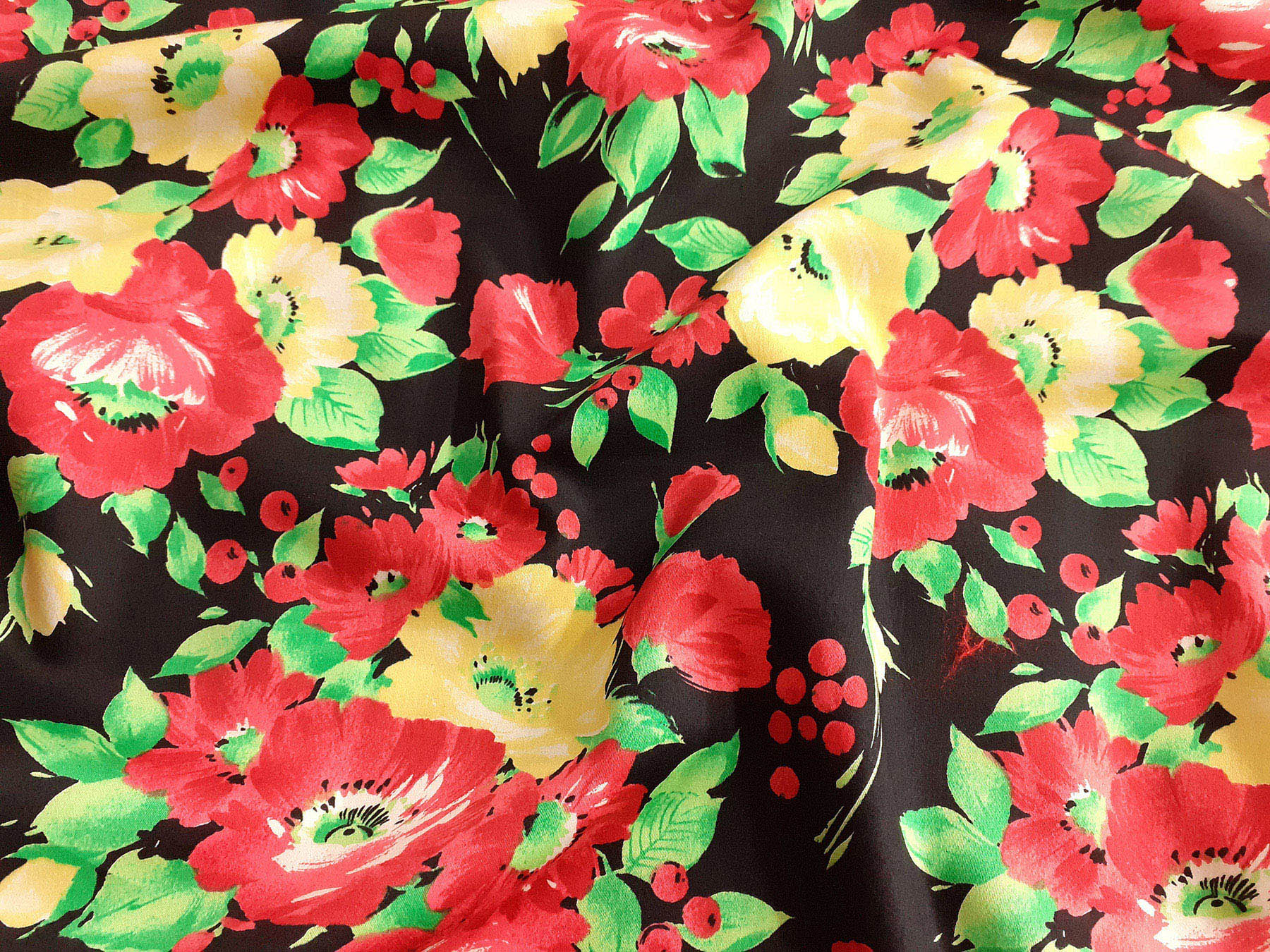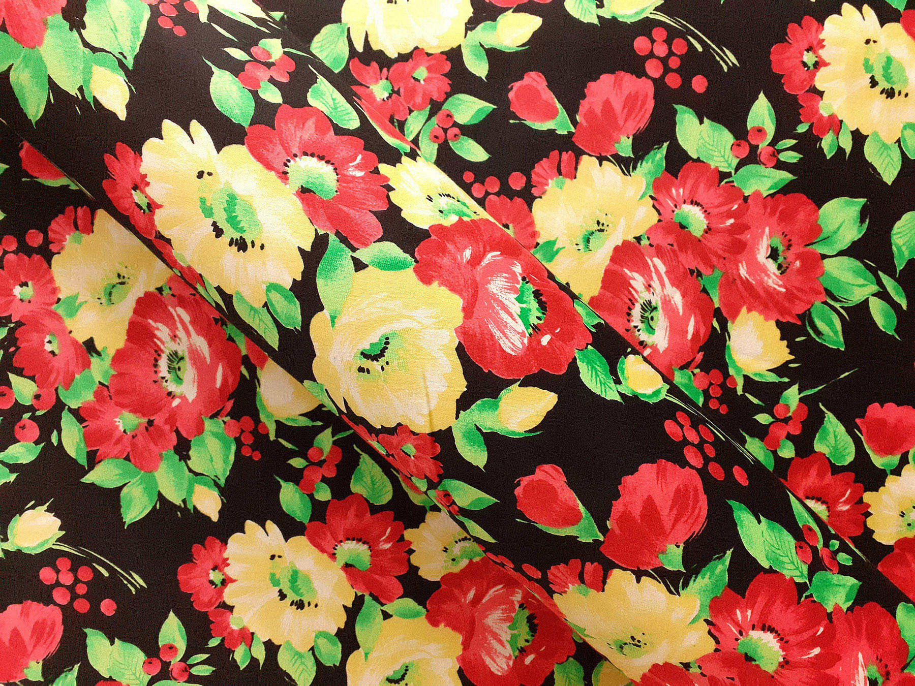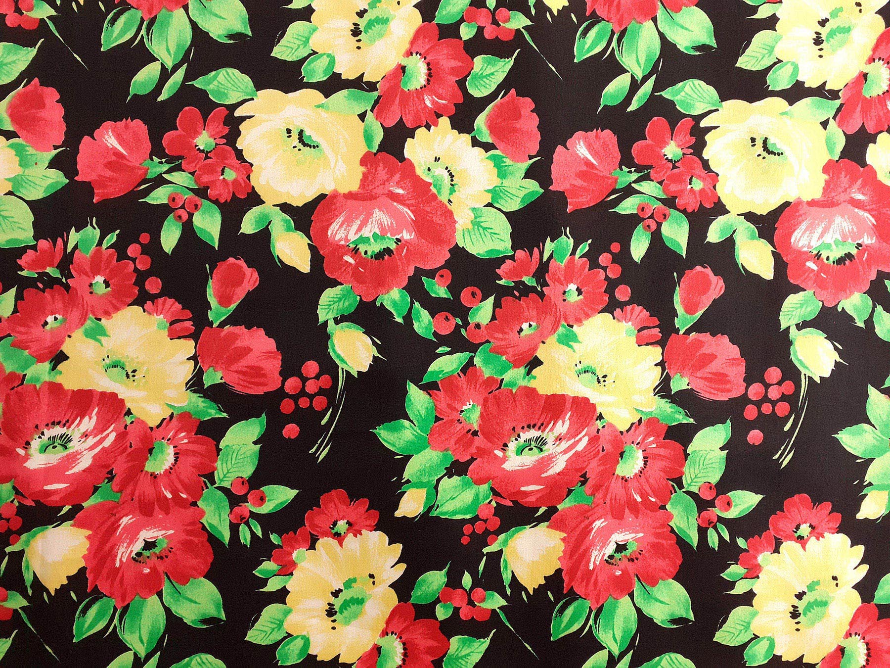 Raso in cotone fantasia floreale fondo nero