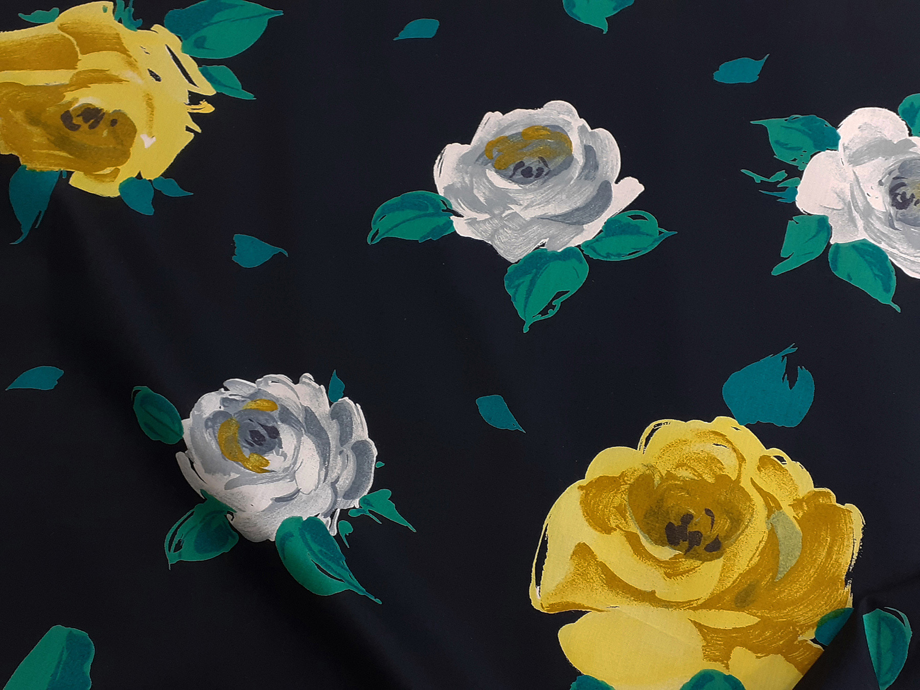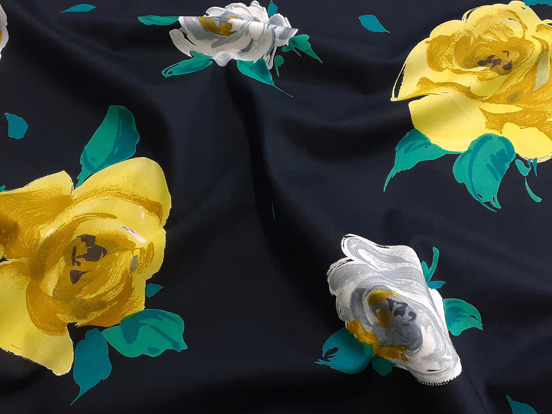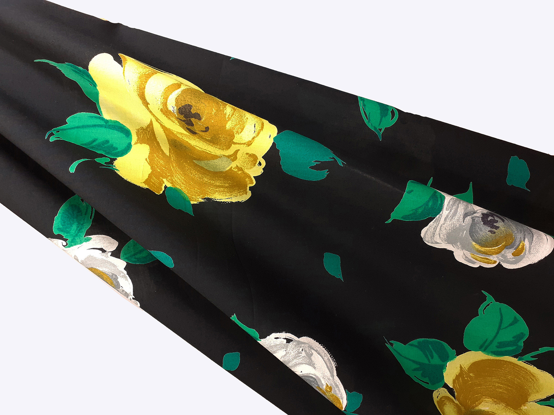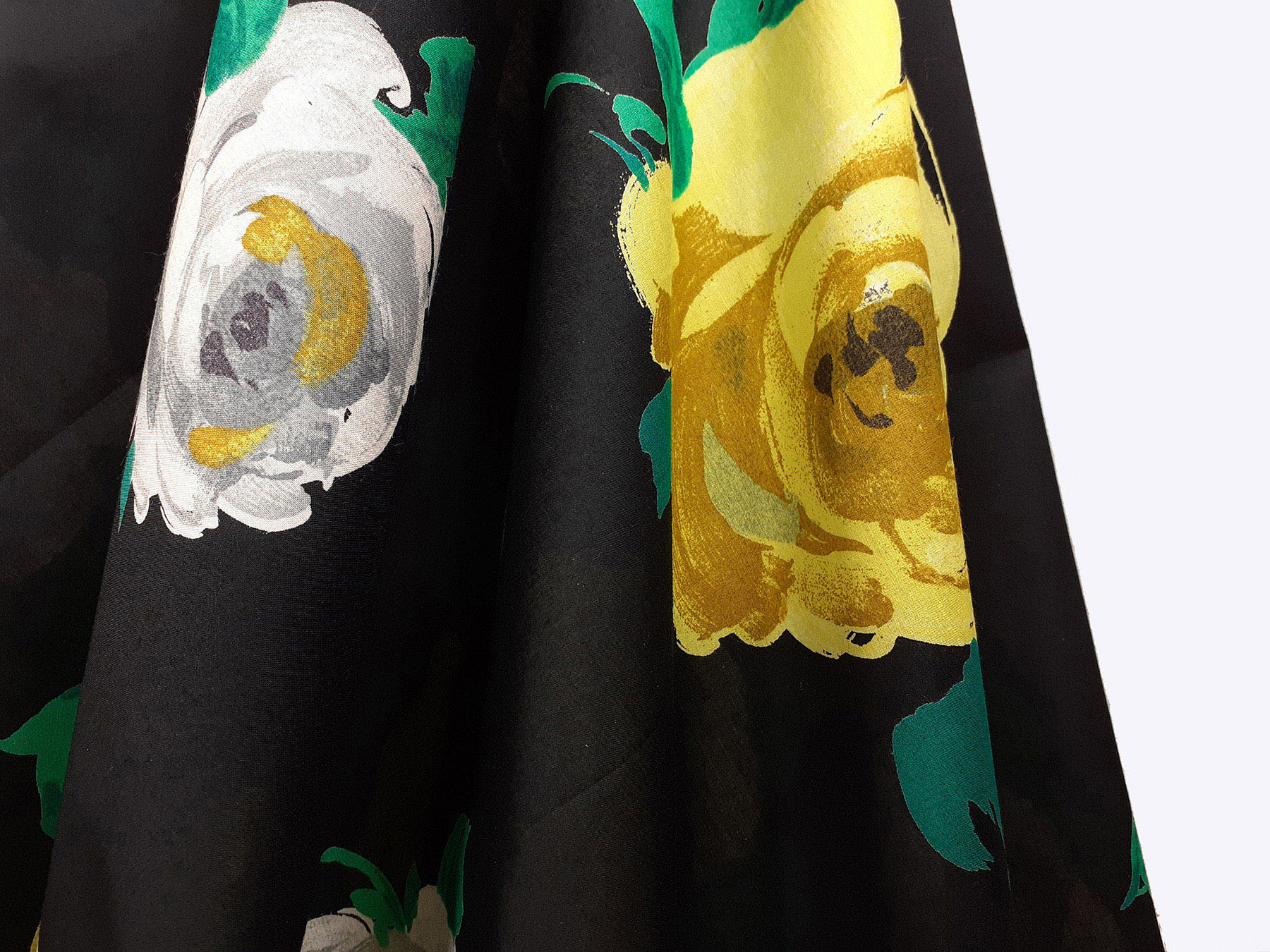 Tessuto per abiti, gonne morbide e camicie di peso medioleggero in puro cotone mercerizzato e ritorto. Ha mano morbida e aspetto lucente che si ottiene con la classica armatura a tela dove ogni filo di ordito si intreccia con ogni filo di trama.