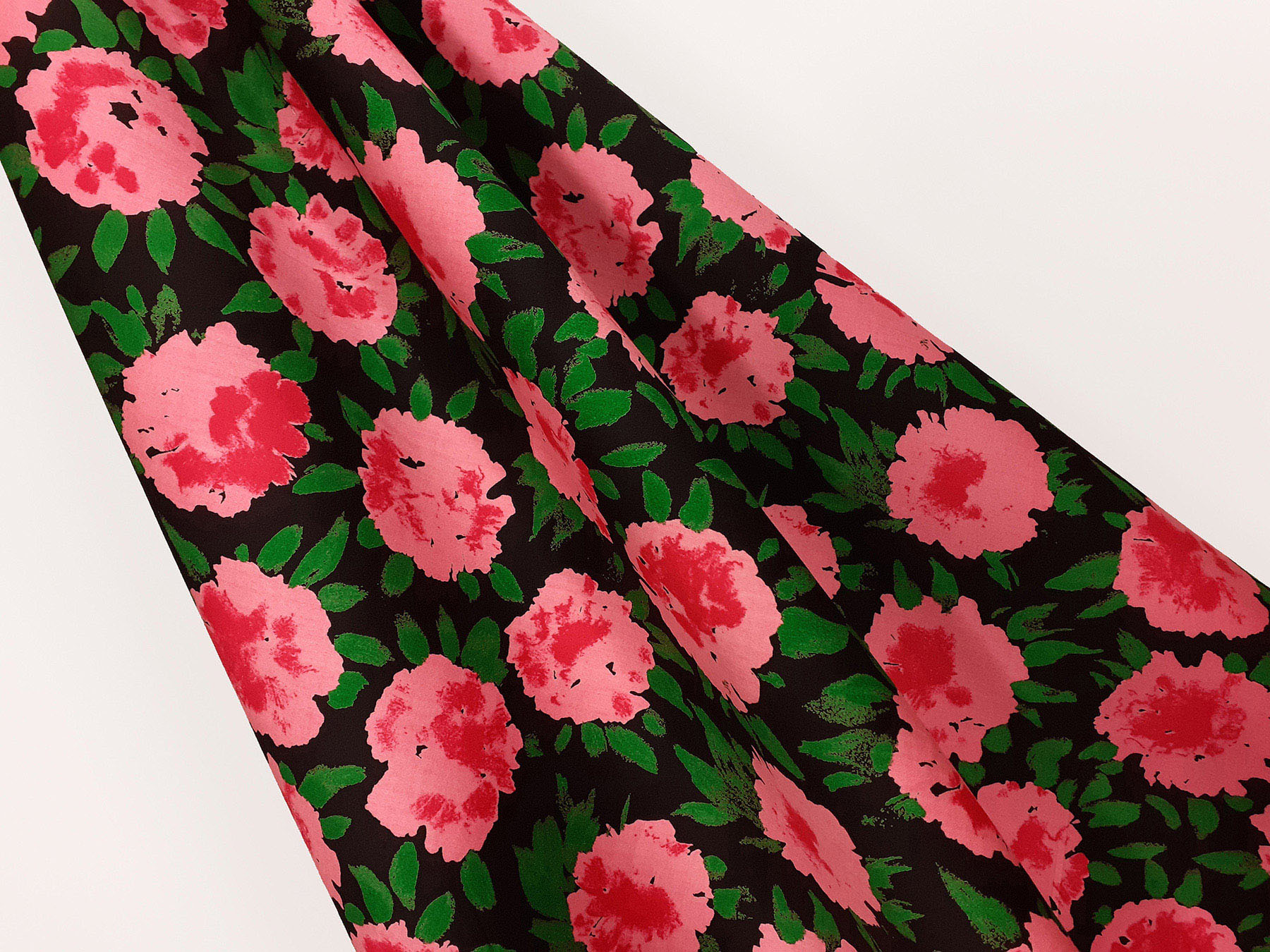 Questo tessuto in raso di cotone di peso medio è caratterizzato da una mano morbida, una lucentezza elegante e una buona caduta. Perfetto per la realizzazione di abiti, camicie e top.