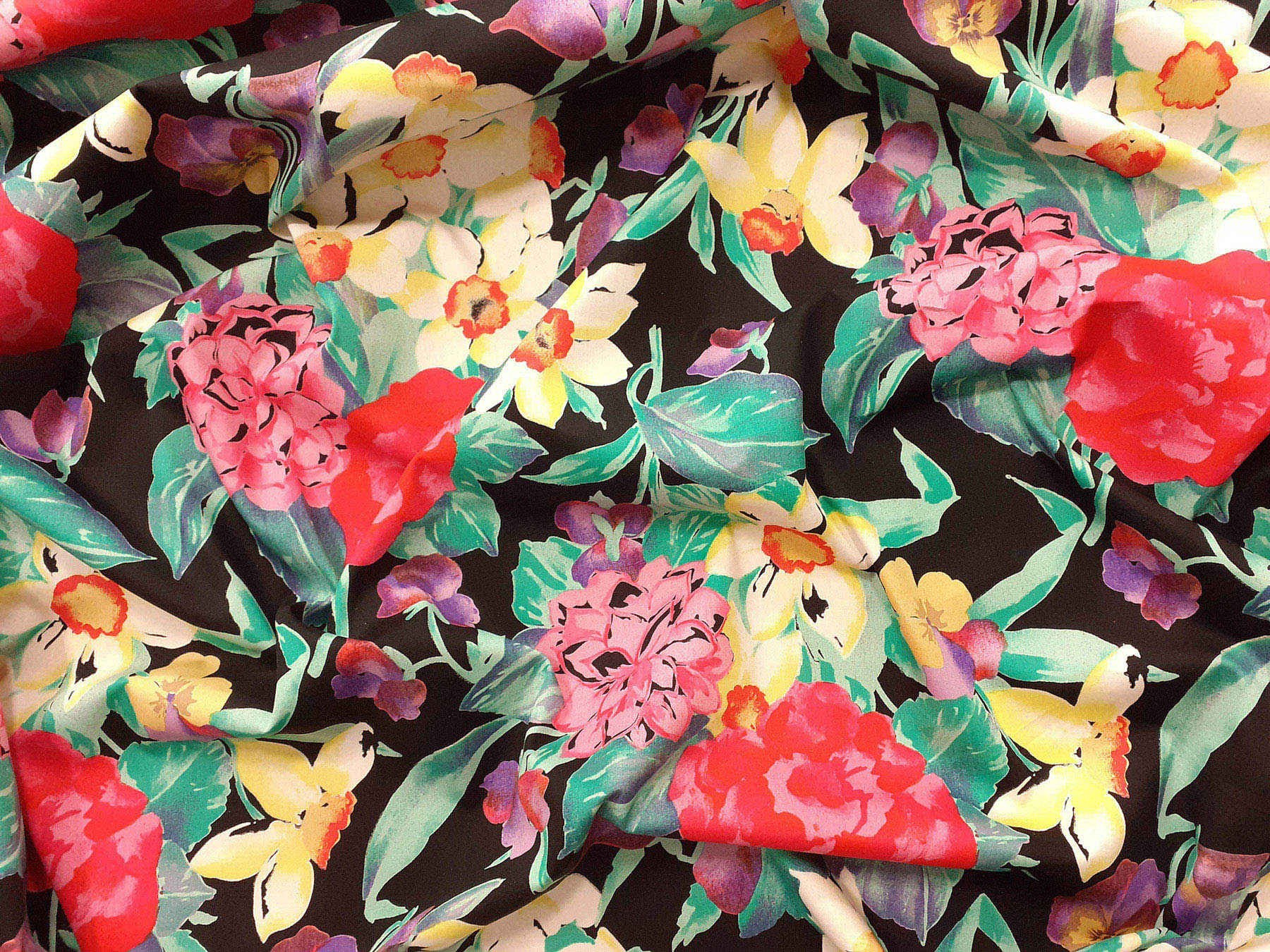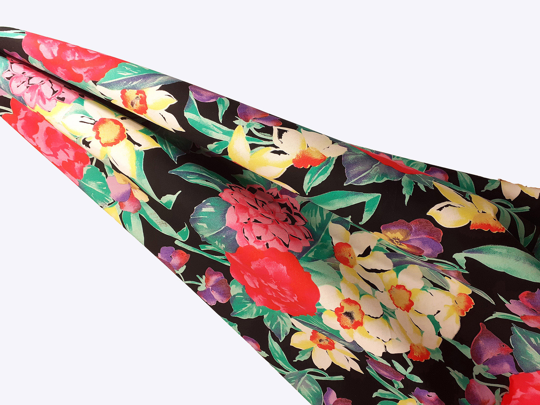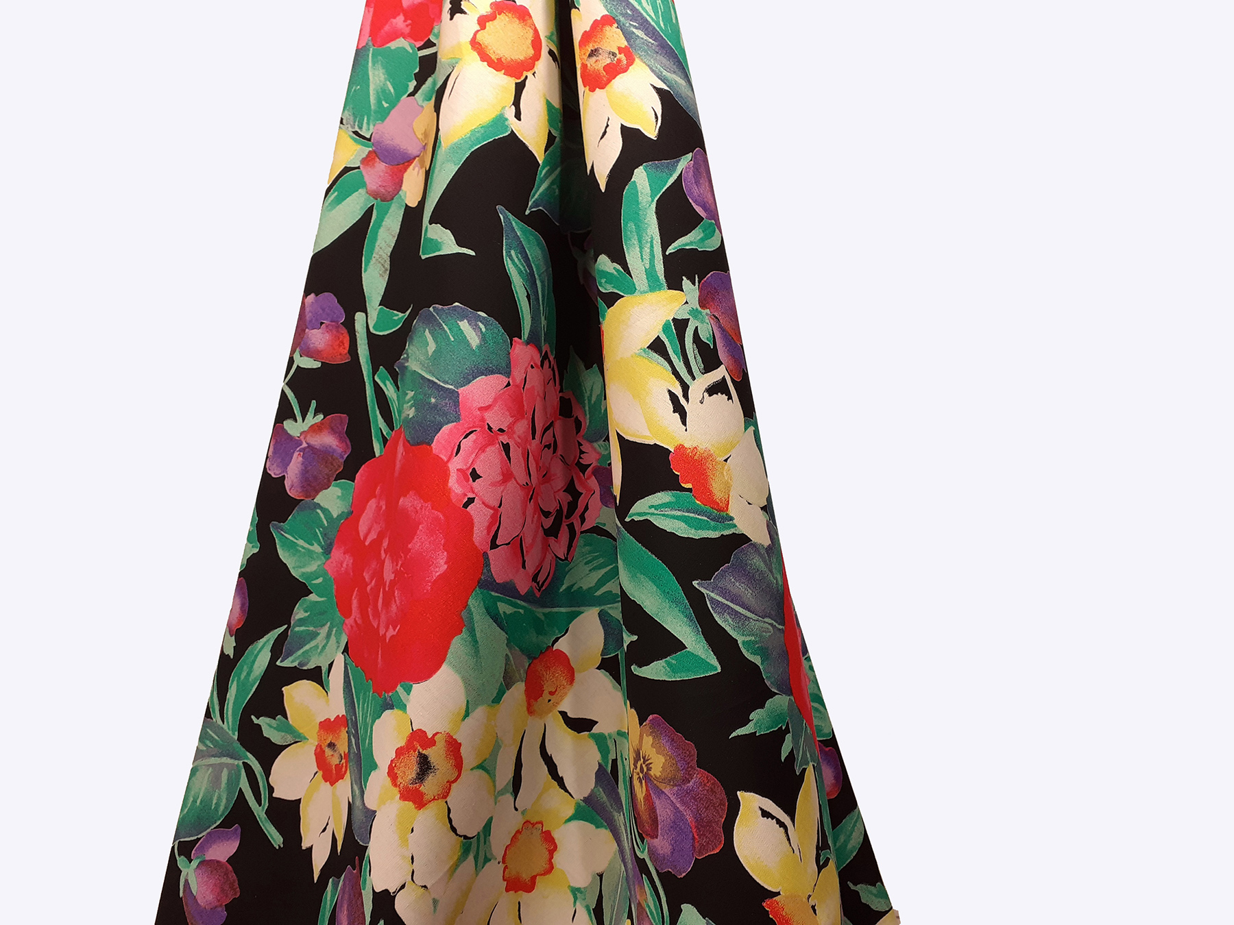 Popeline in cotone satinato fantasia floreale fondo nero