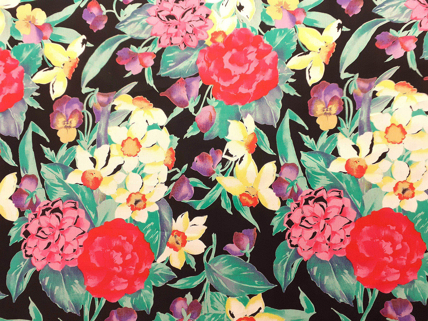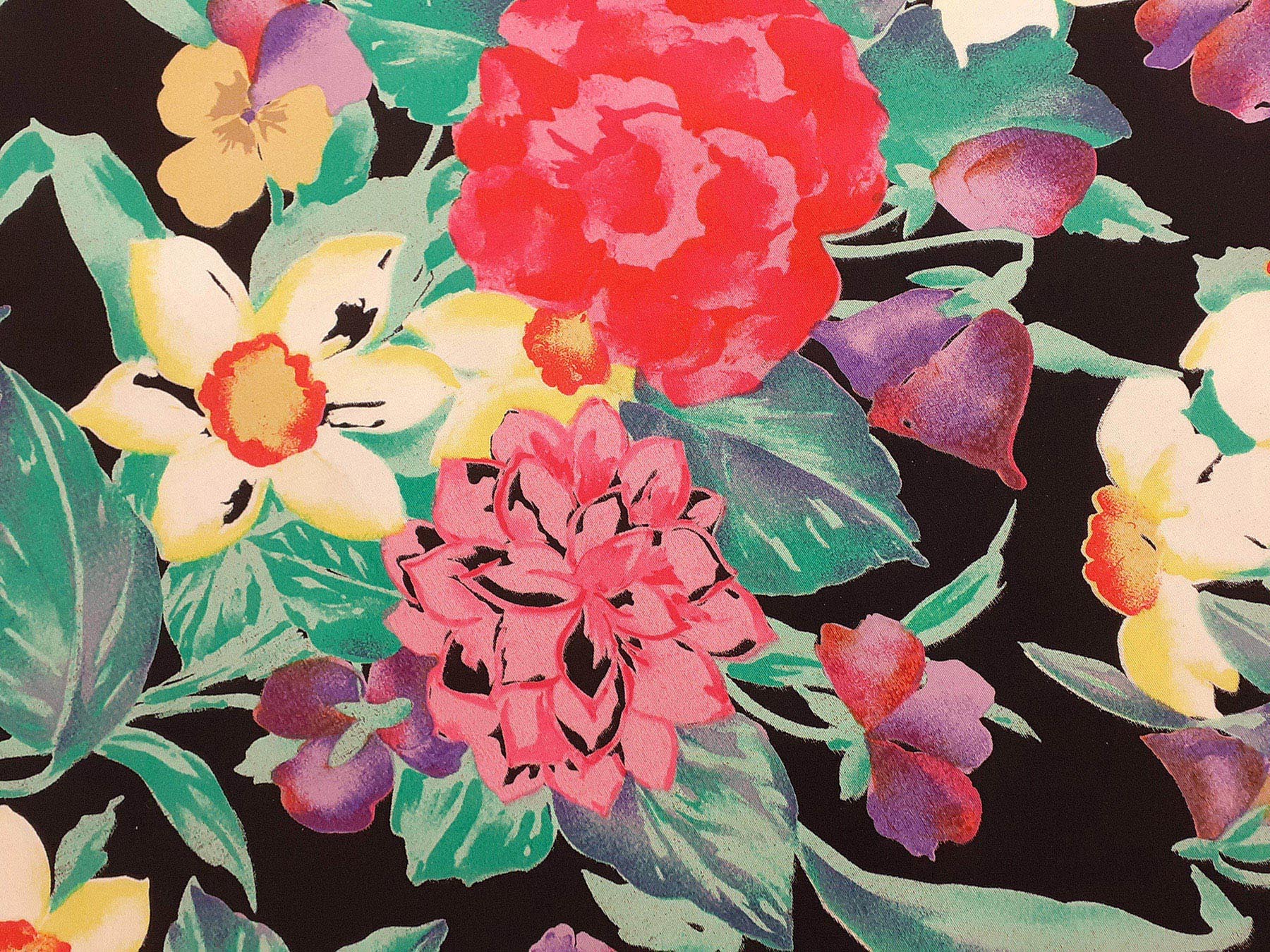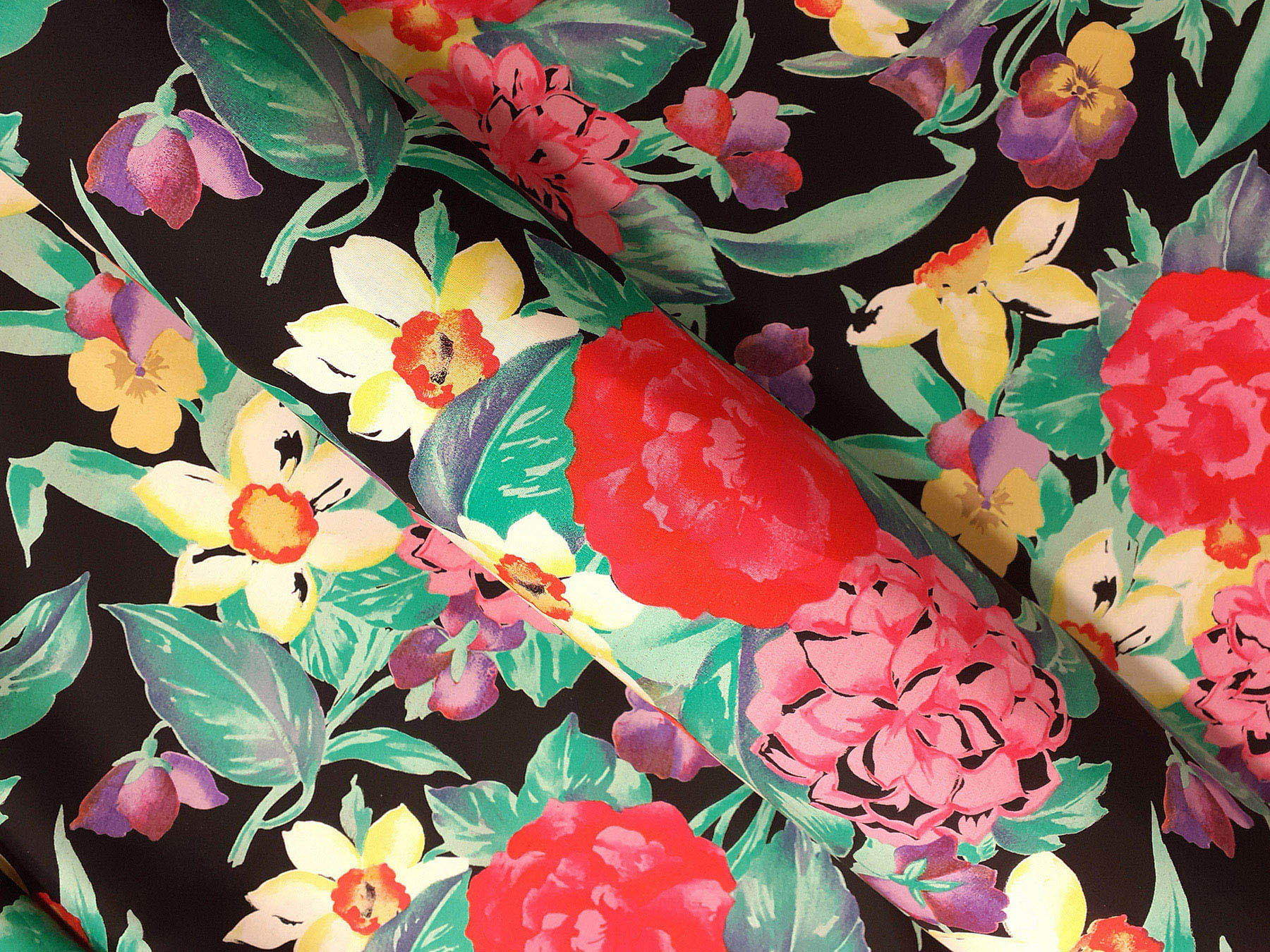 Popeline in cotone satinato fantasia floreale fondo nero