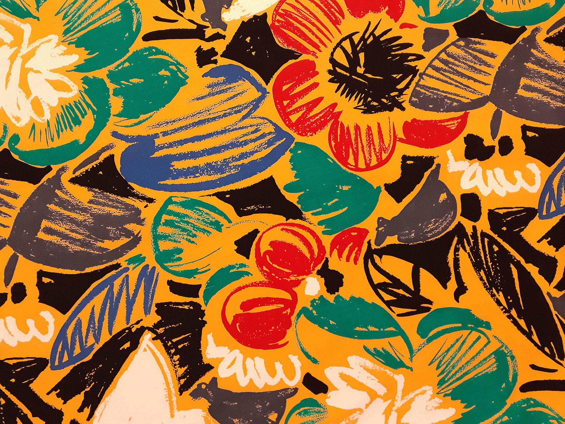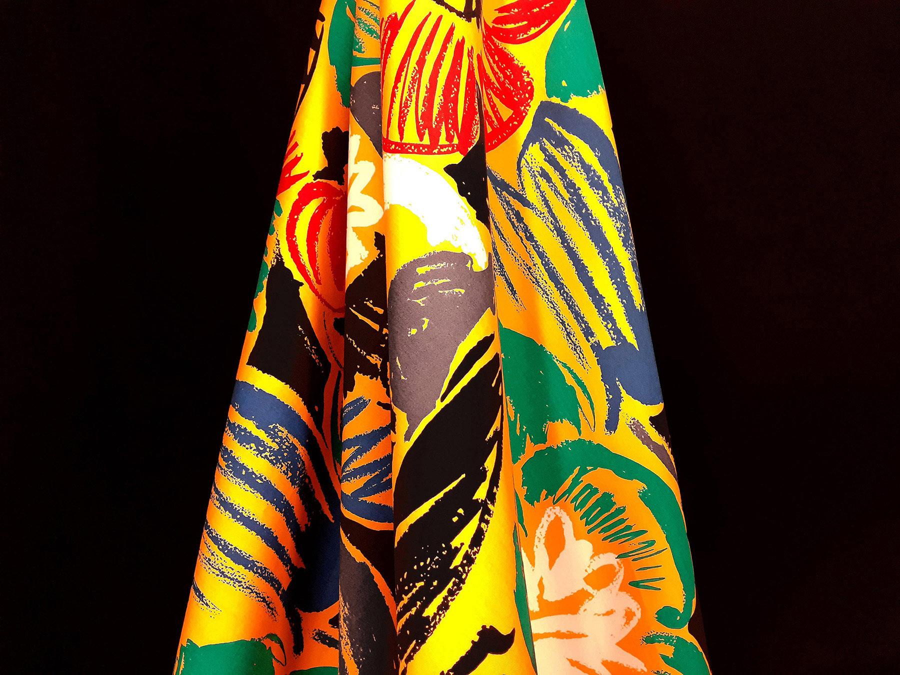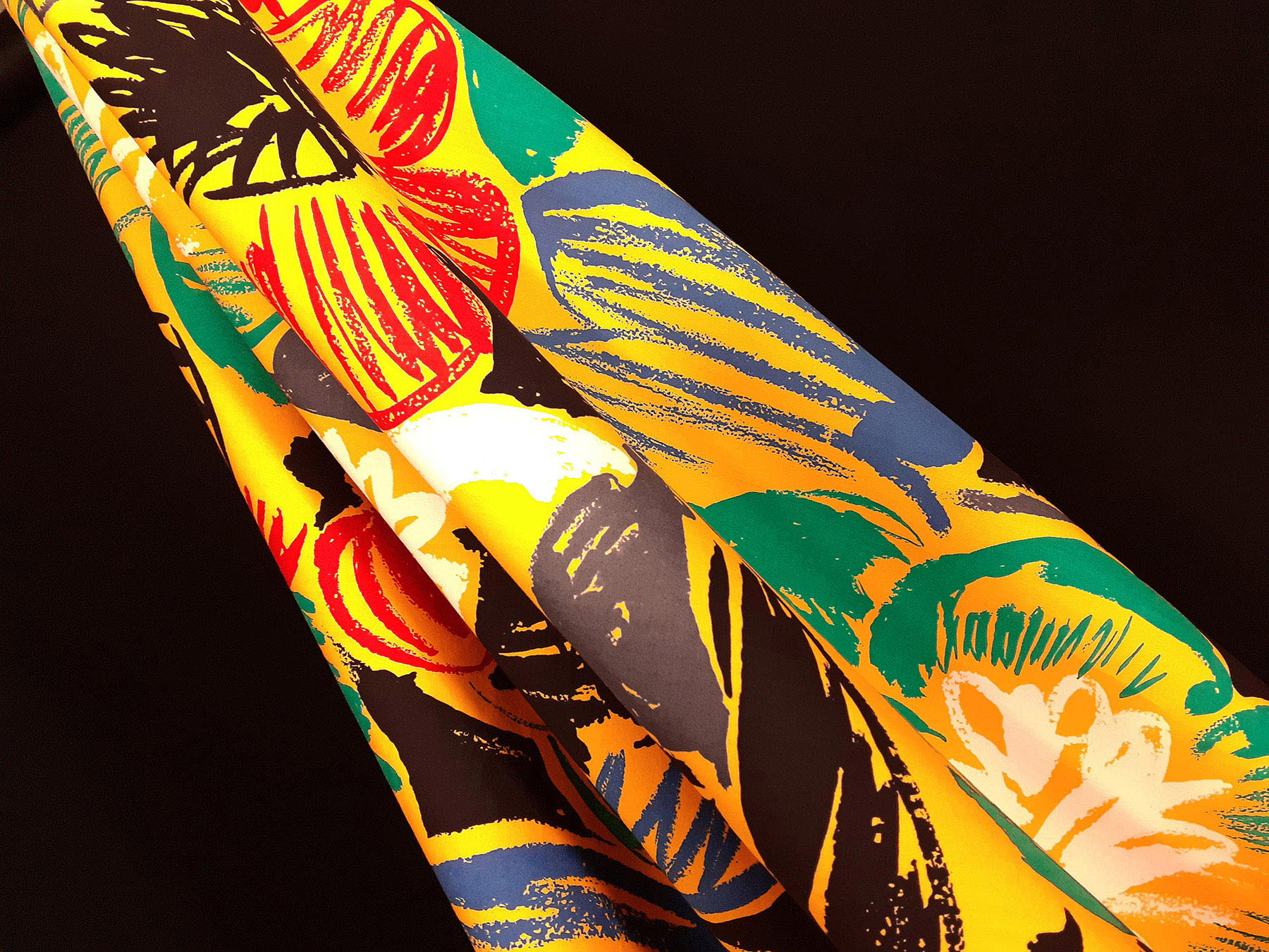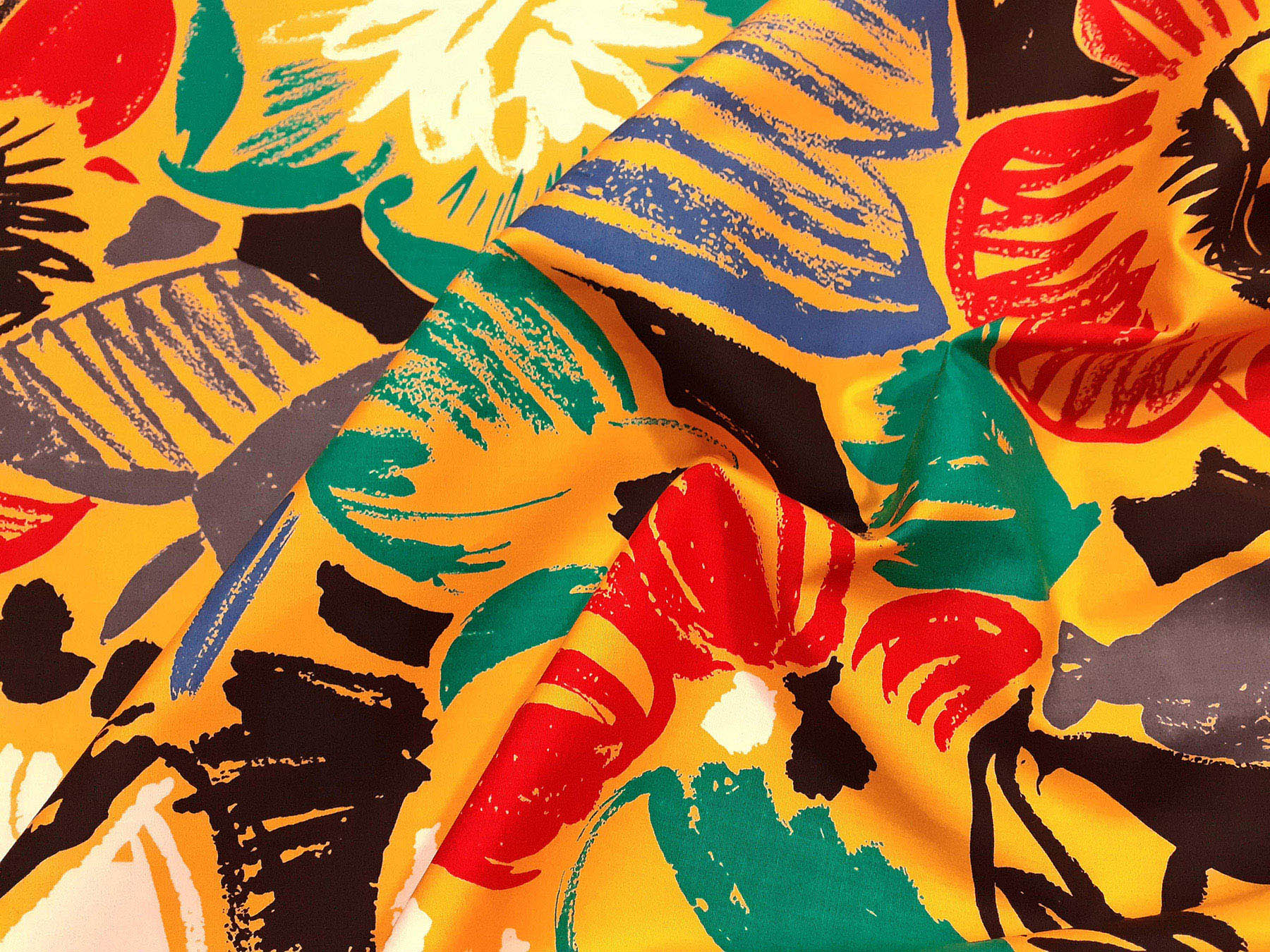 Popeline in cotone satinato fantasia astratta fondo giallo
