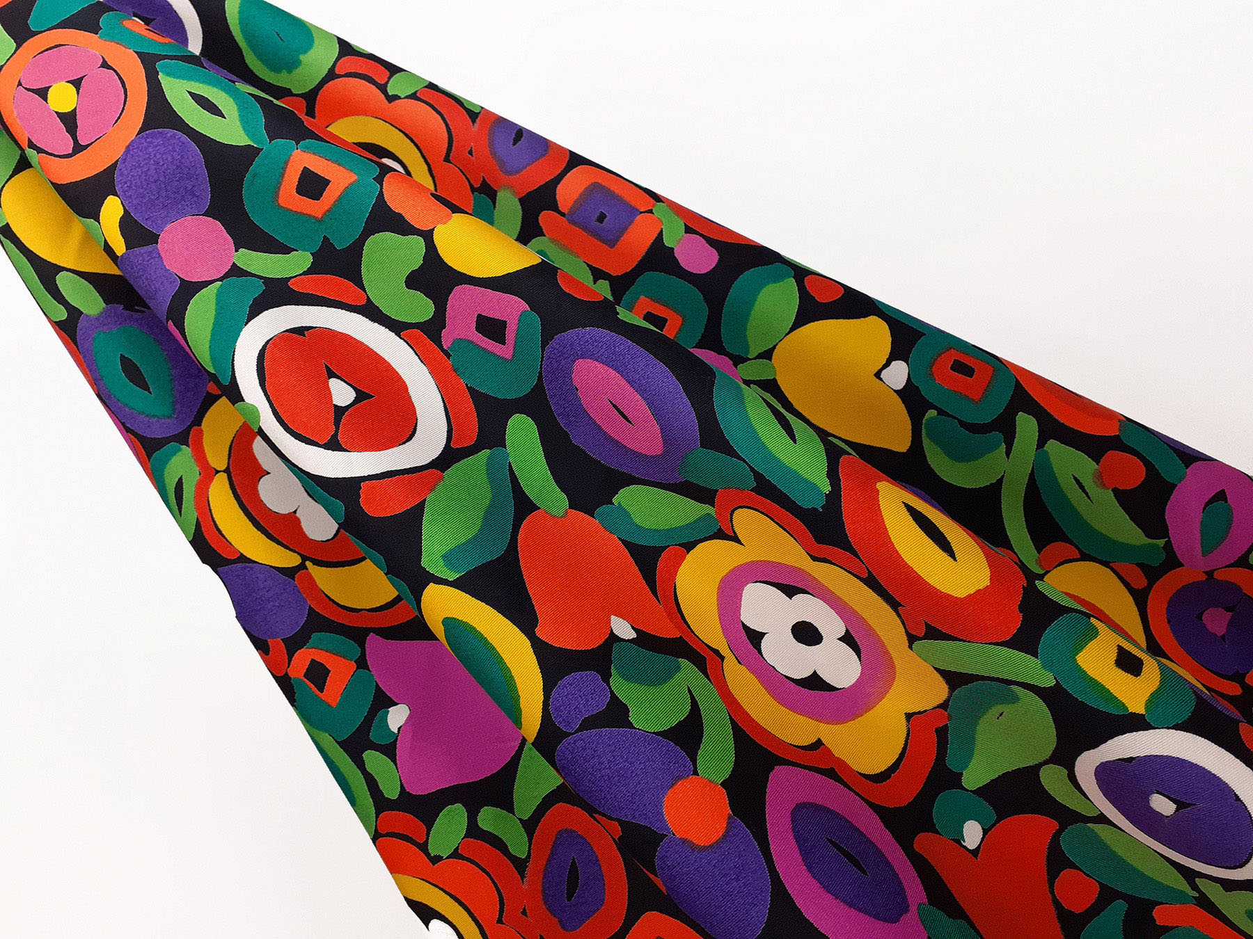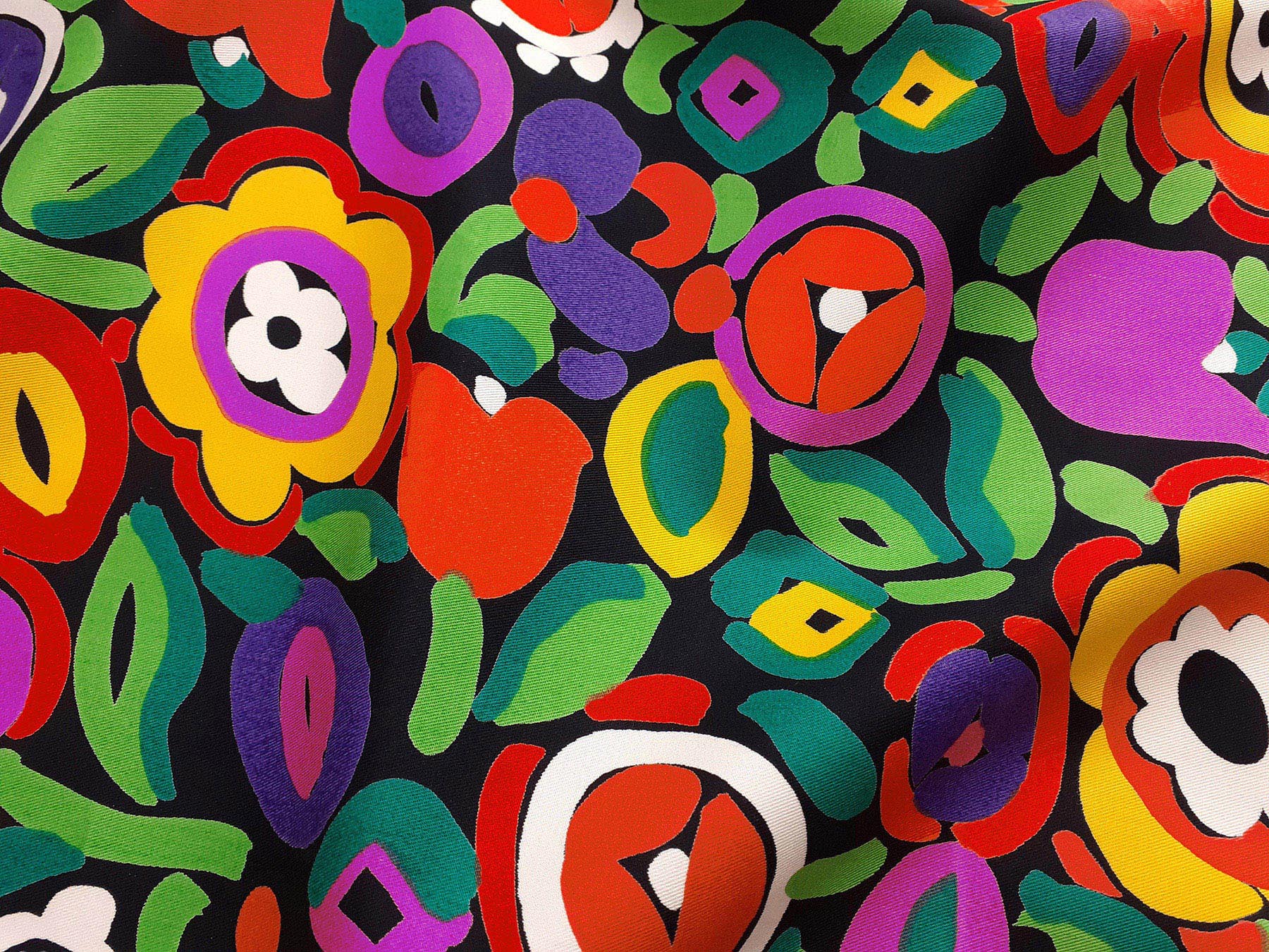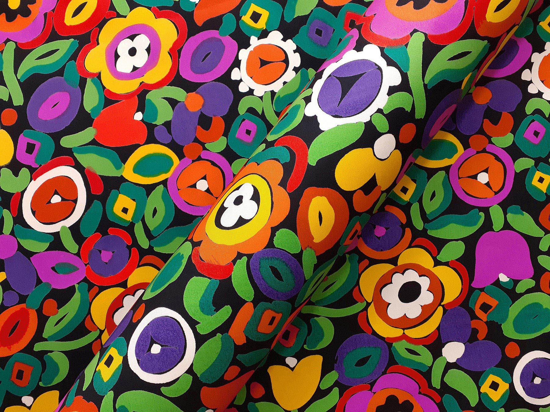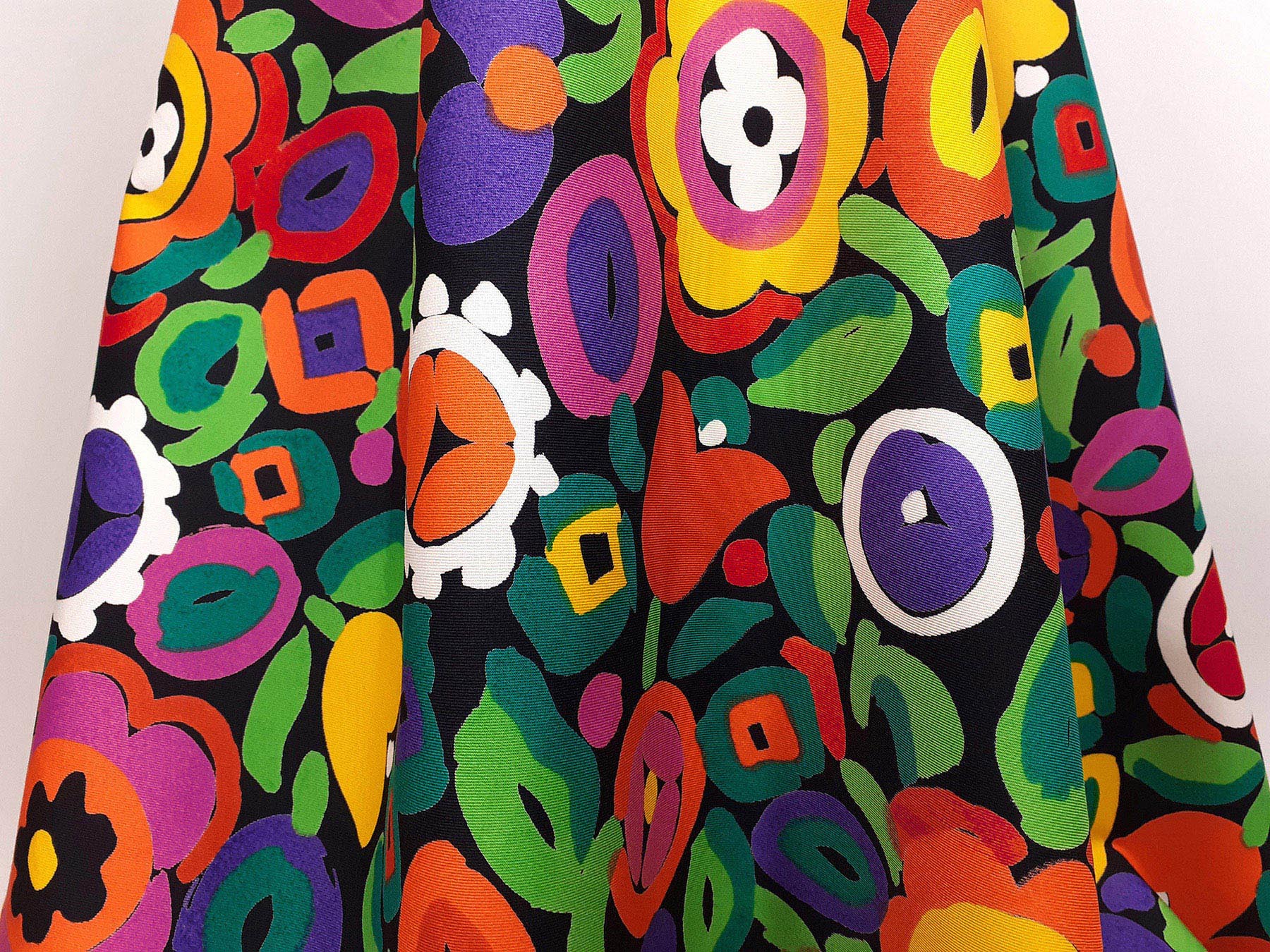 Gabardine in cotone satinato fantasia astratta fondo nero