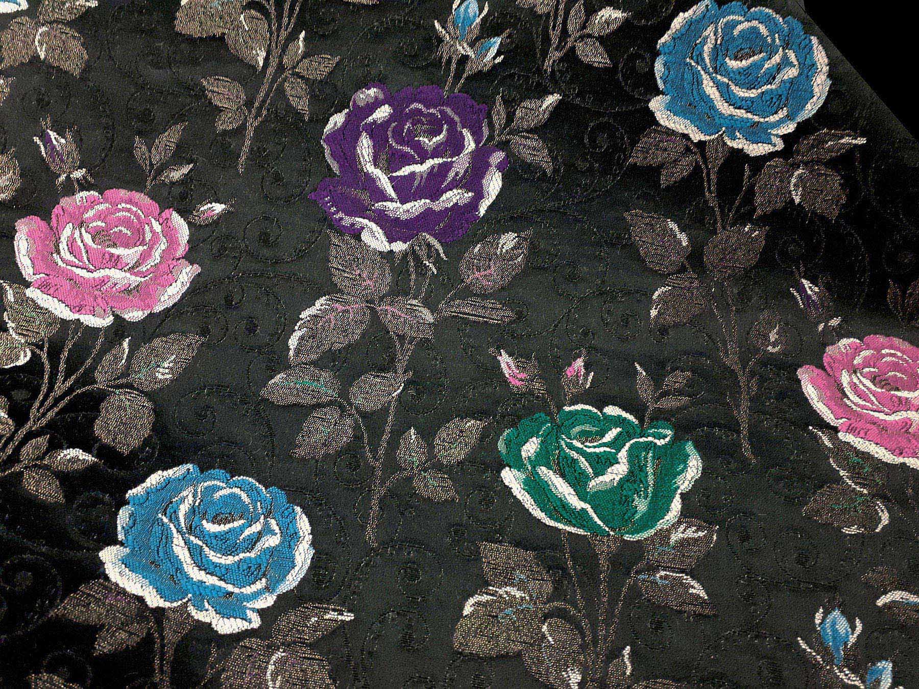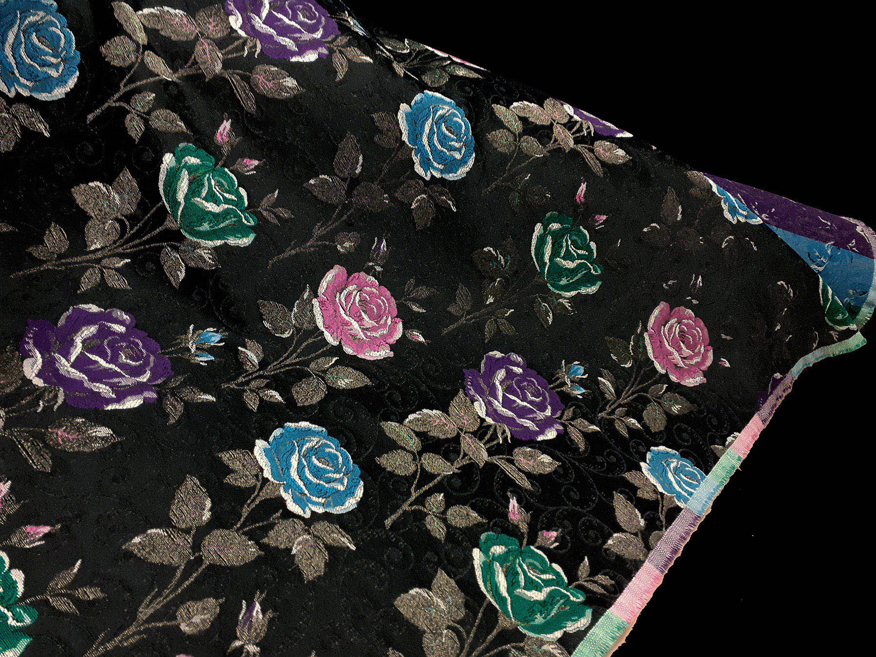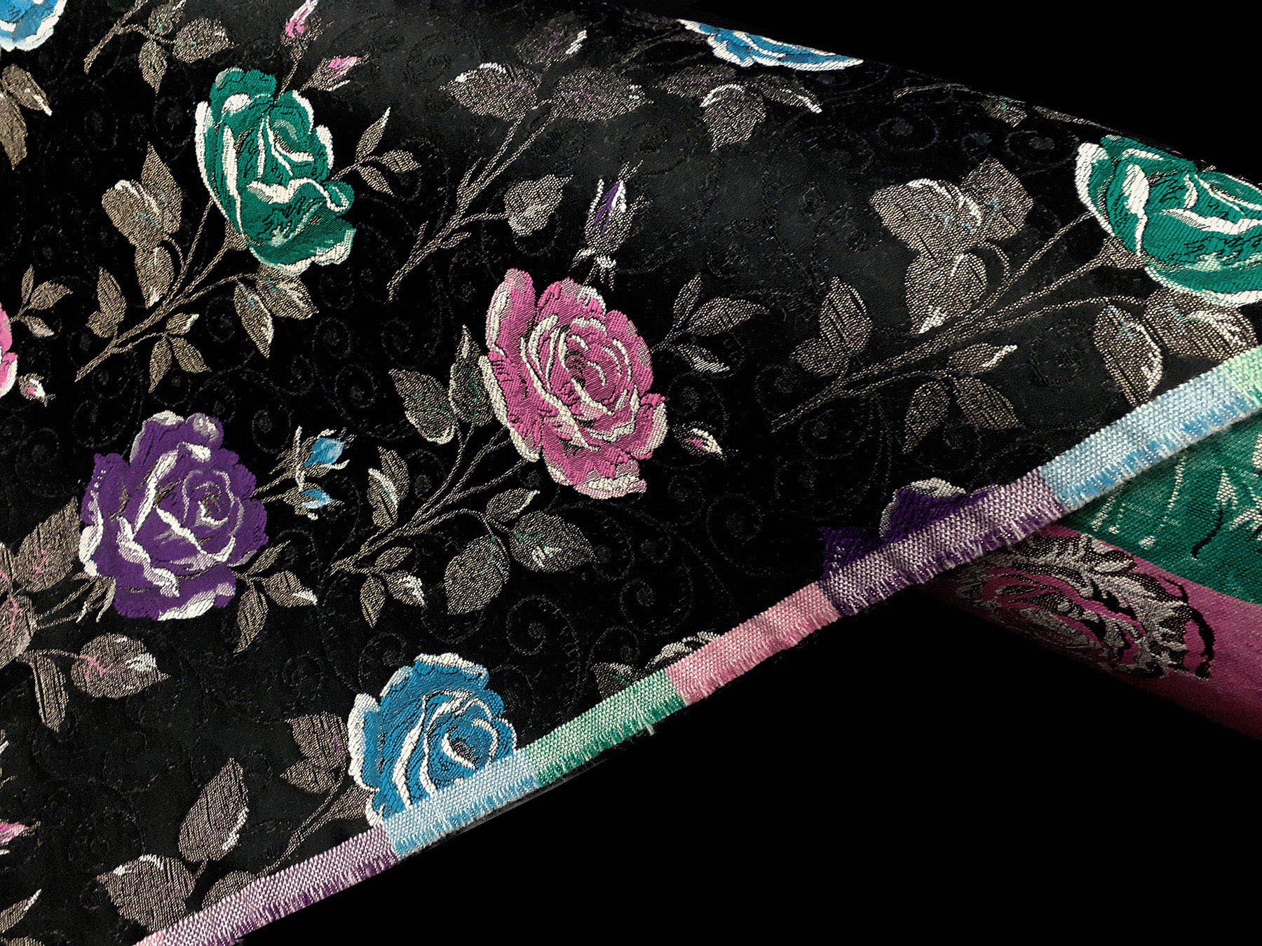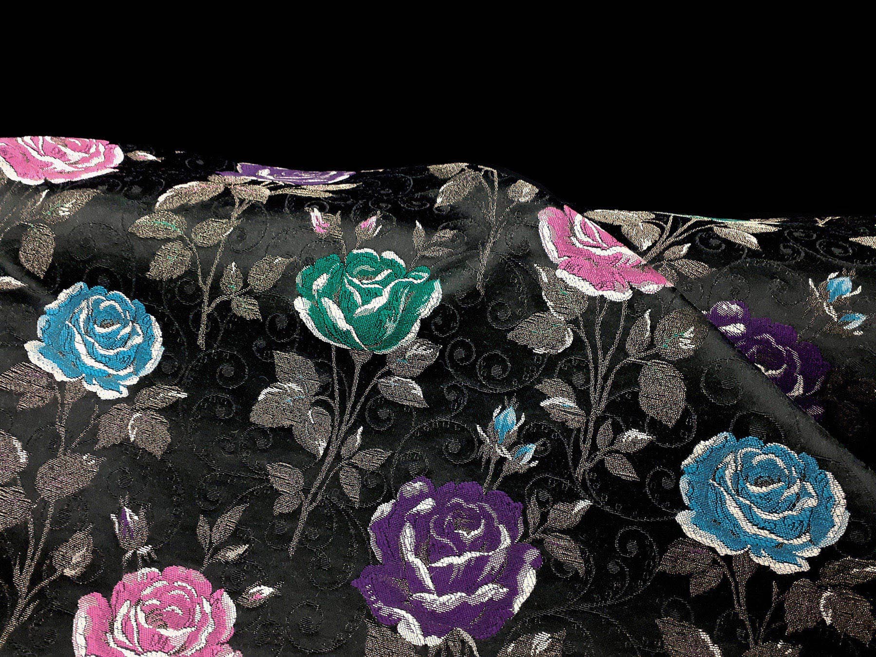 Matelassè in cotone jacquard fantasia floreale fondo nero