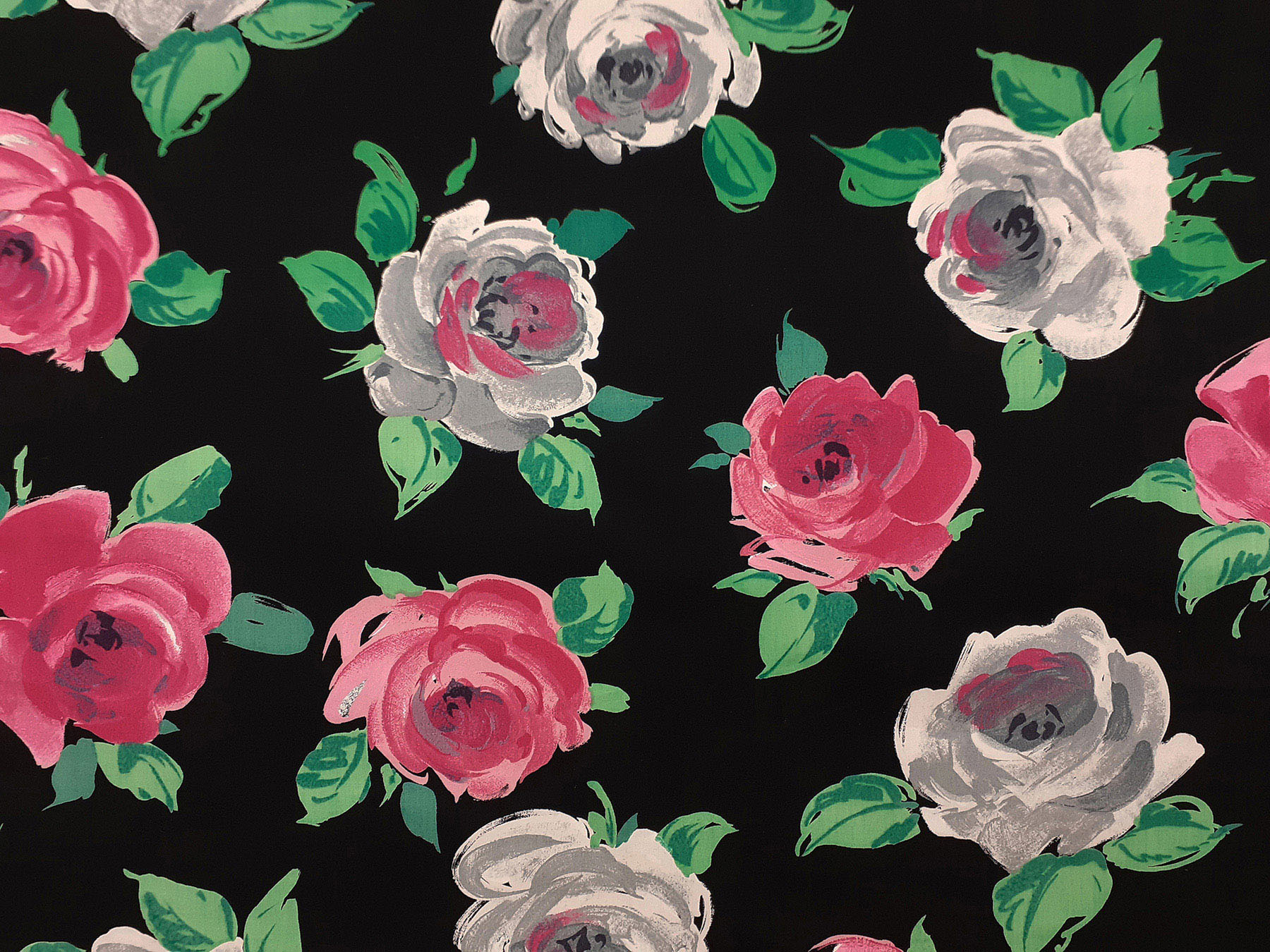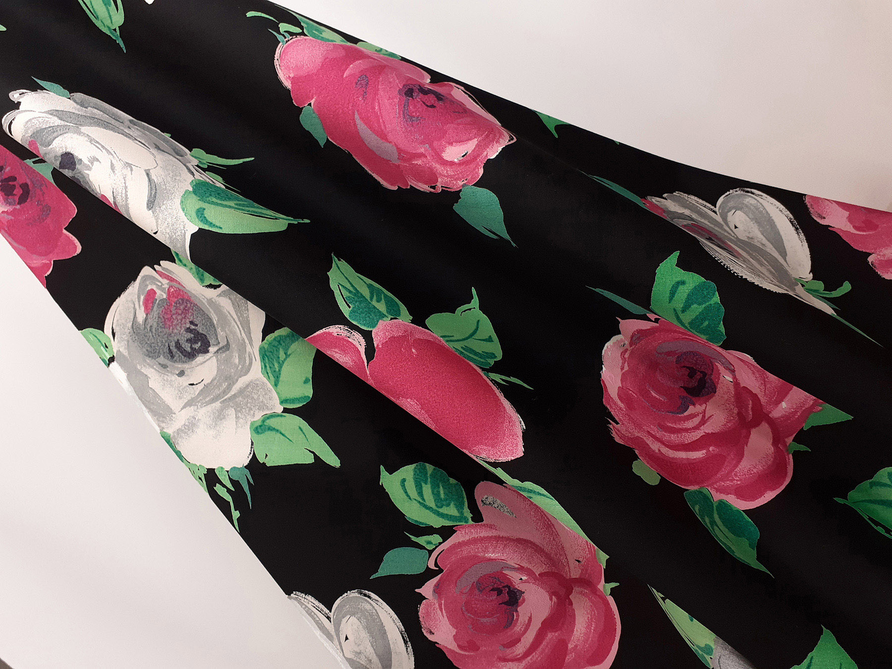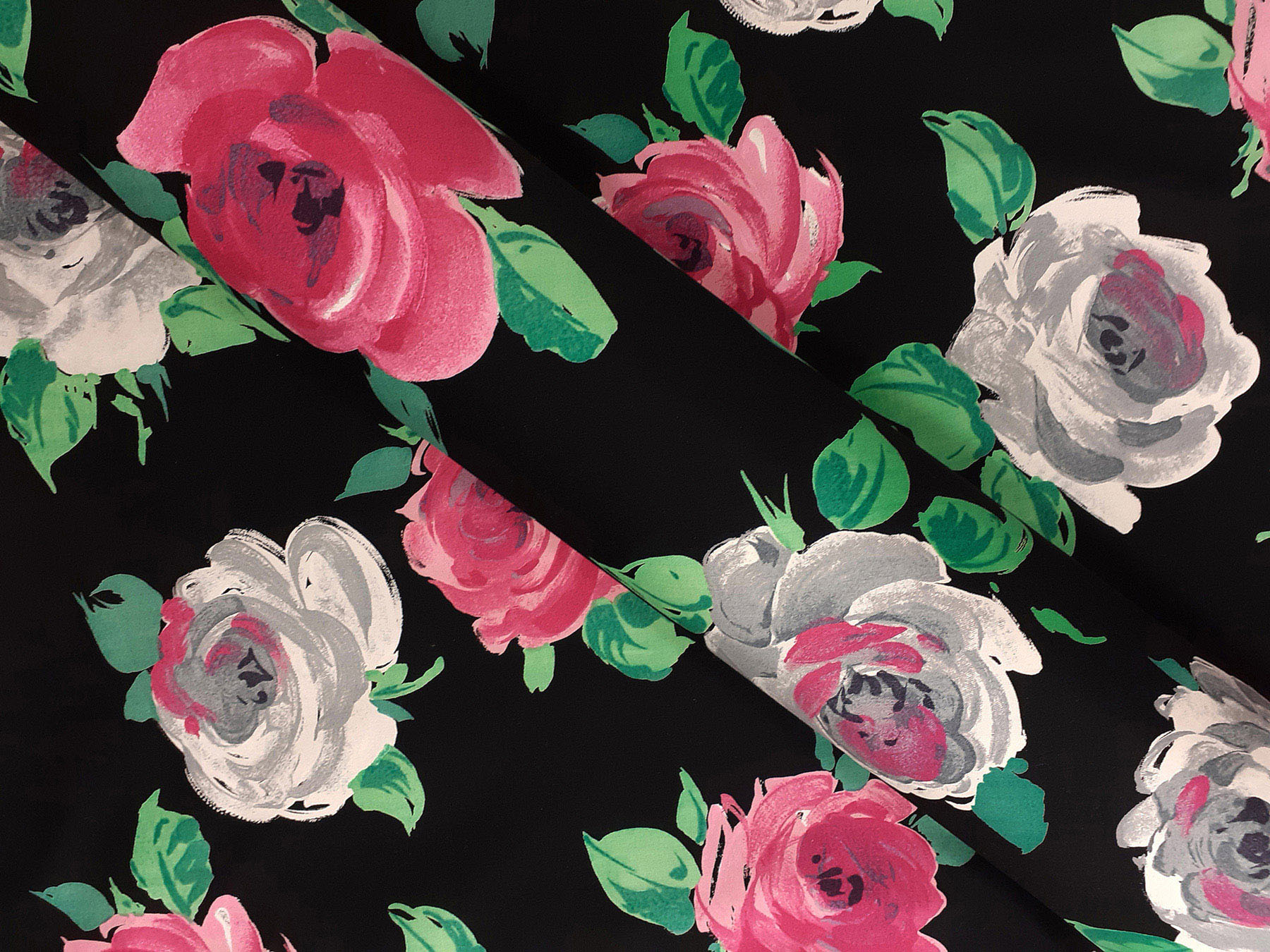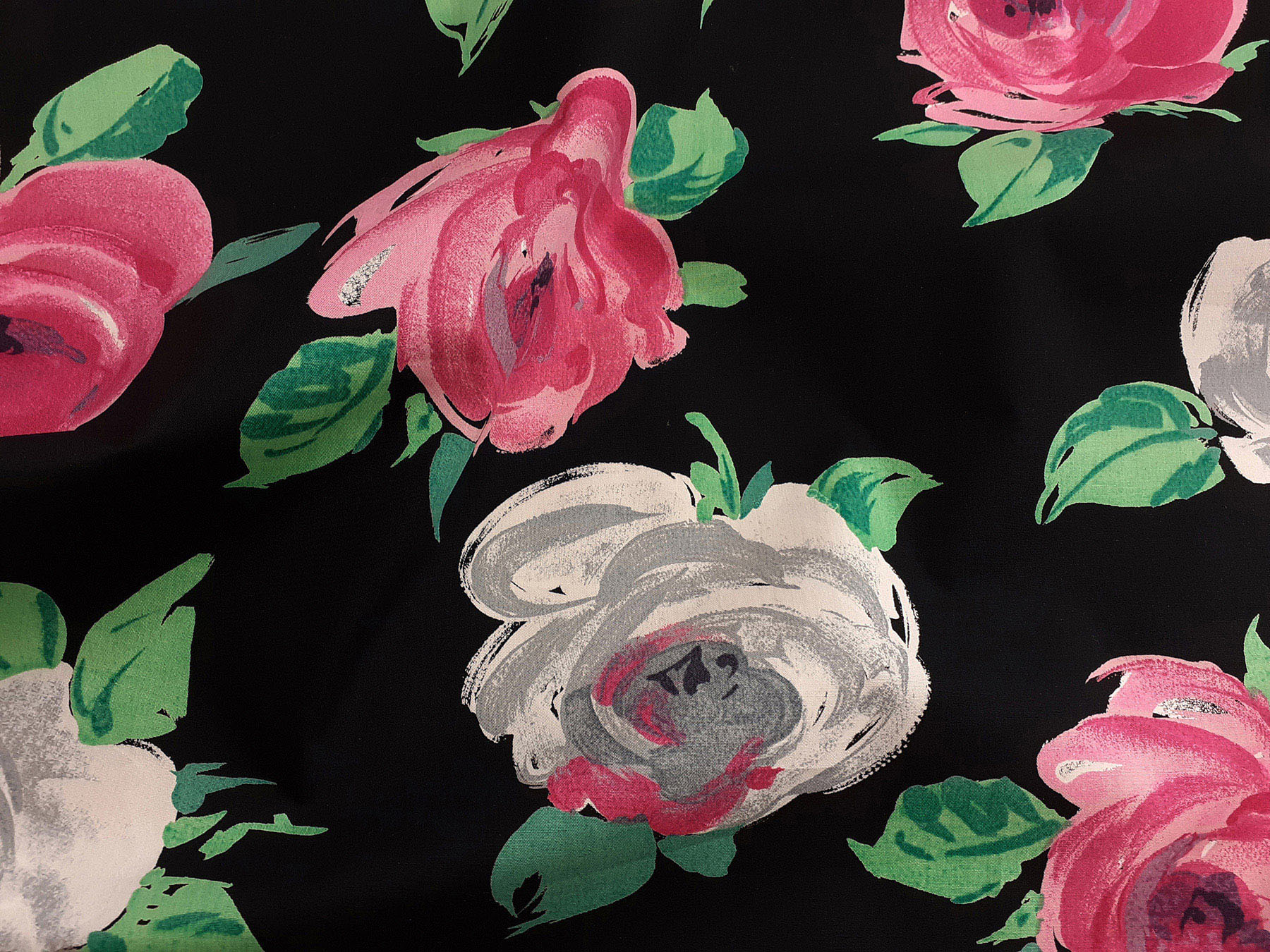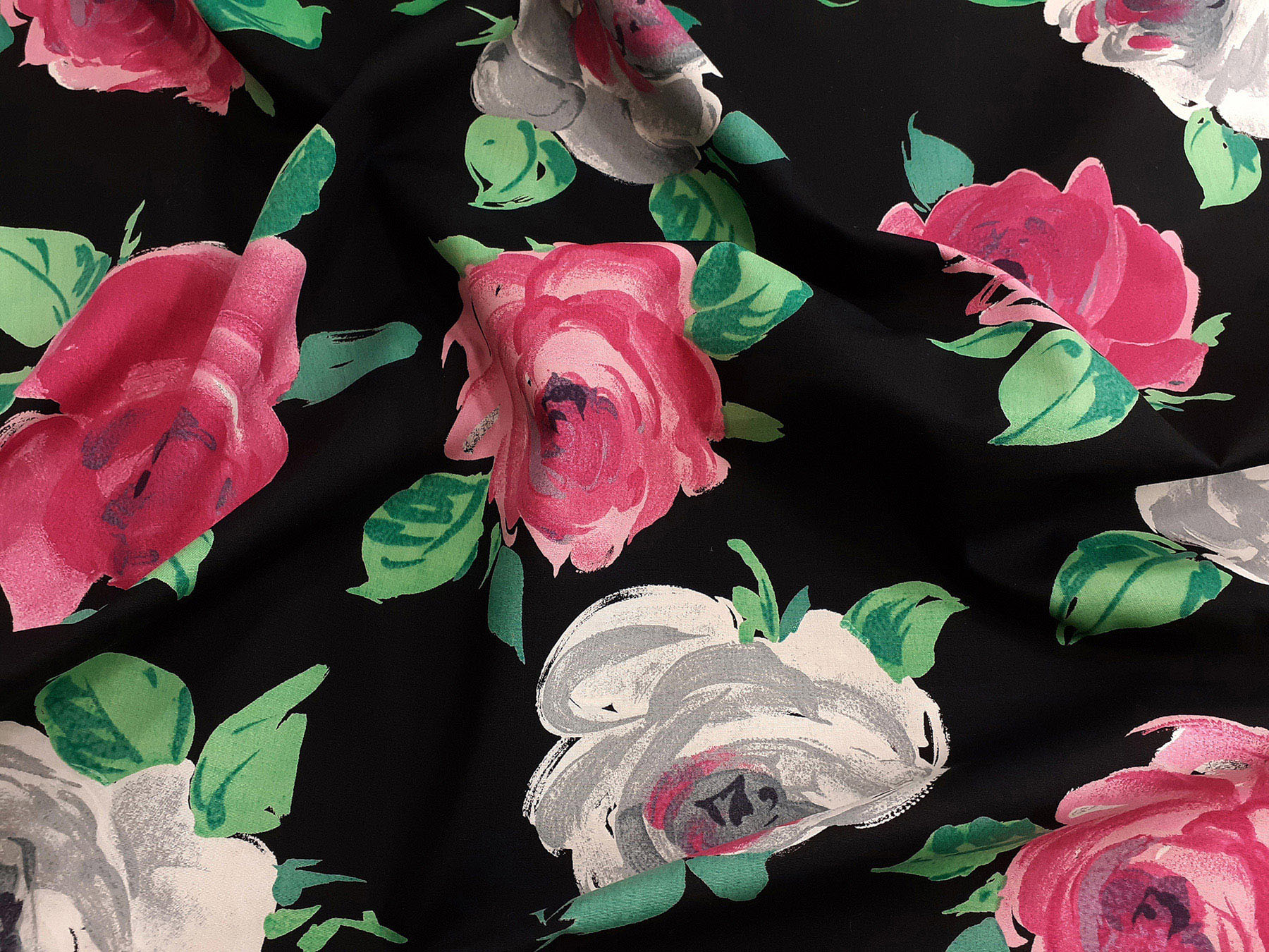 Popeline in cotone satinato fantasia floreale fondo nero