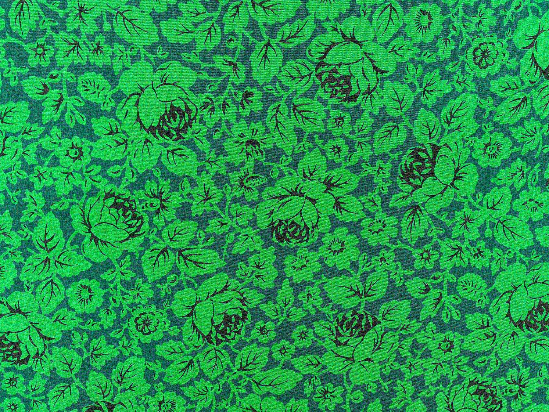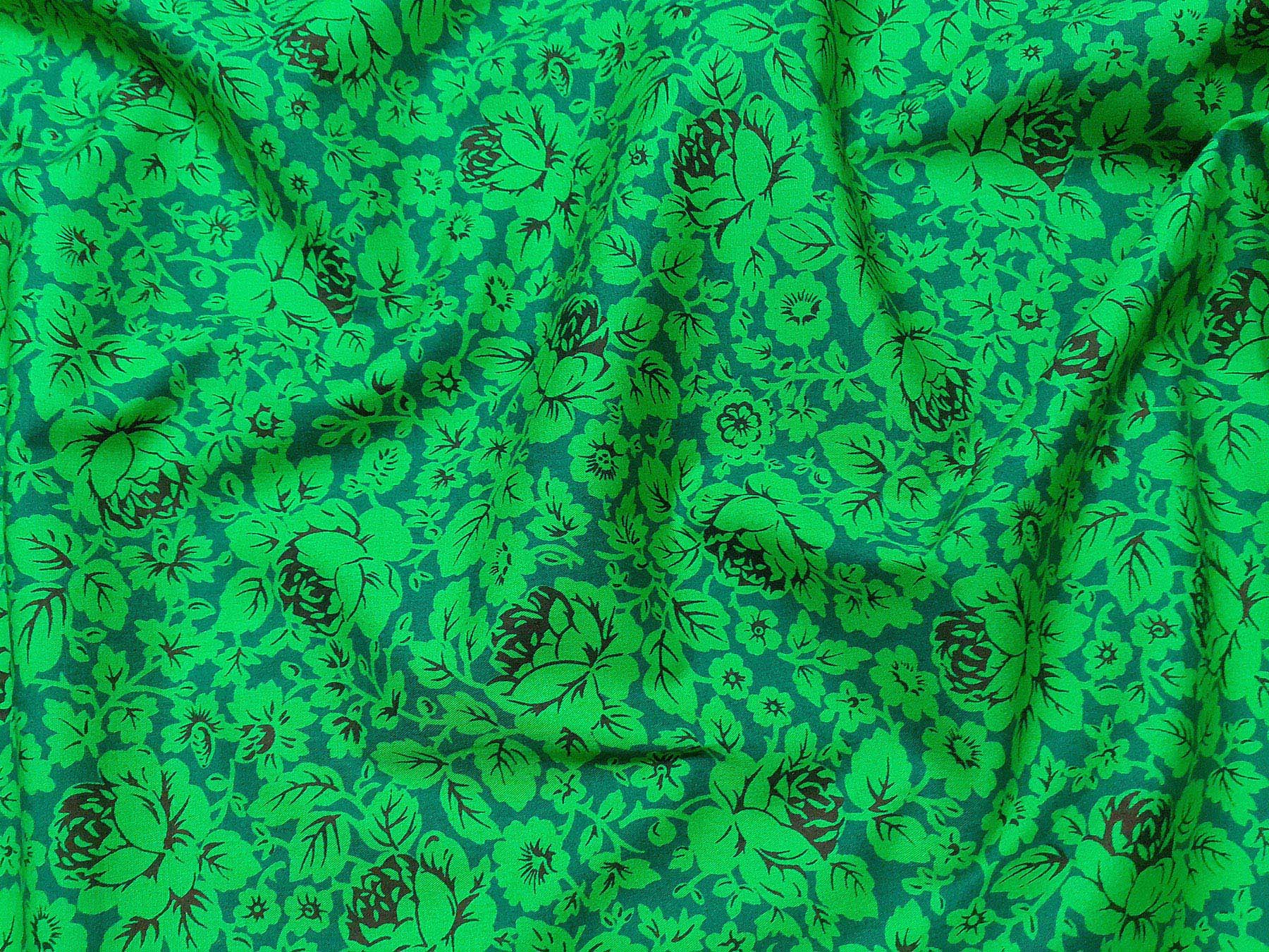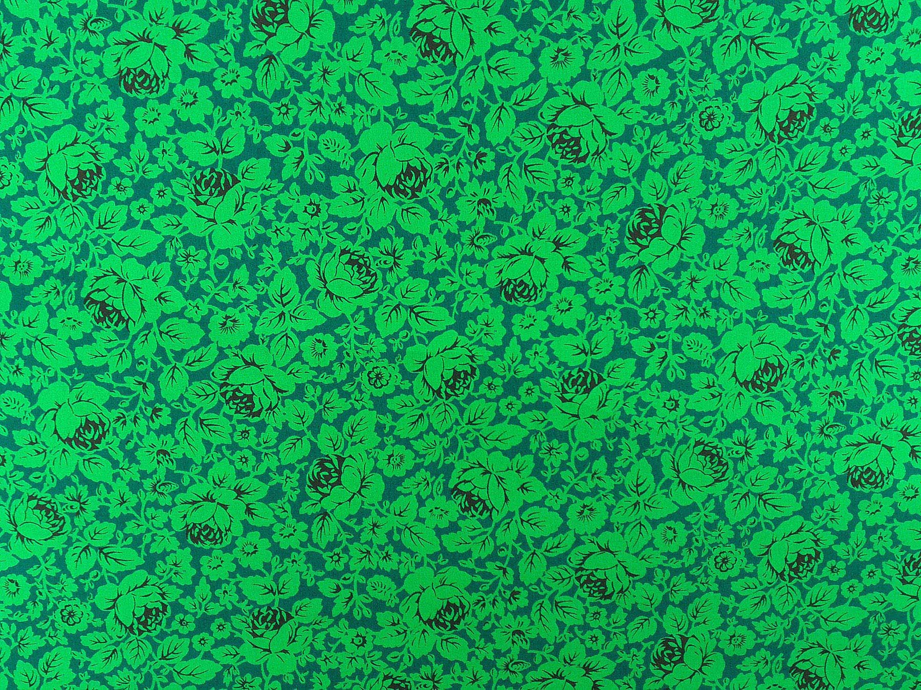 Popeline in cotone satinato fantasia floreale fondo verde