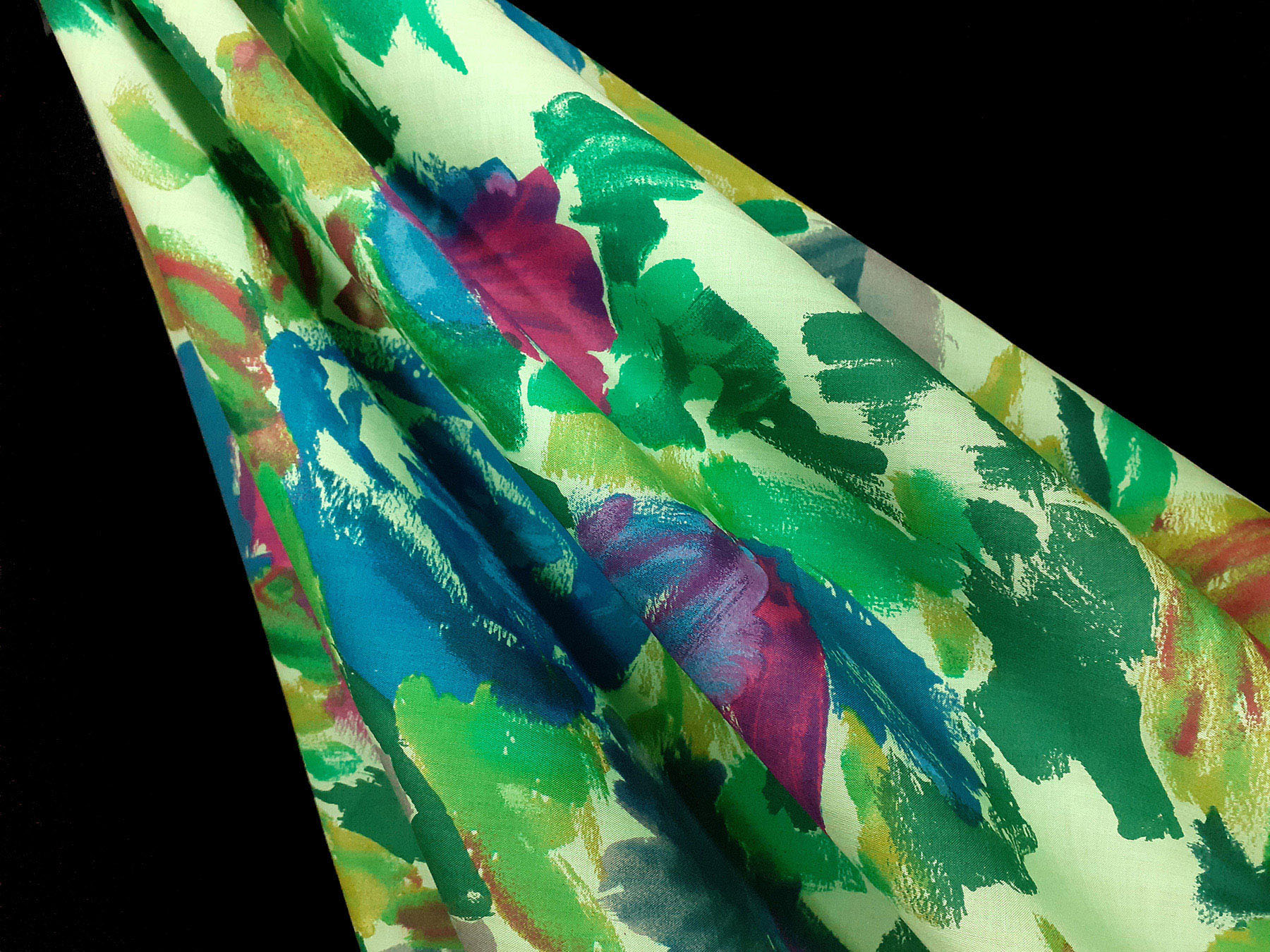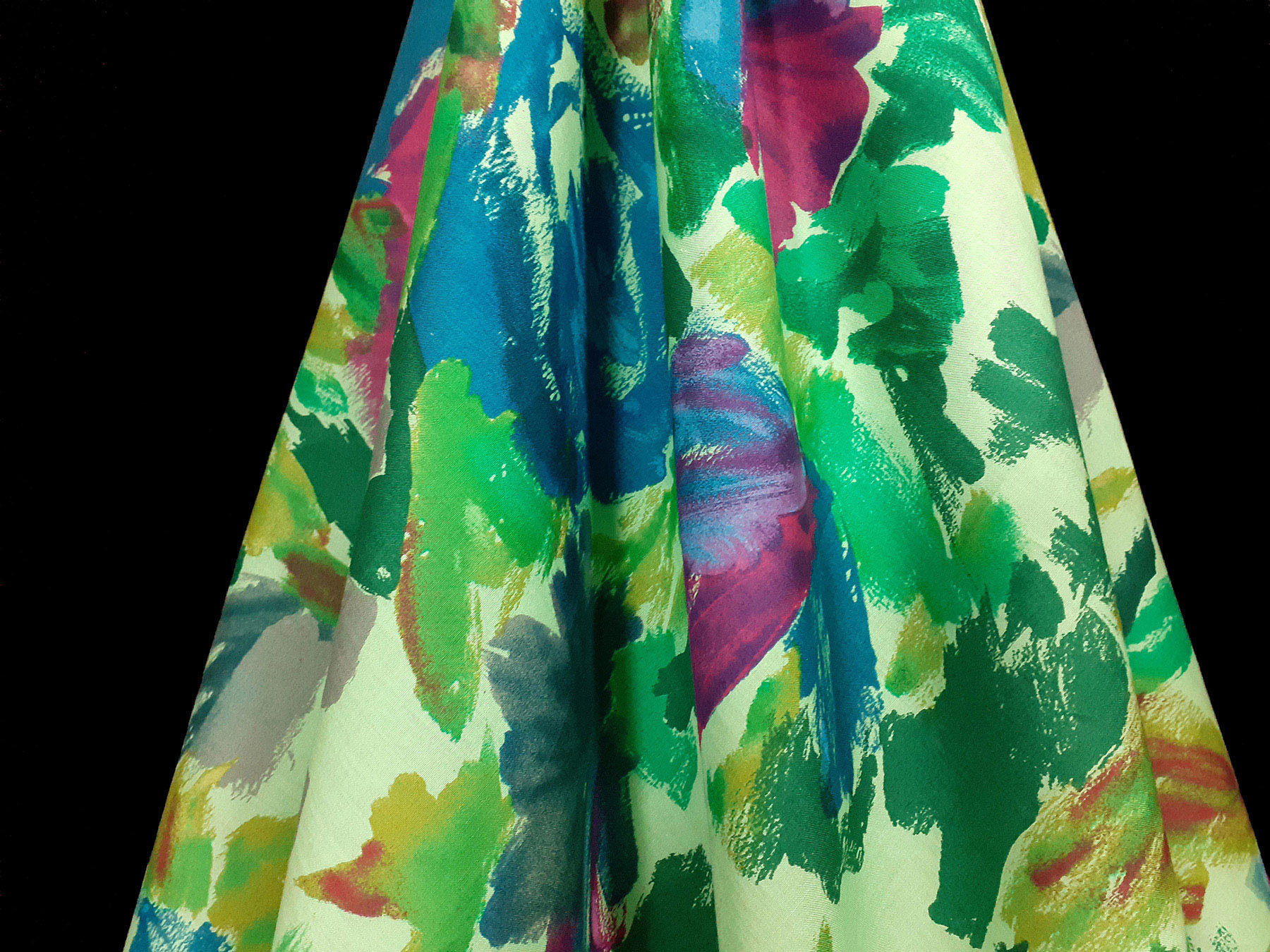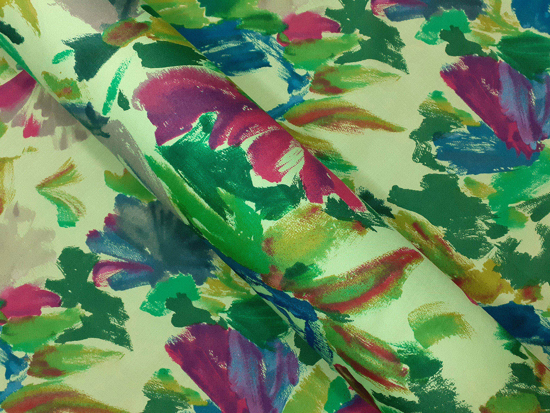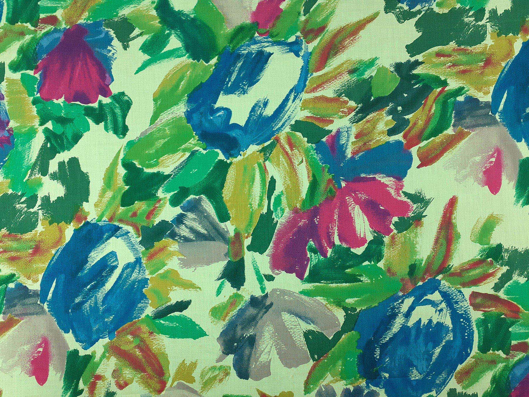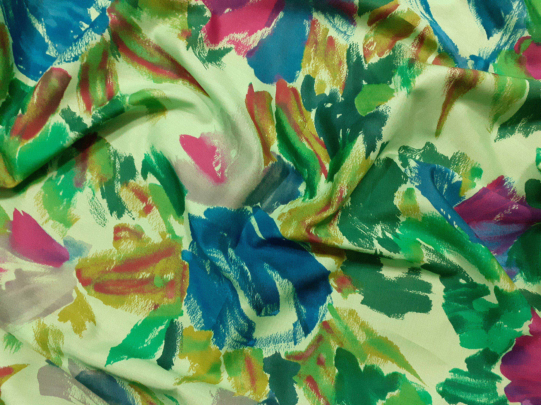 Tela in cotone fantasia astratta multicolore fondo verde pallido