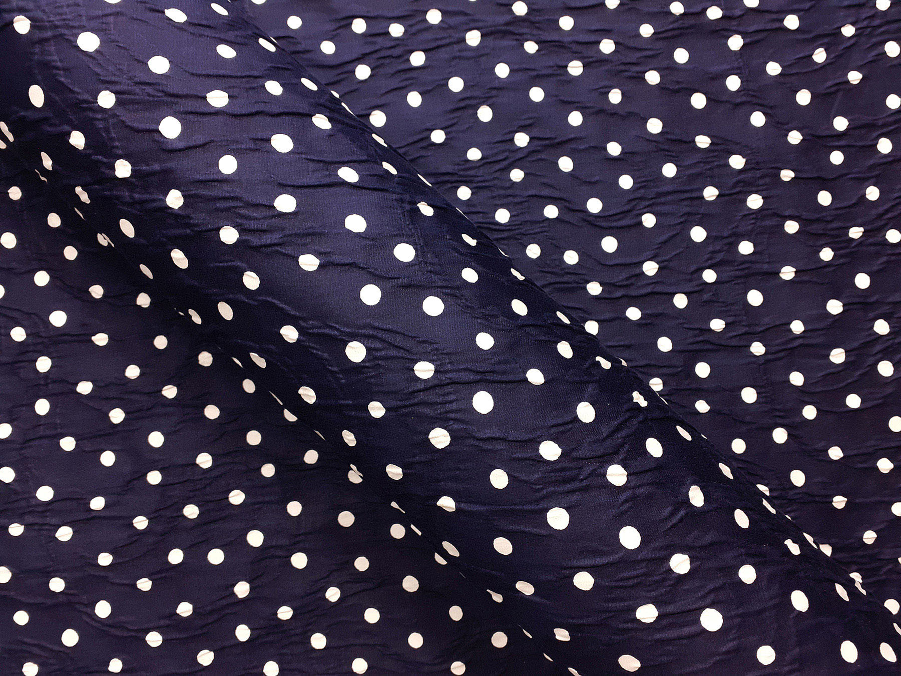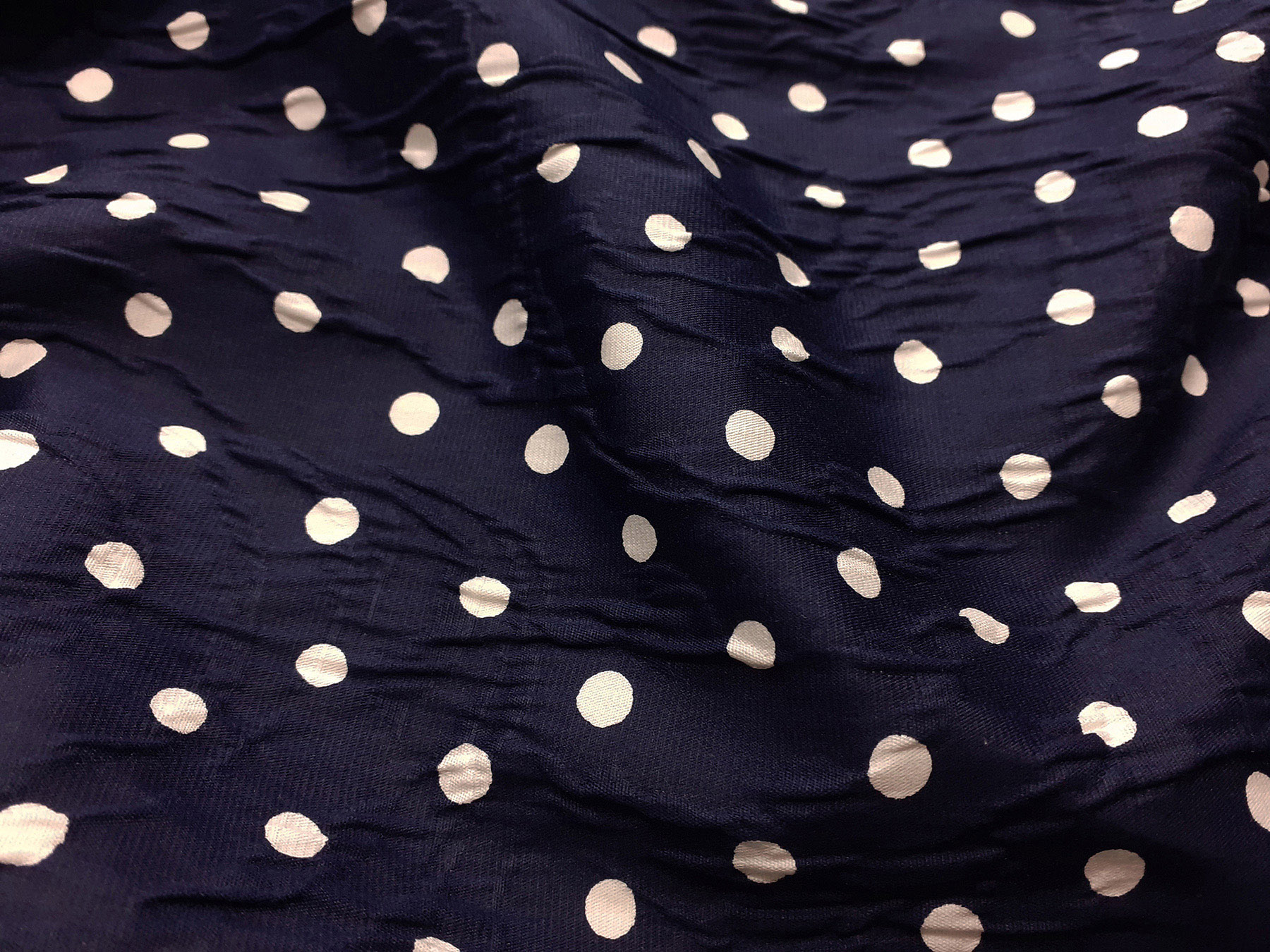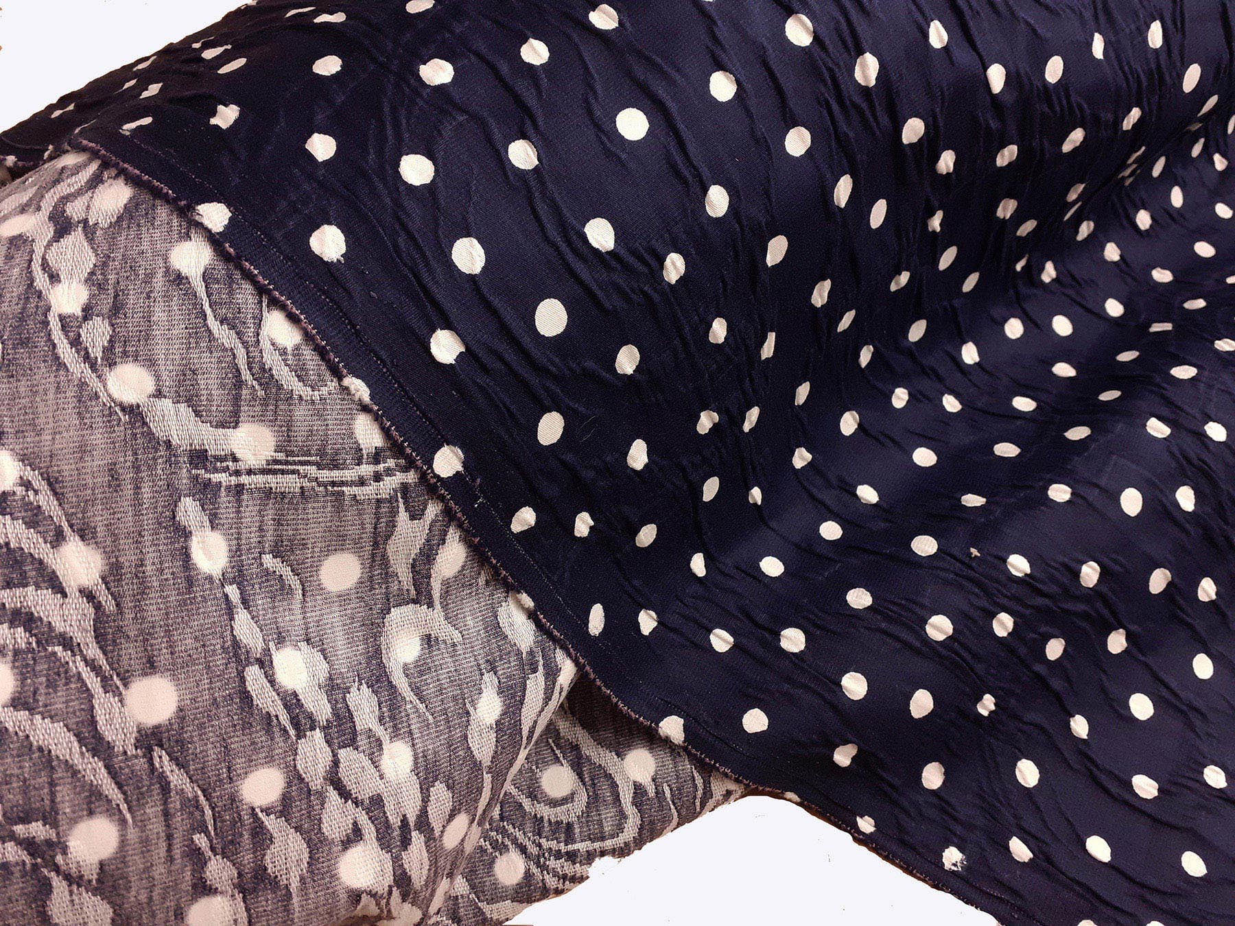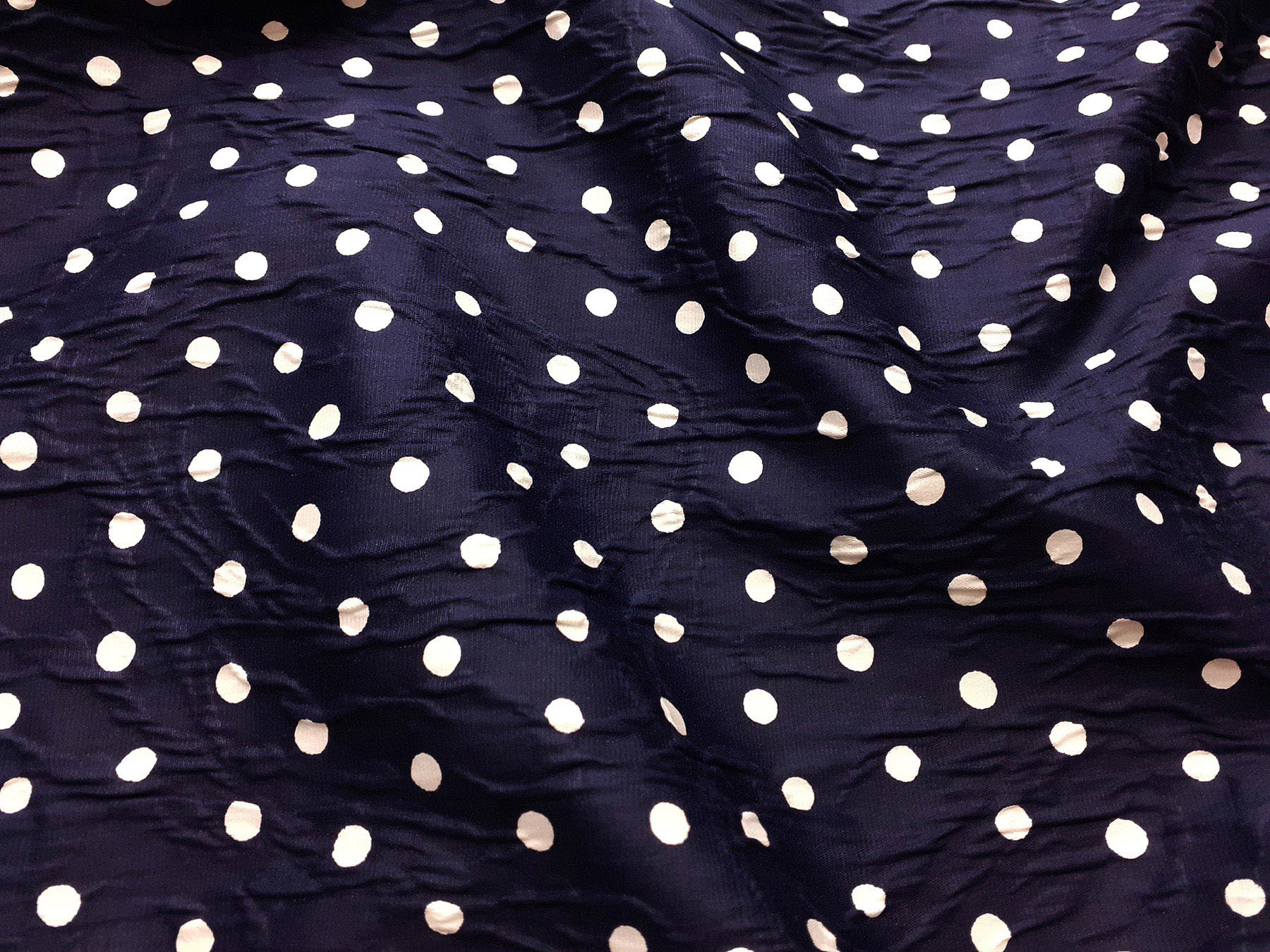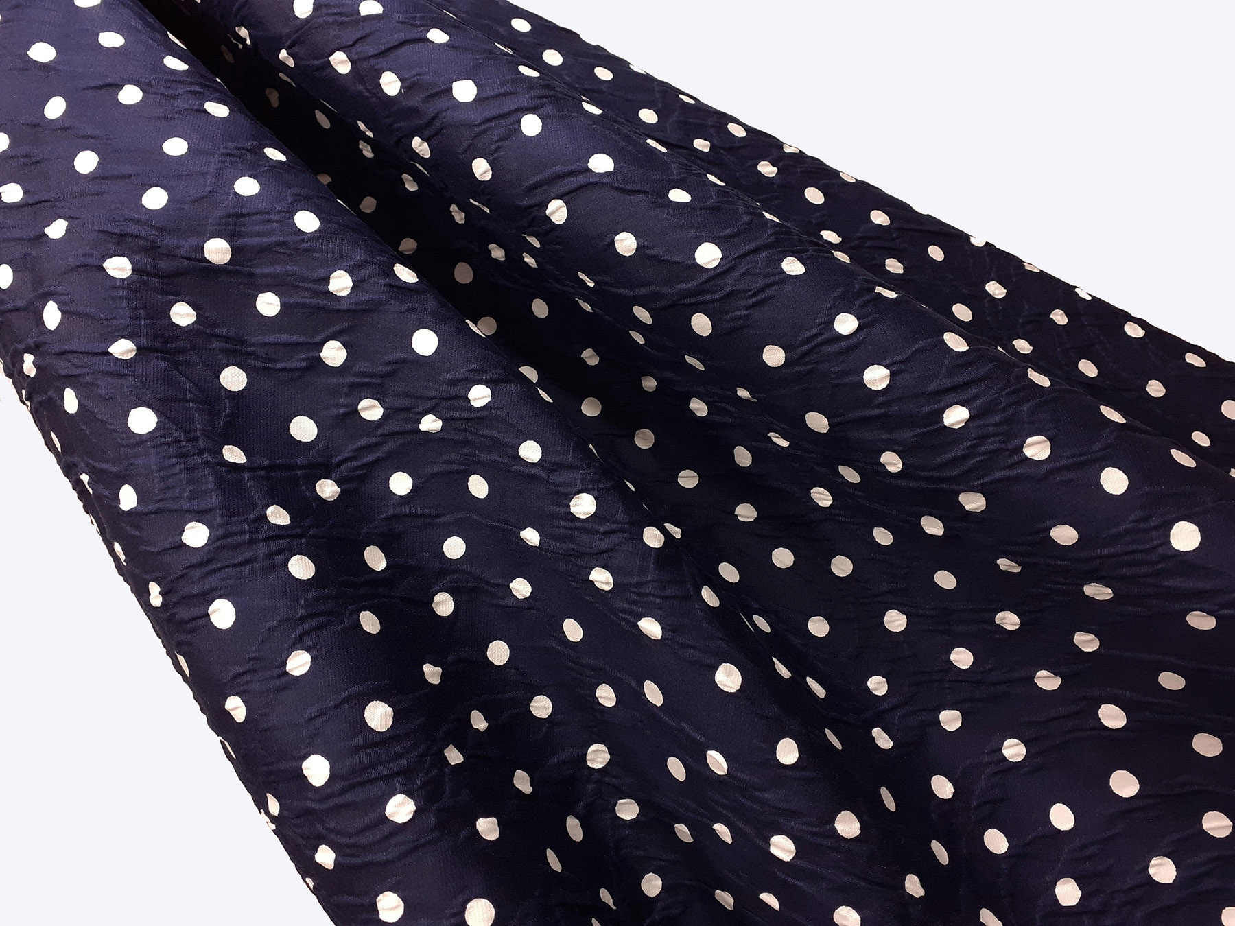 Matelassè in cotone effetto goffrato e jacquard pois bianchi su fondo blue