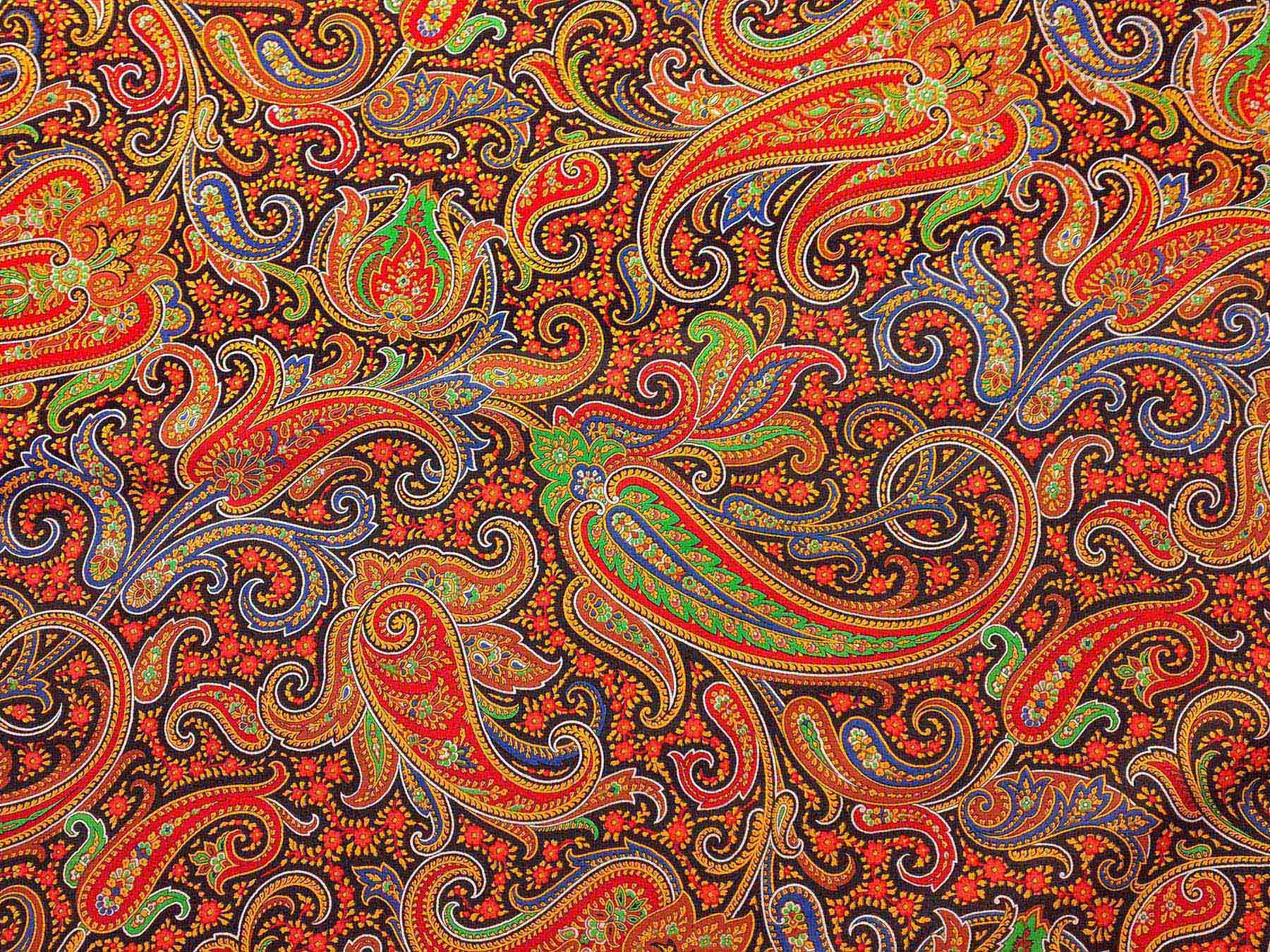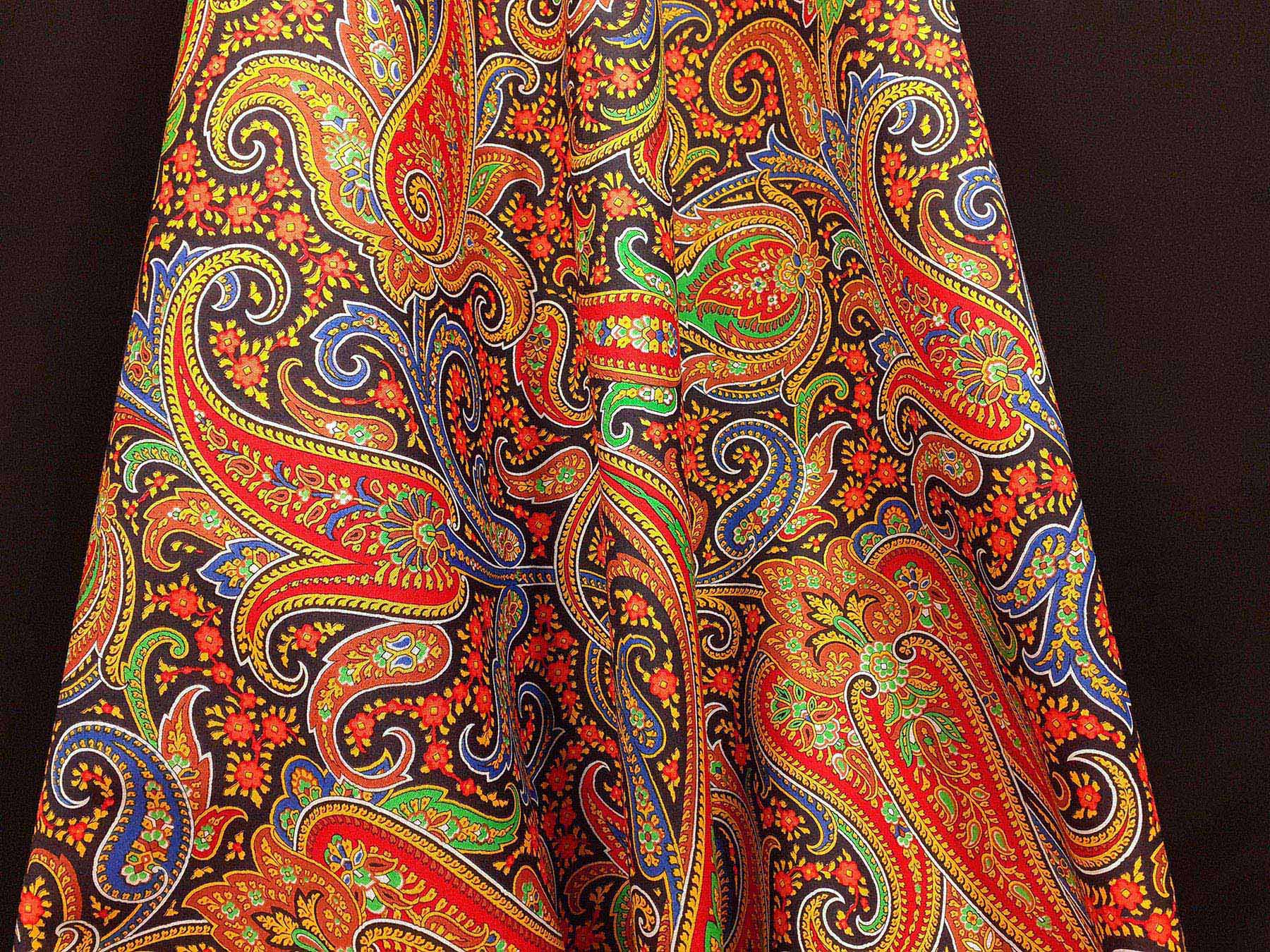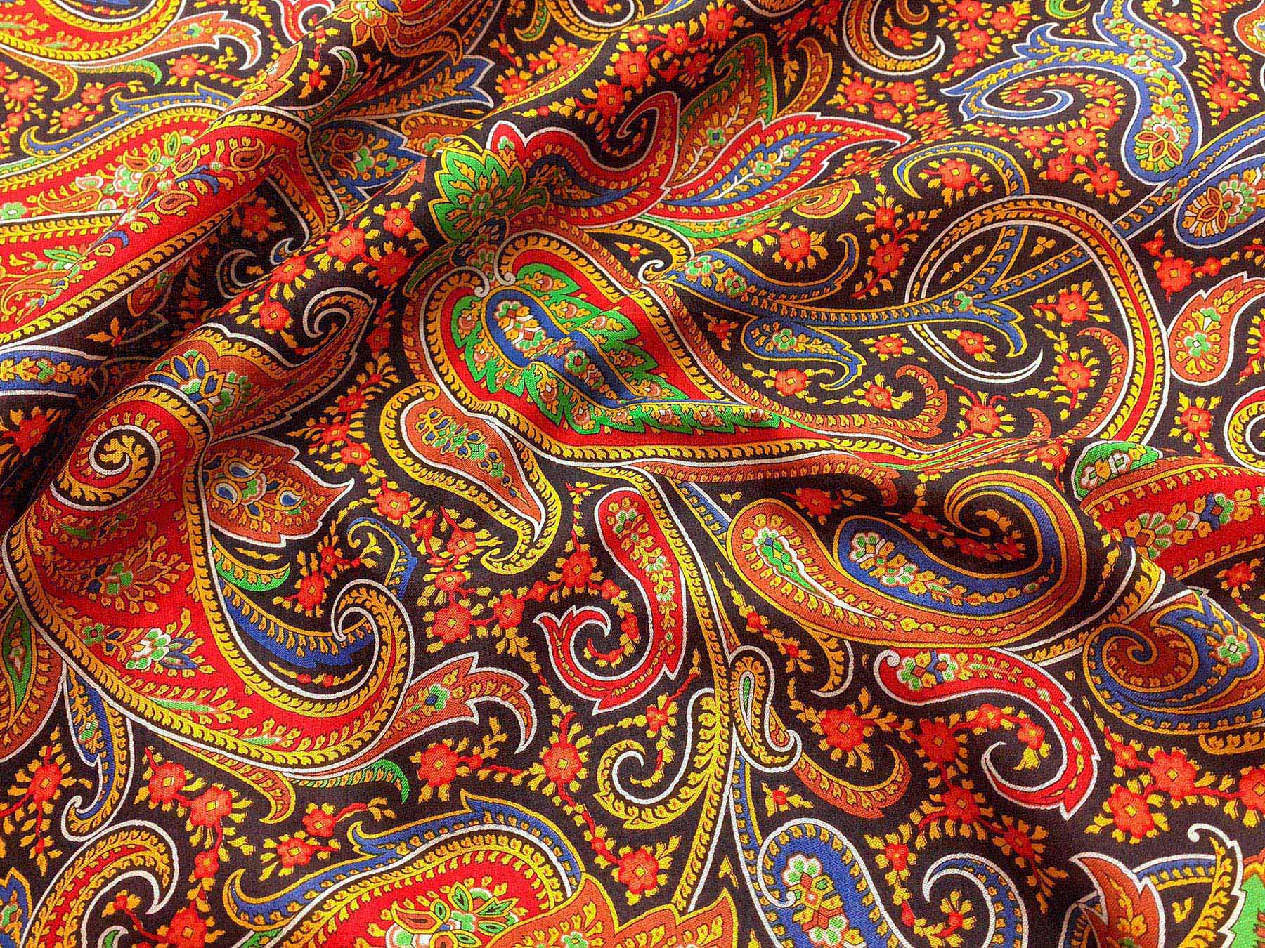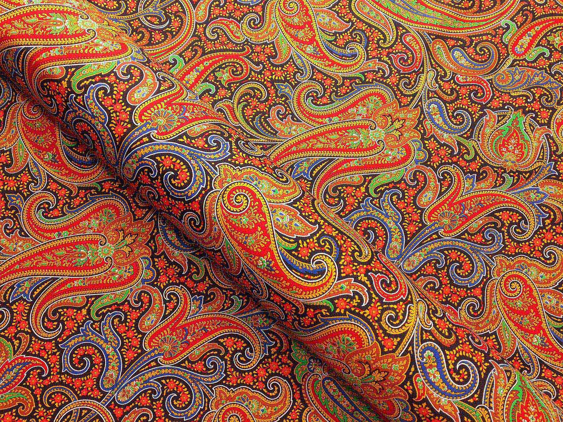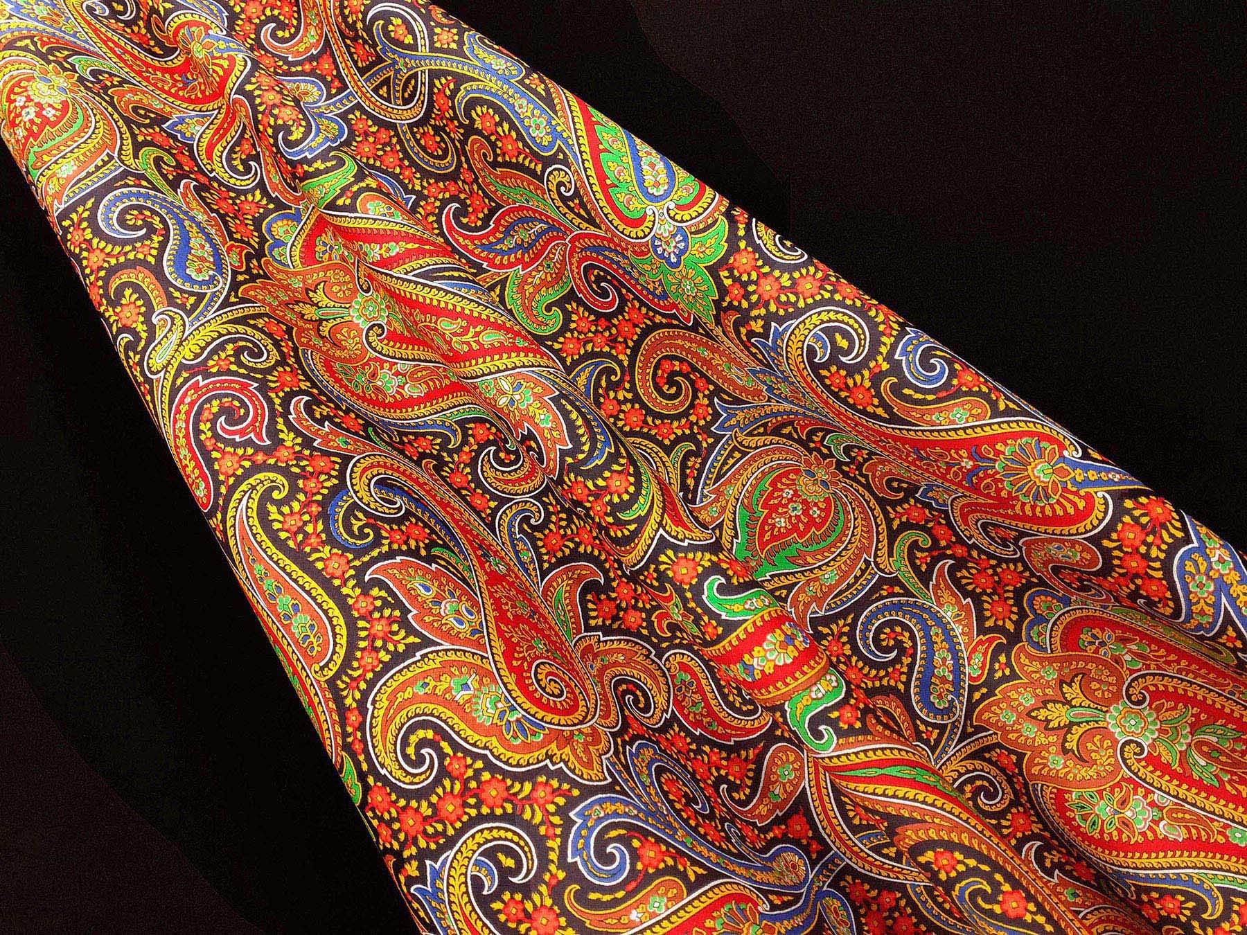 Tessuto in cotone disegno cashmere multicolore su fondo nero