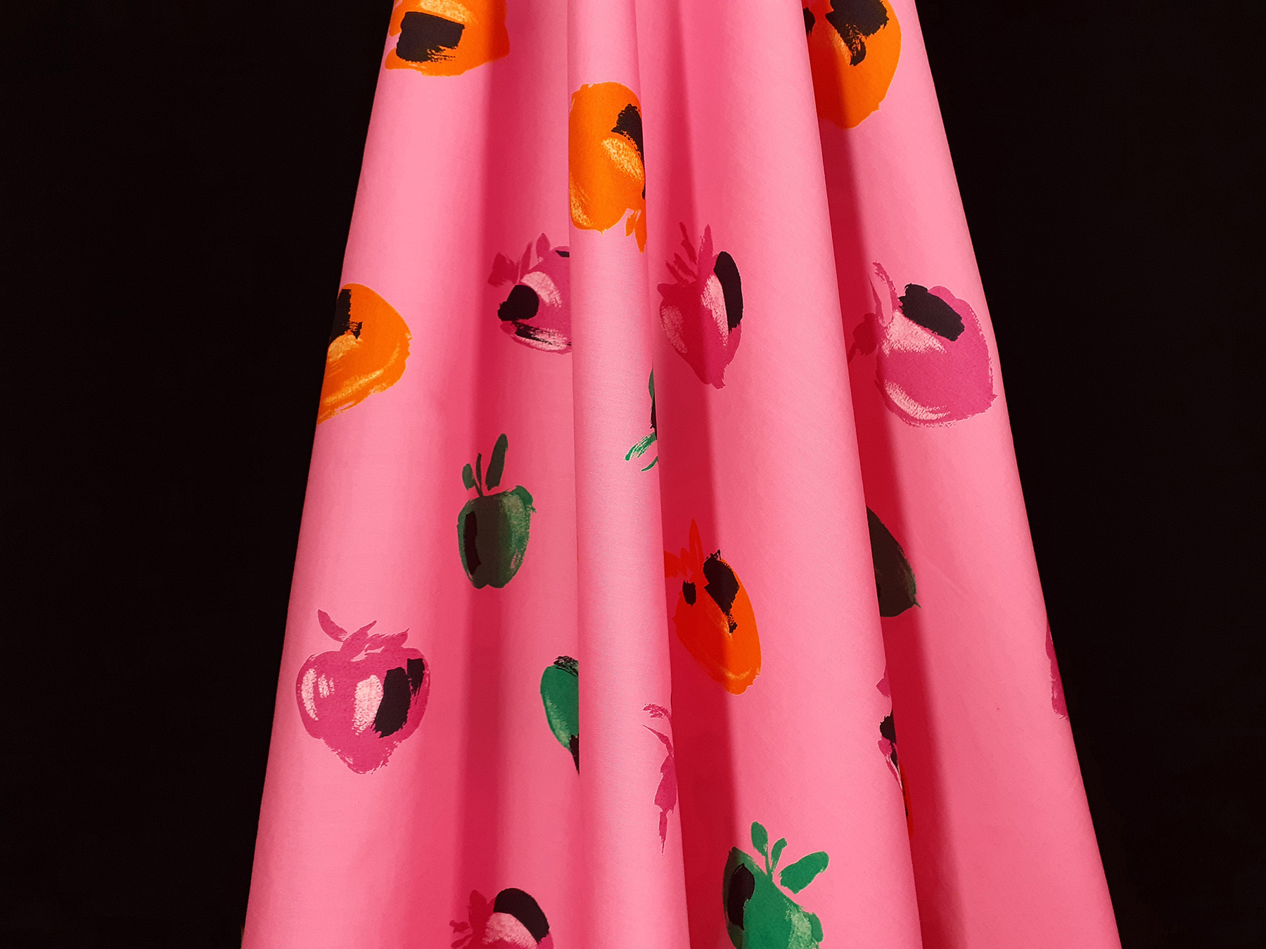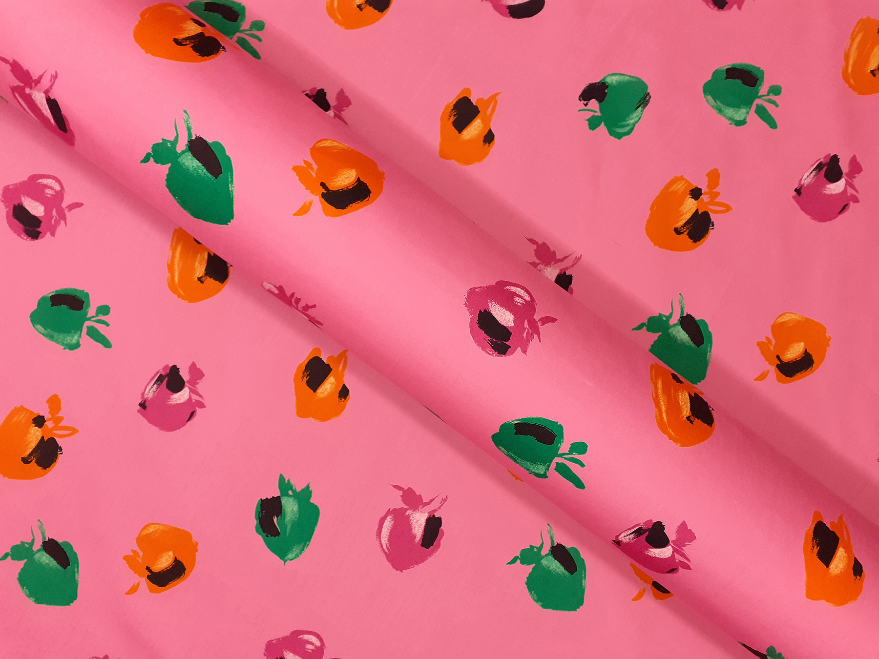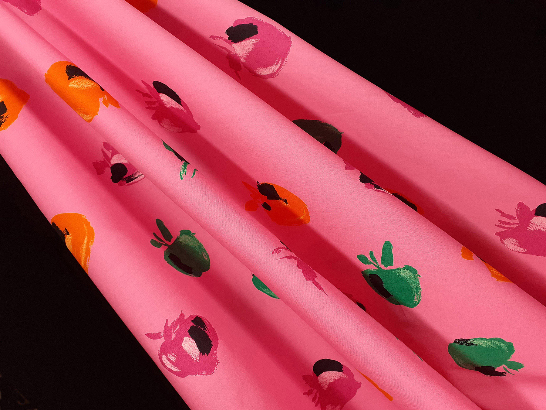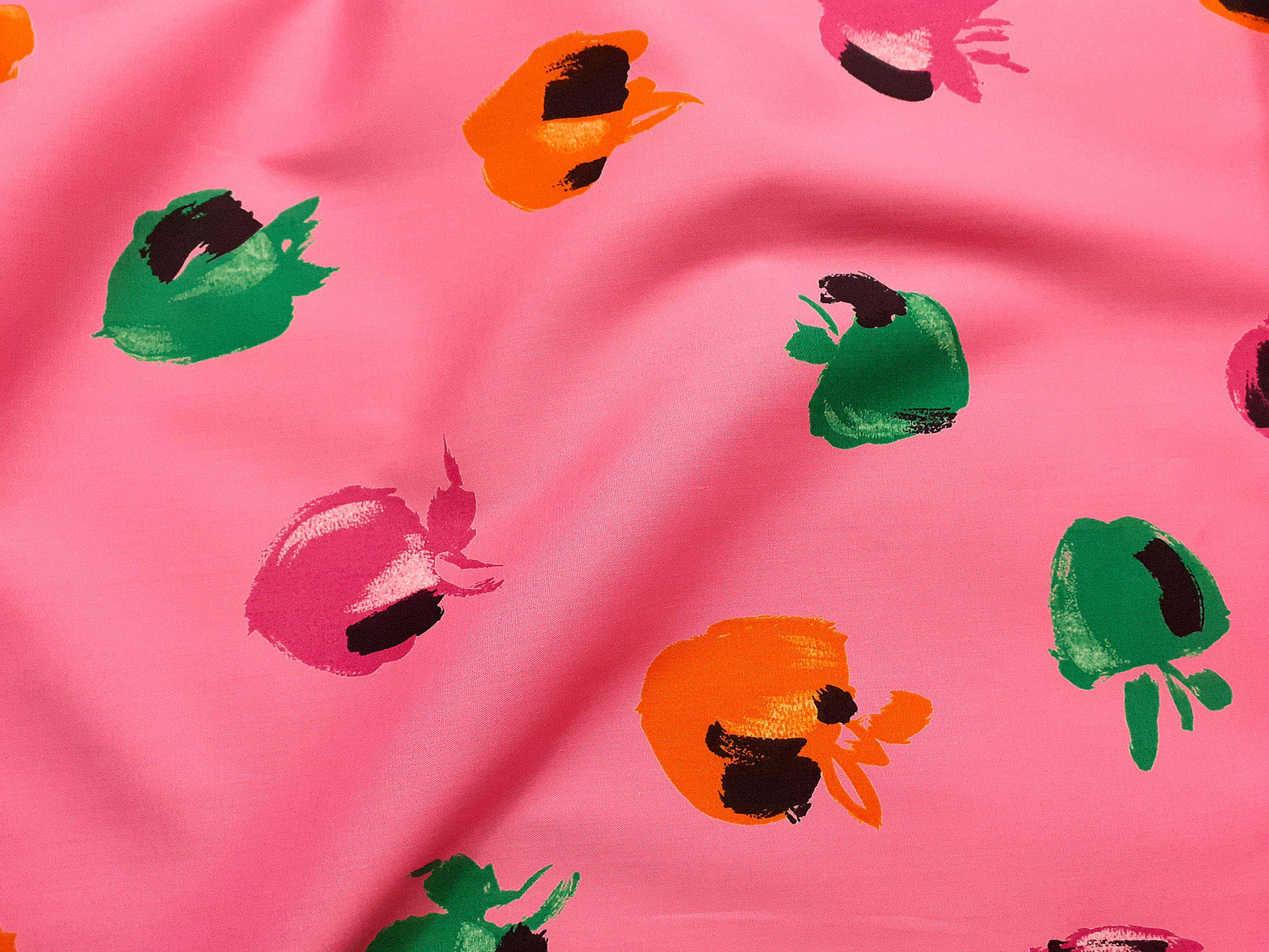 Popeline in cotone satinato fantasia astratta fondo rosa