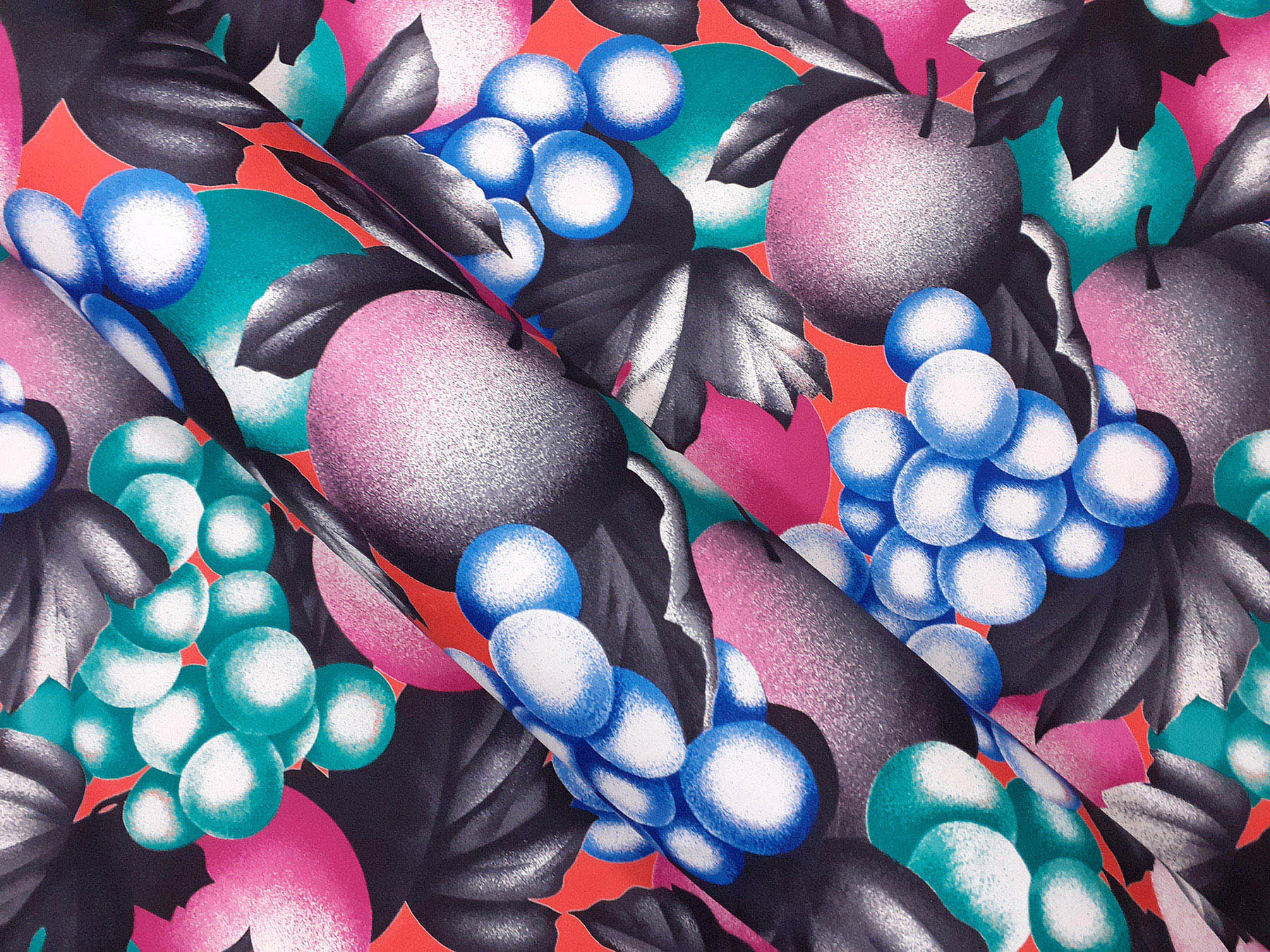 Popeline in cotone satinato fantasia astratta fondo rosso