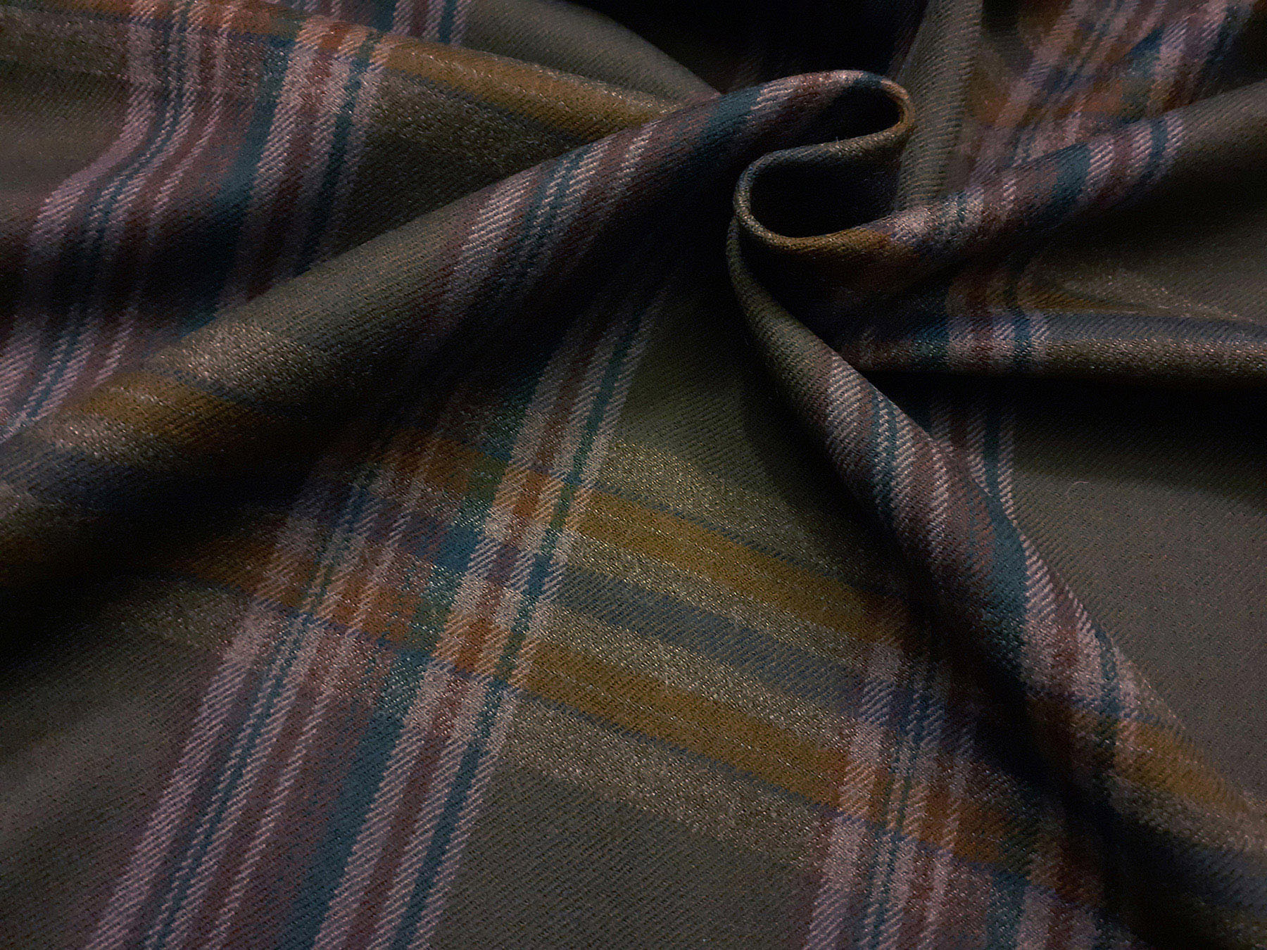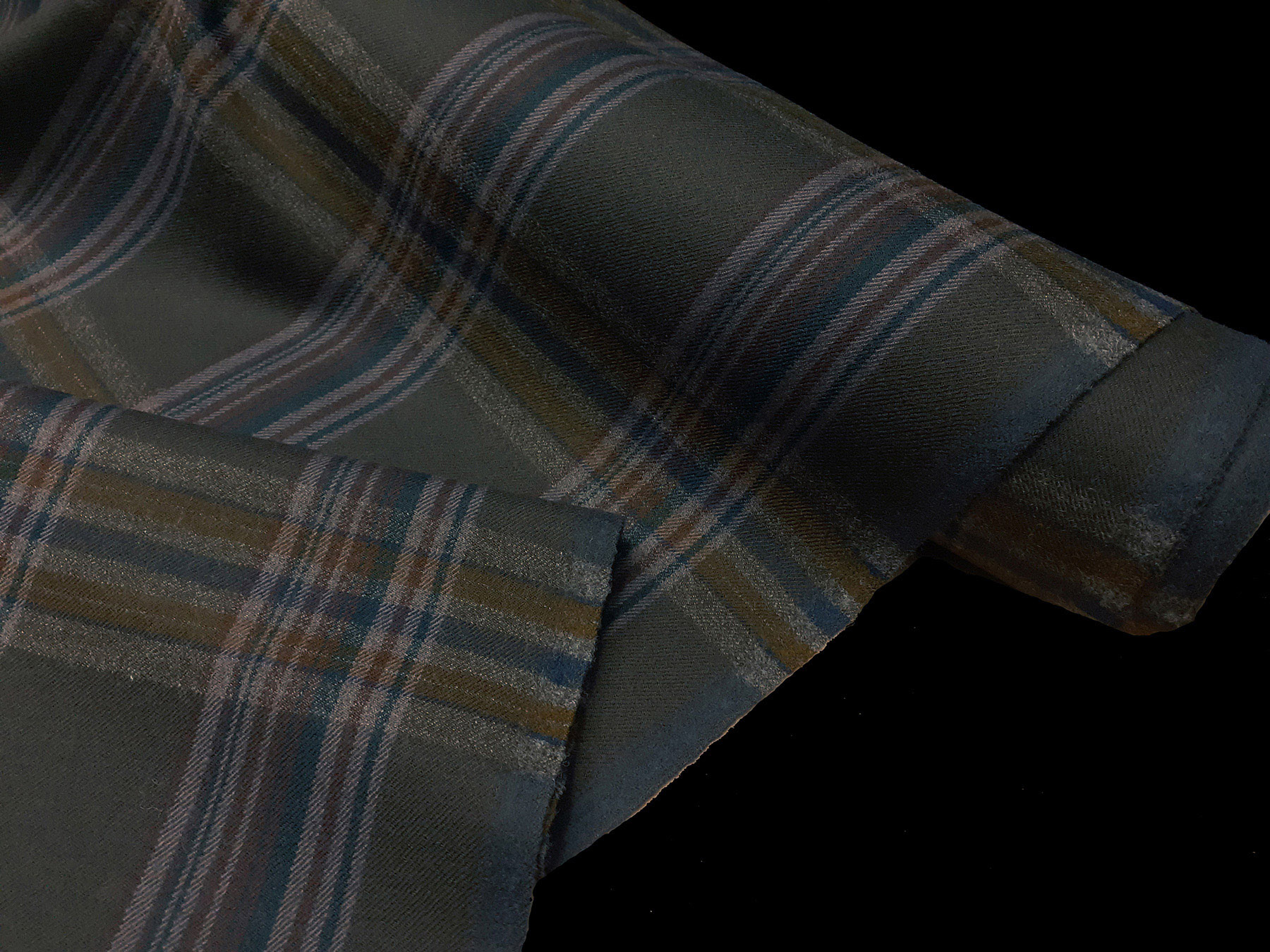 Tessuto in lana merino scozzese sui toni del verde sottobosco