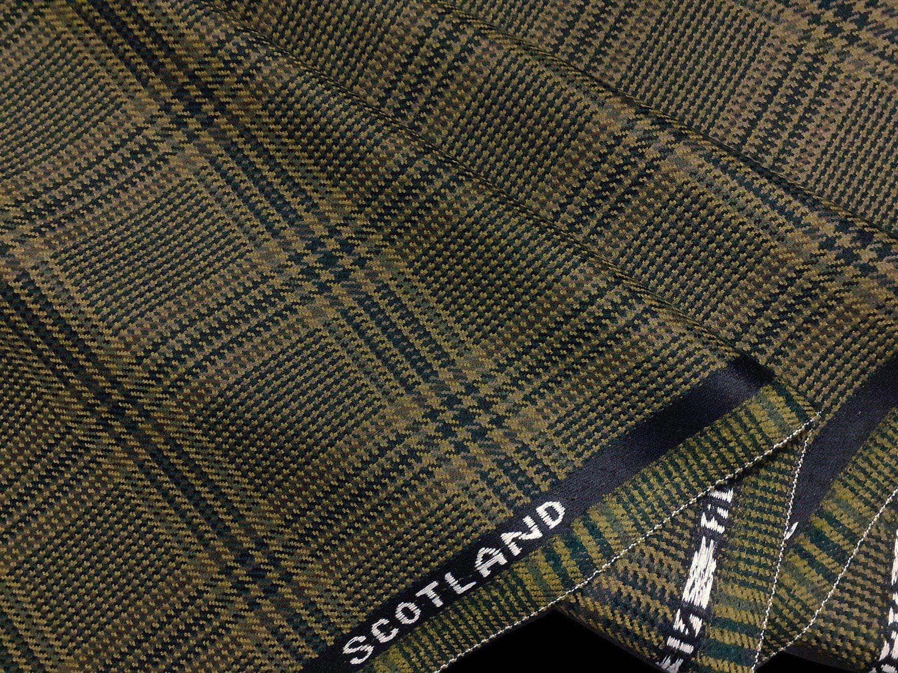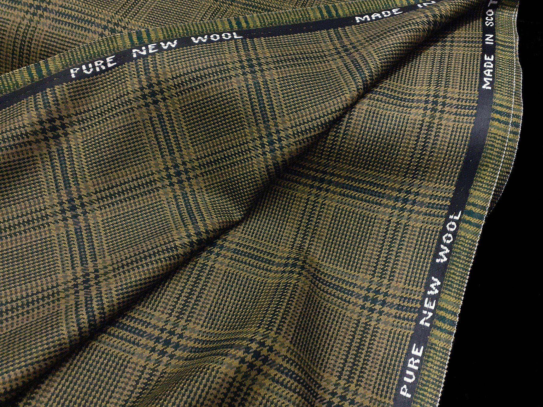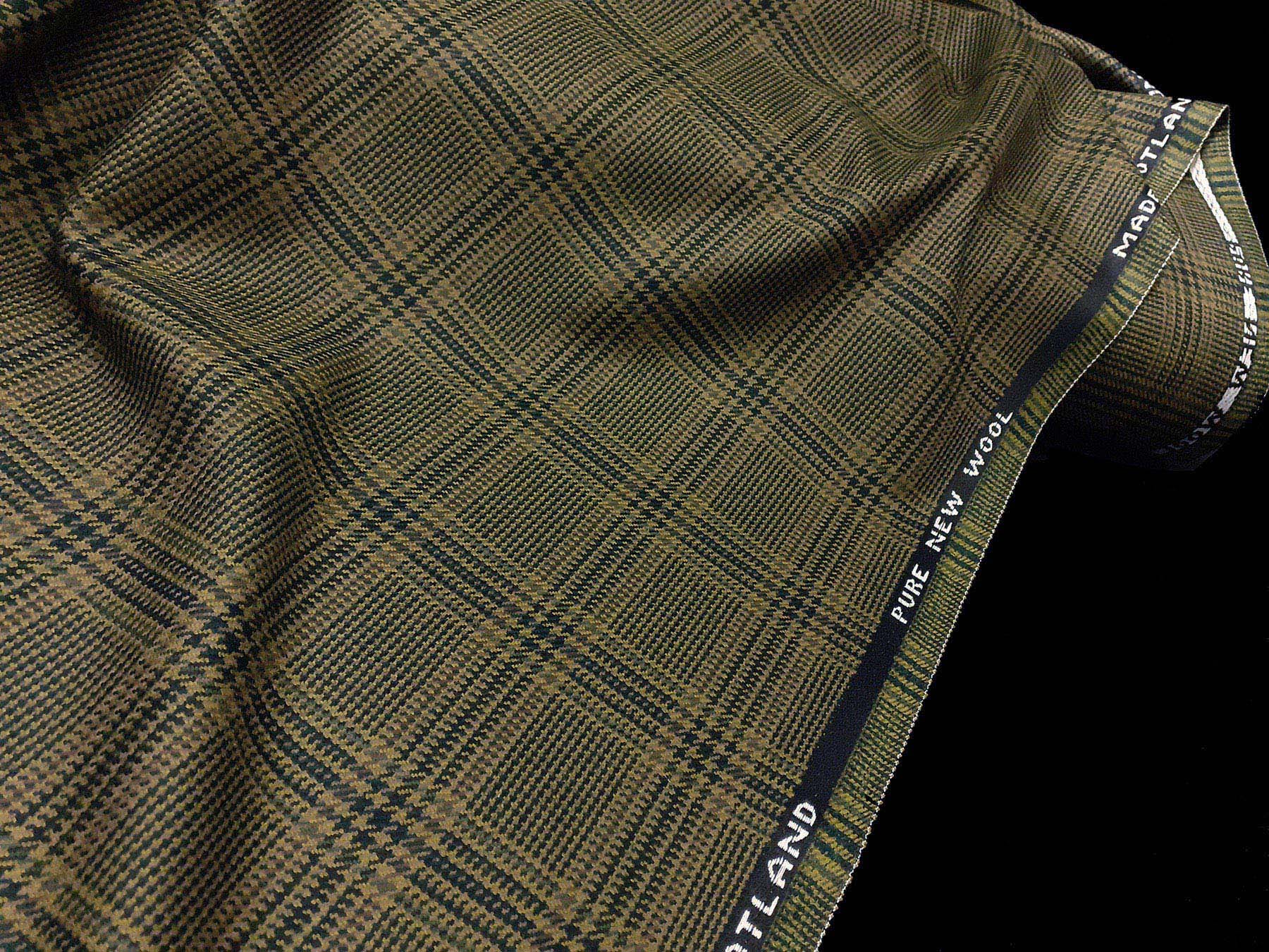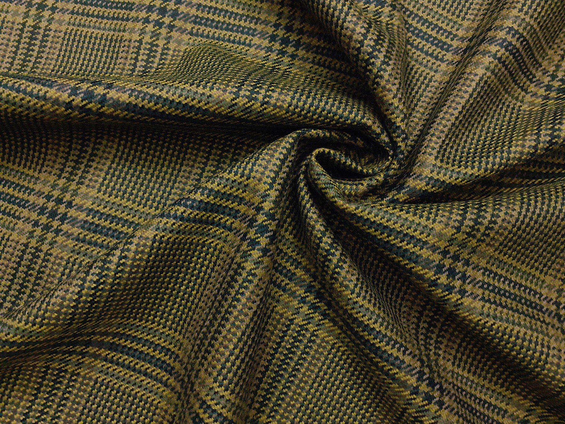 Tessuto in lana merino Principe di Galles sui toni del verde