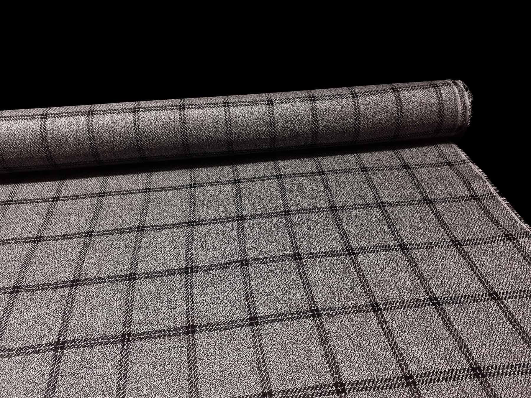 Puro lino fantasia grisaglia finestrata sul nero