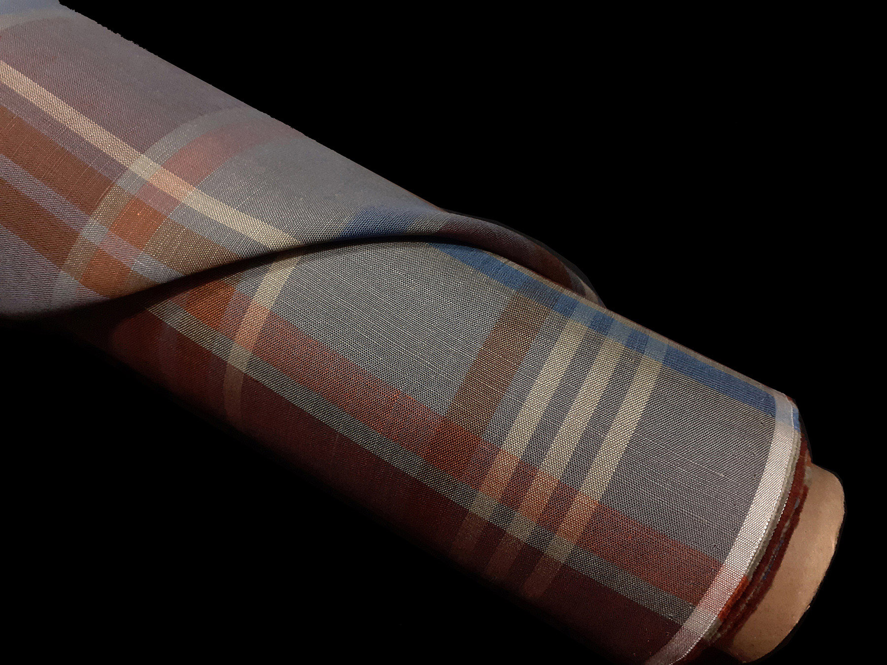 Tessuto in lino e cotone motivo a righe e quadri.Solbiati