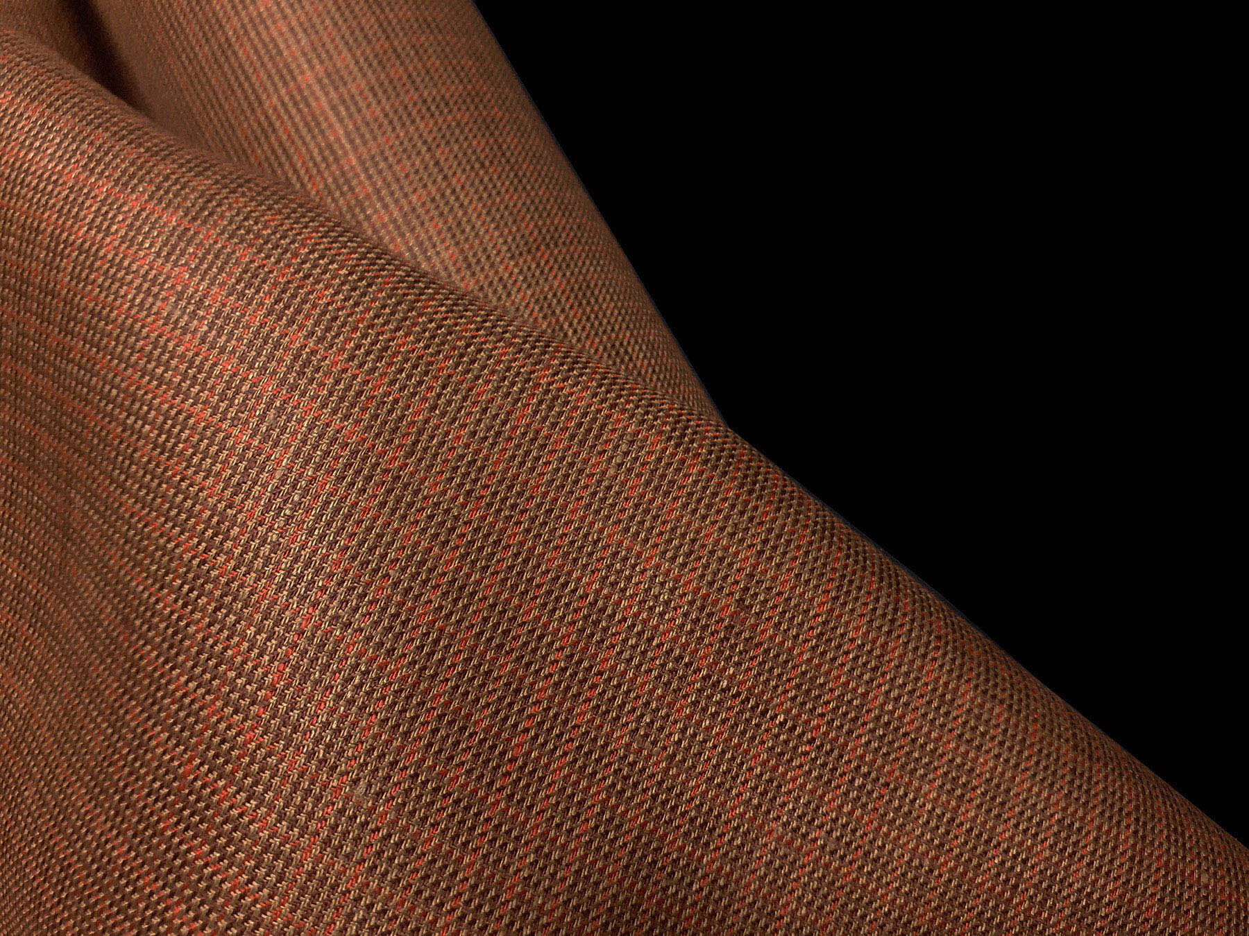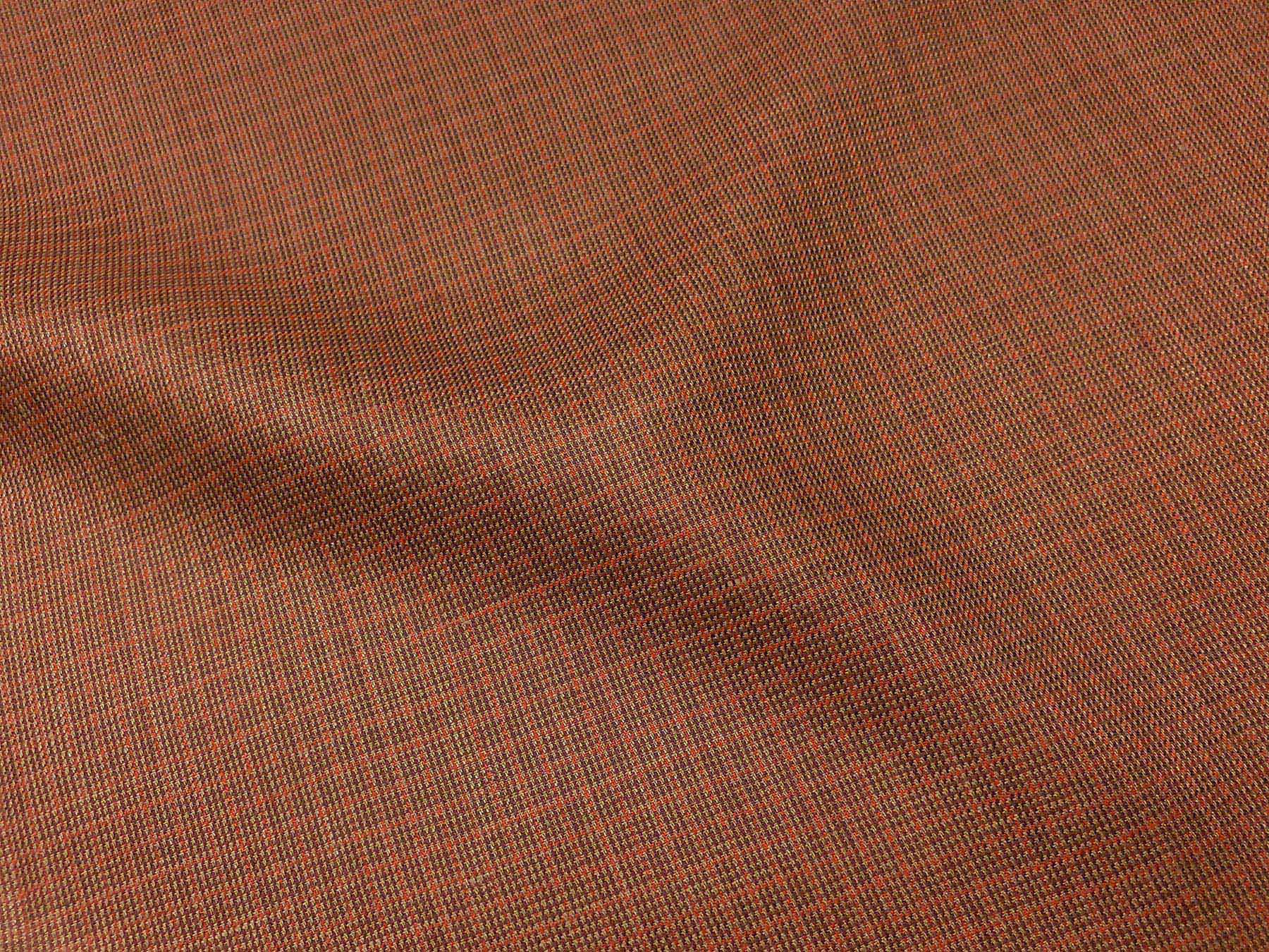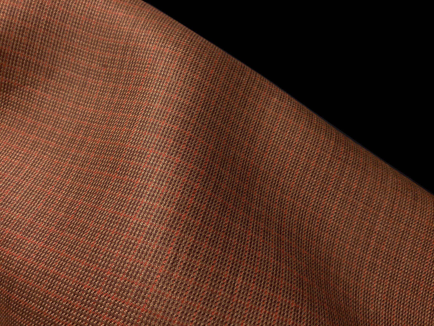 Tessuto in puro lino a righine e pied de poule bruciato e marrone.