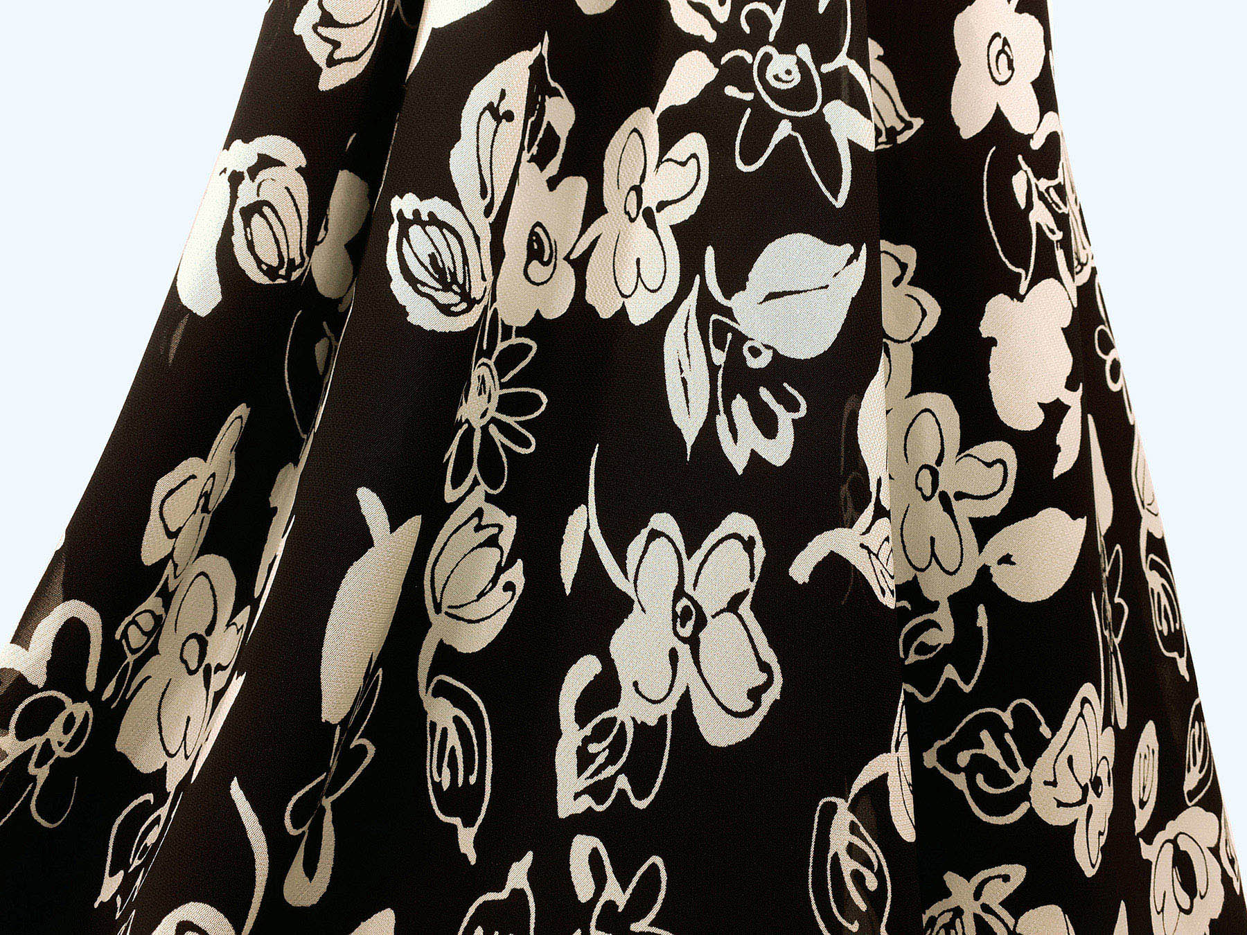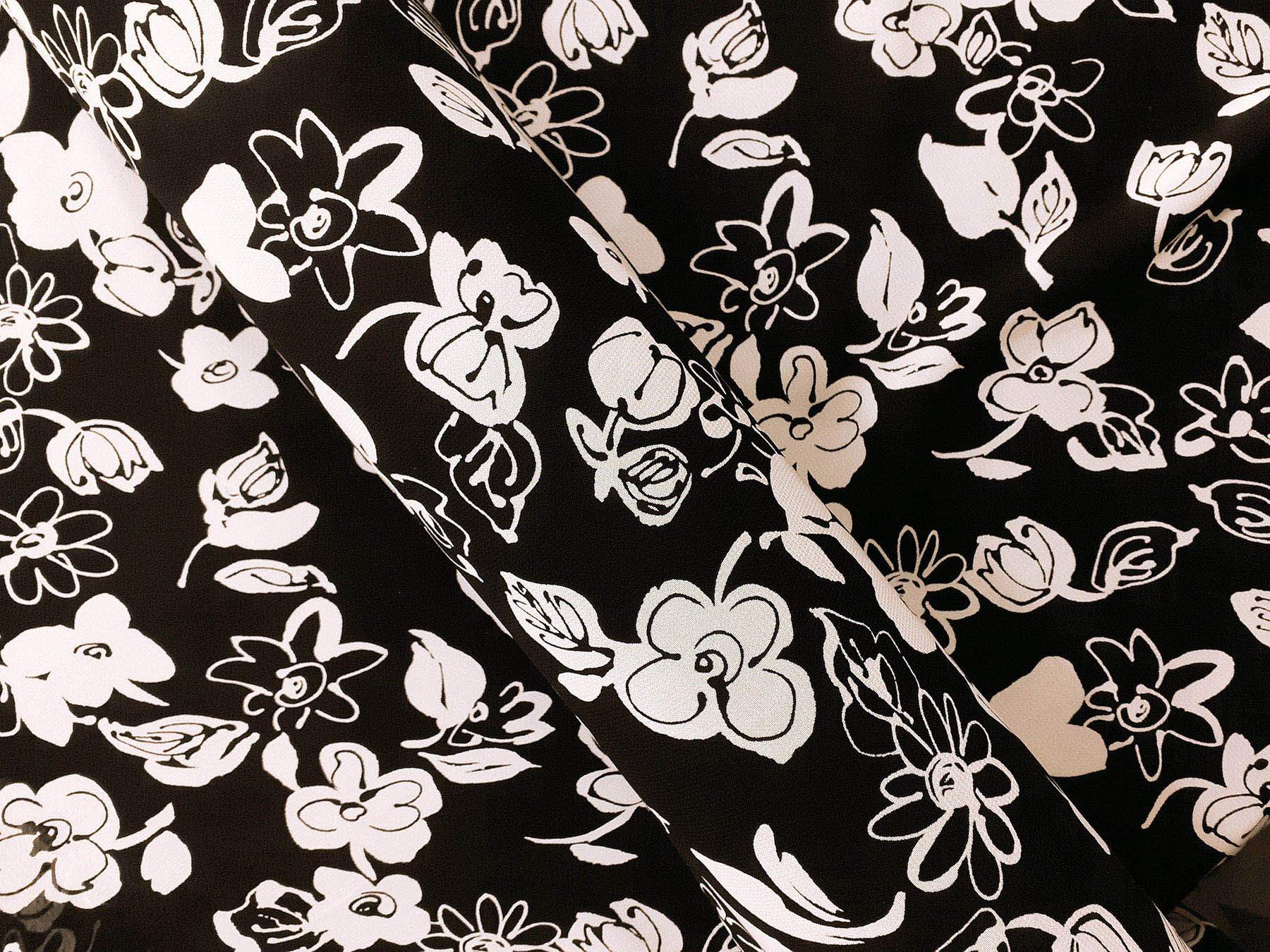 Tessuto in georgette di viscosa fantasia floreale fondo nero