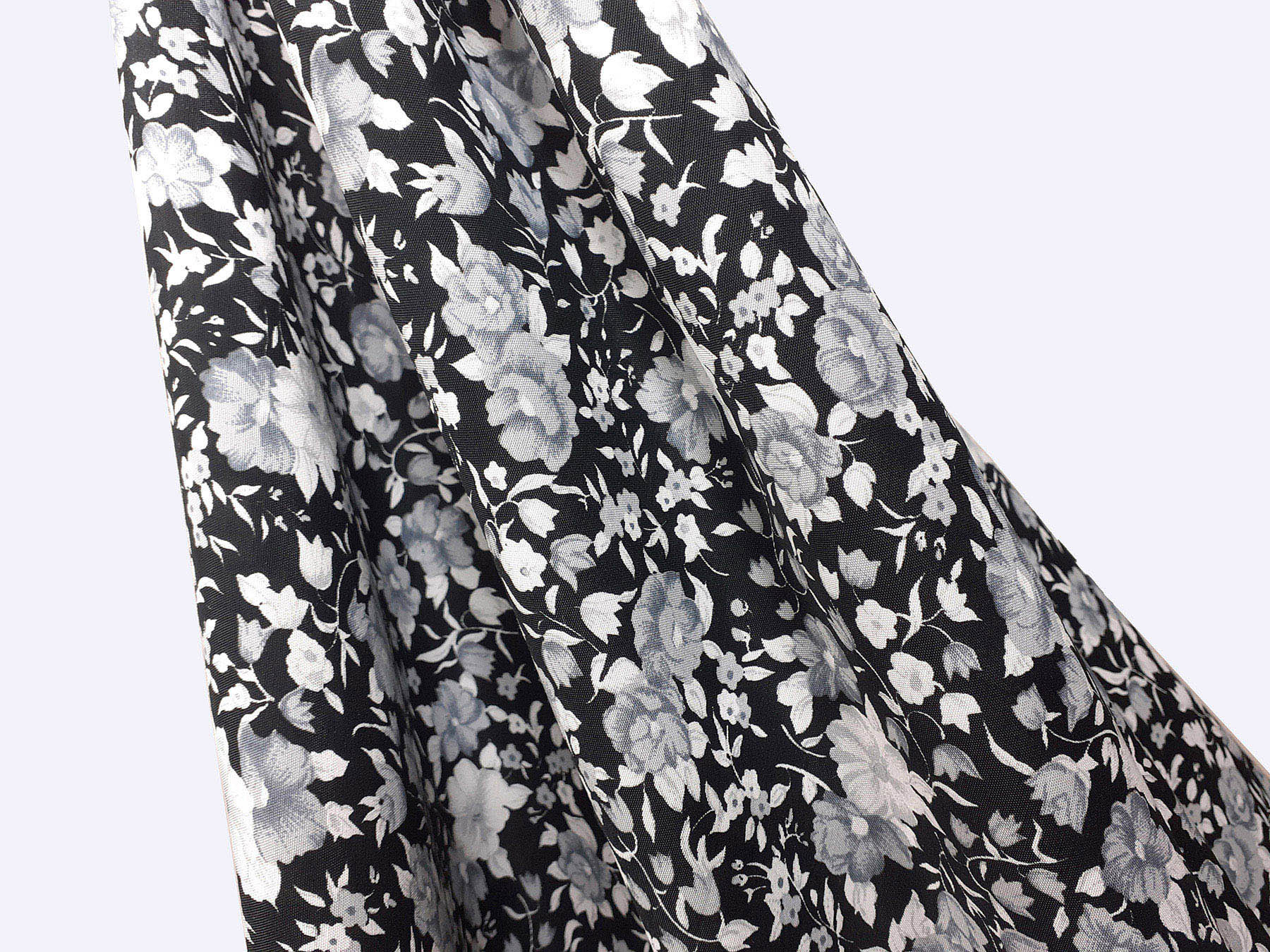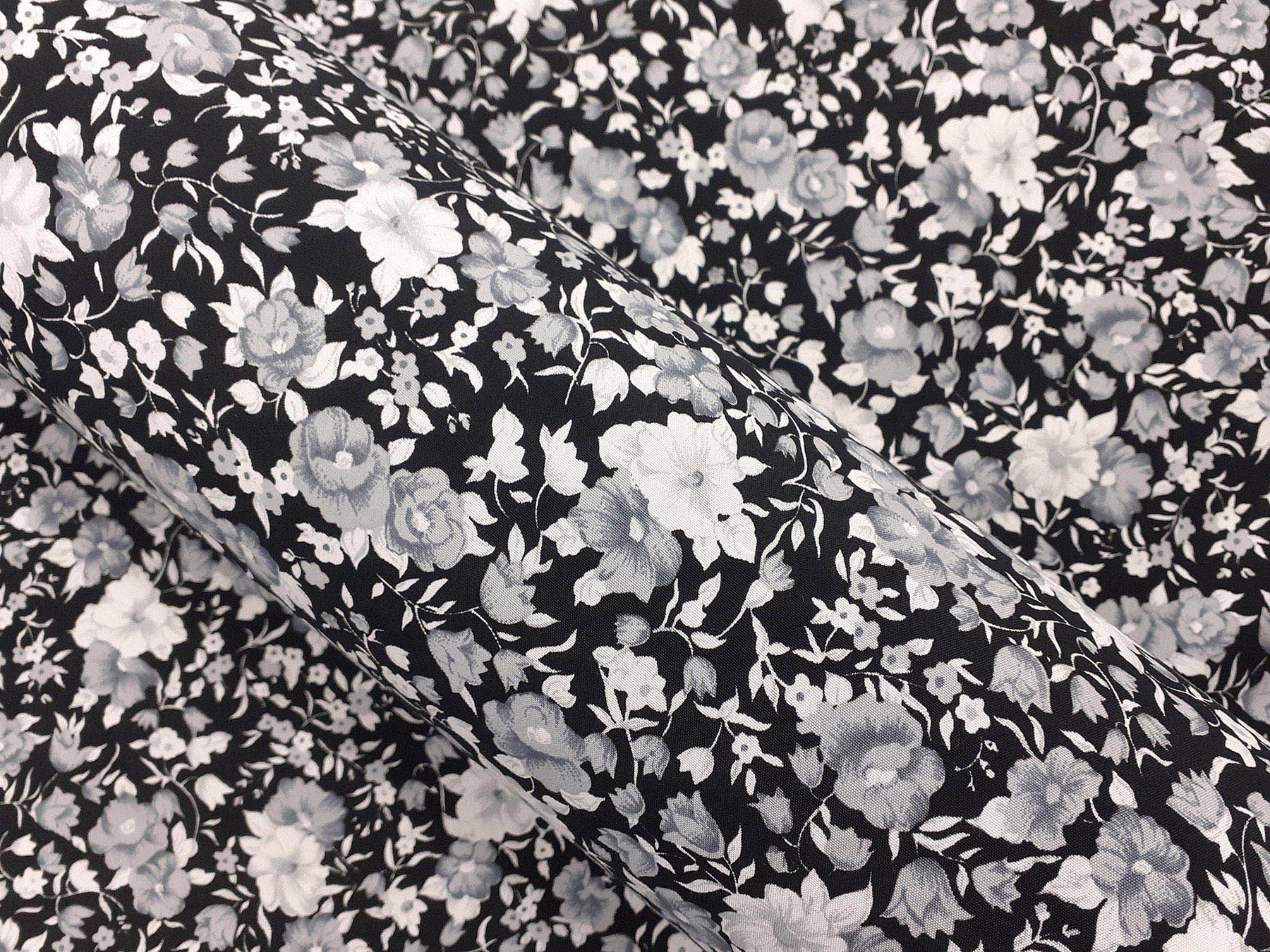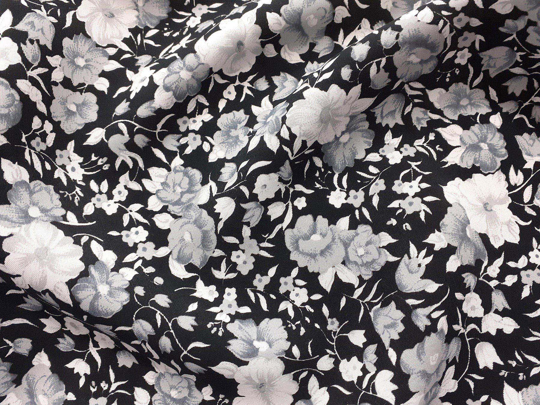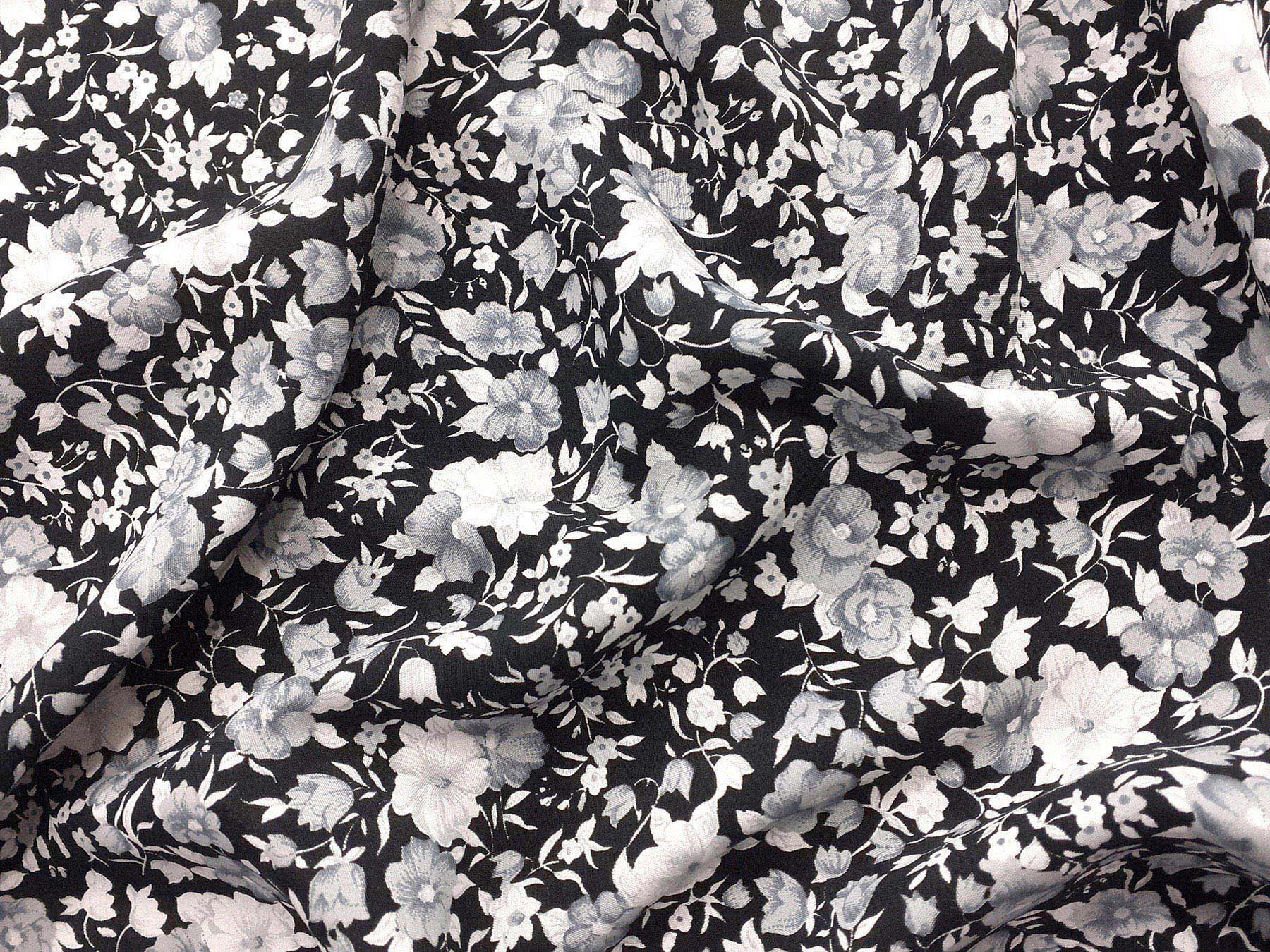 Tessuto in viscosa fantasia floreale bianco e nero