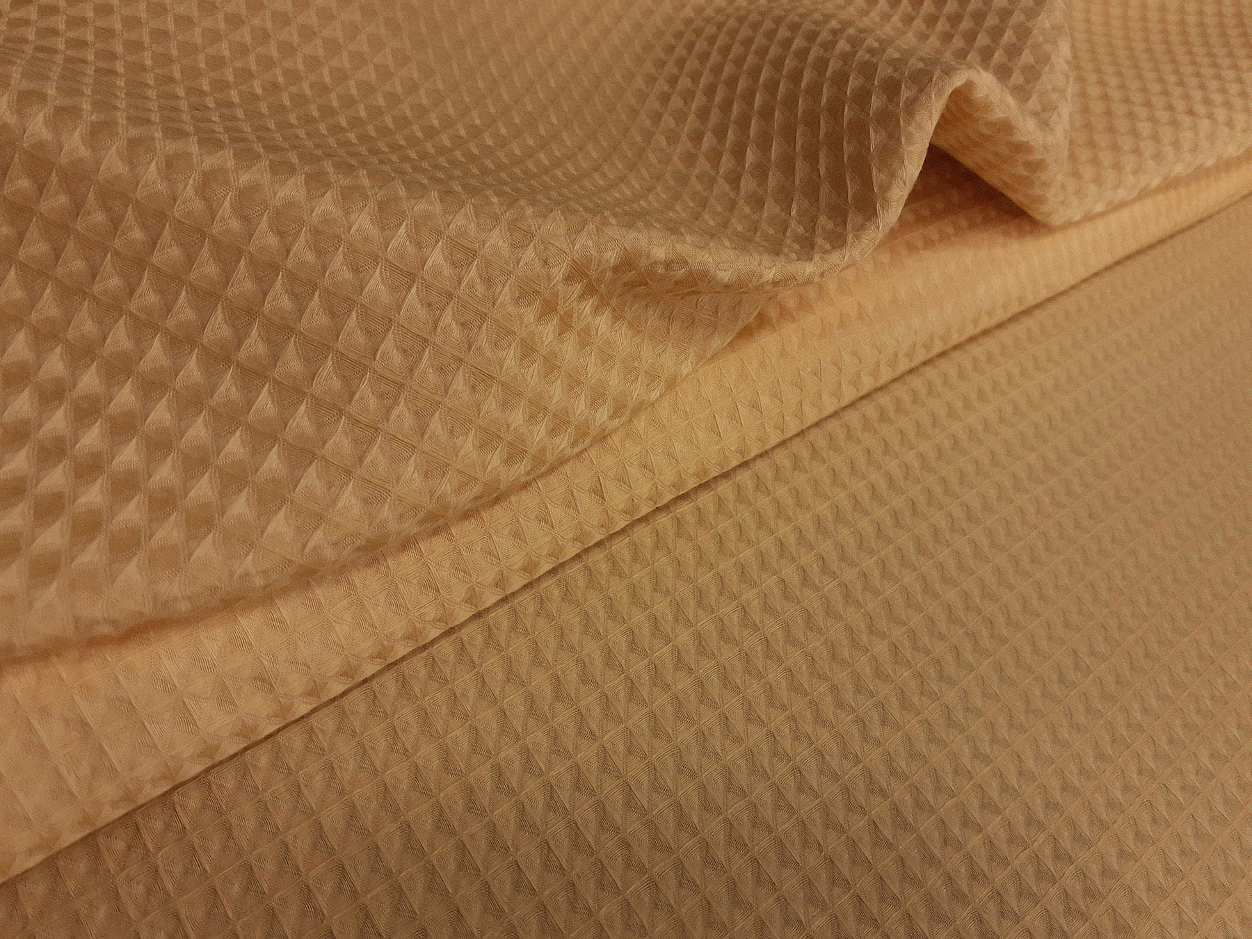 La lavorazione jacquard di questo tessuto in viscosa e cotone – a quadretti rilevati – con il contrasto fra lucido e opaco crea un piacevole effetto di tridimensionalità. Perfetto per la realizzazione di abiti morbidi, gonne e blouse, ma può essere utilizzato anche per capi più lineari che mettono in evidenza la ricchezza e la particolarità di questo tipo di tessuto.