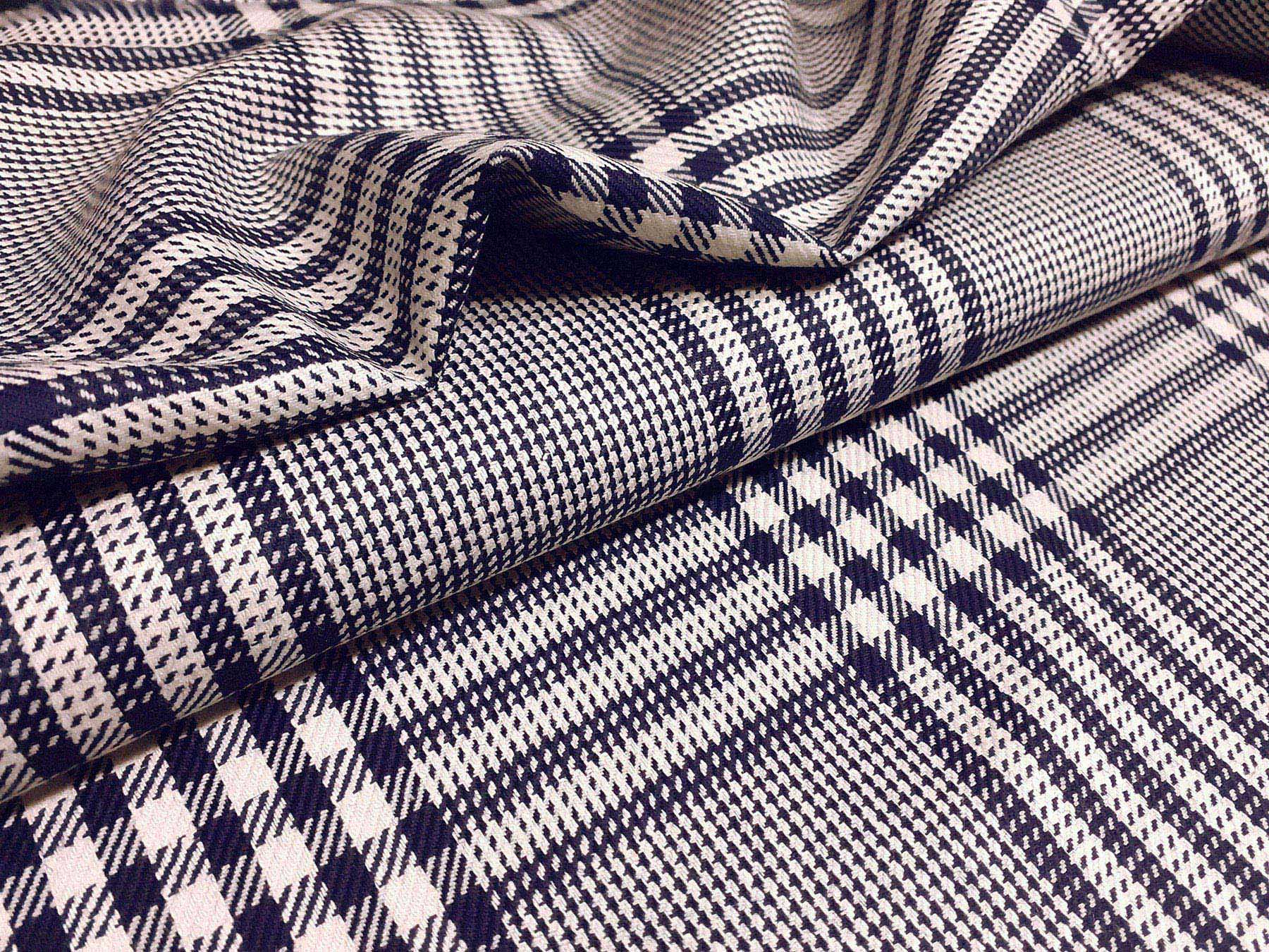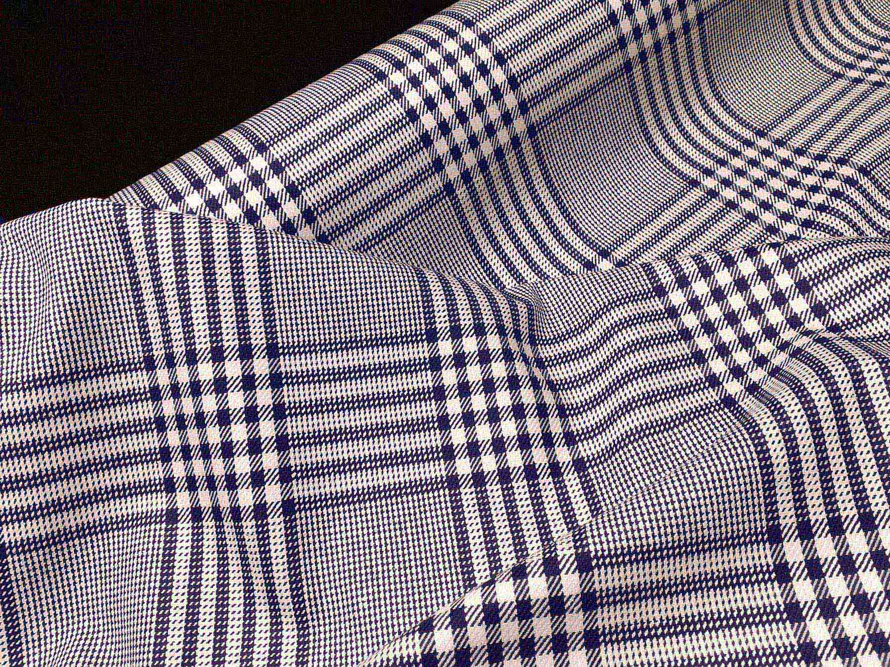 Tessuto in lana e seta Principe di Galles bianco e blu