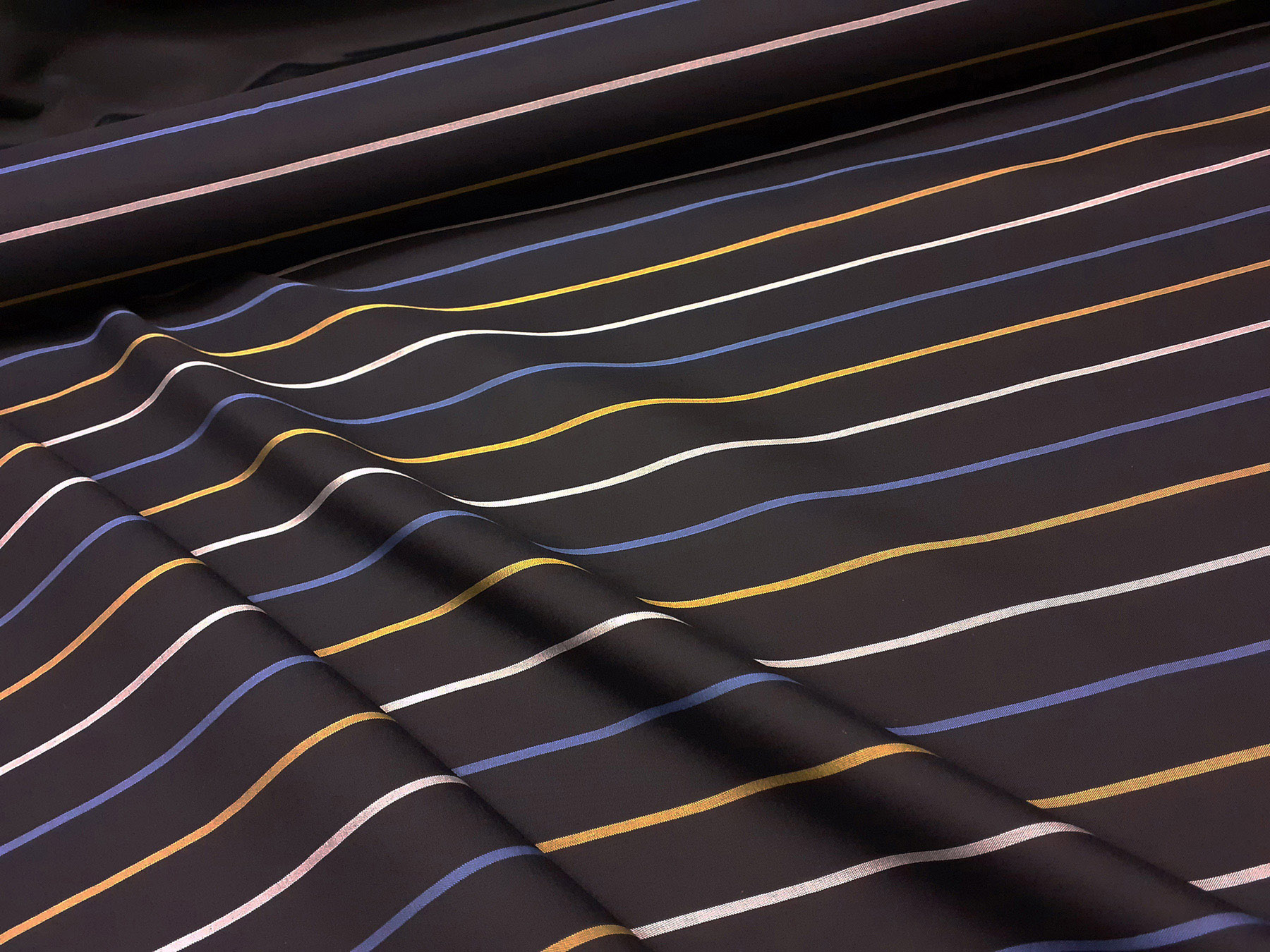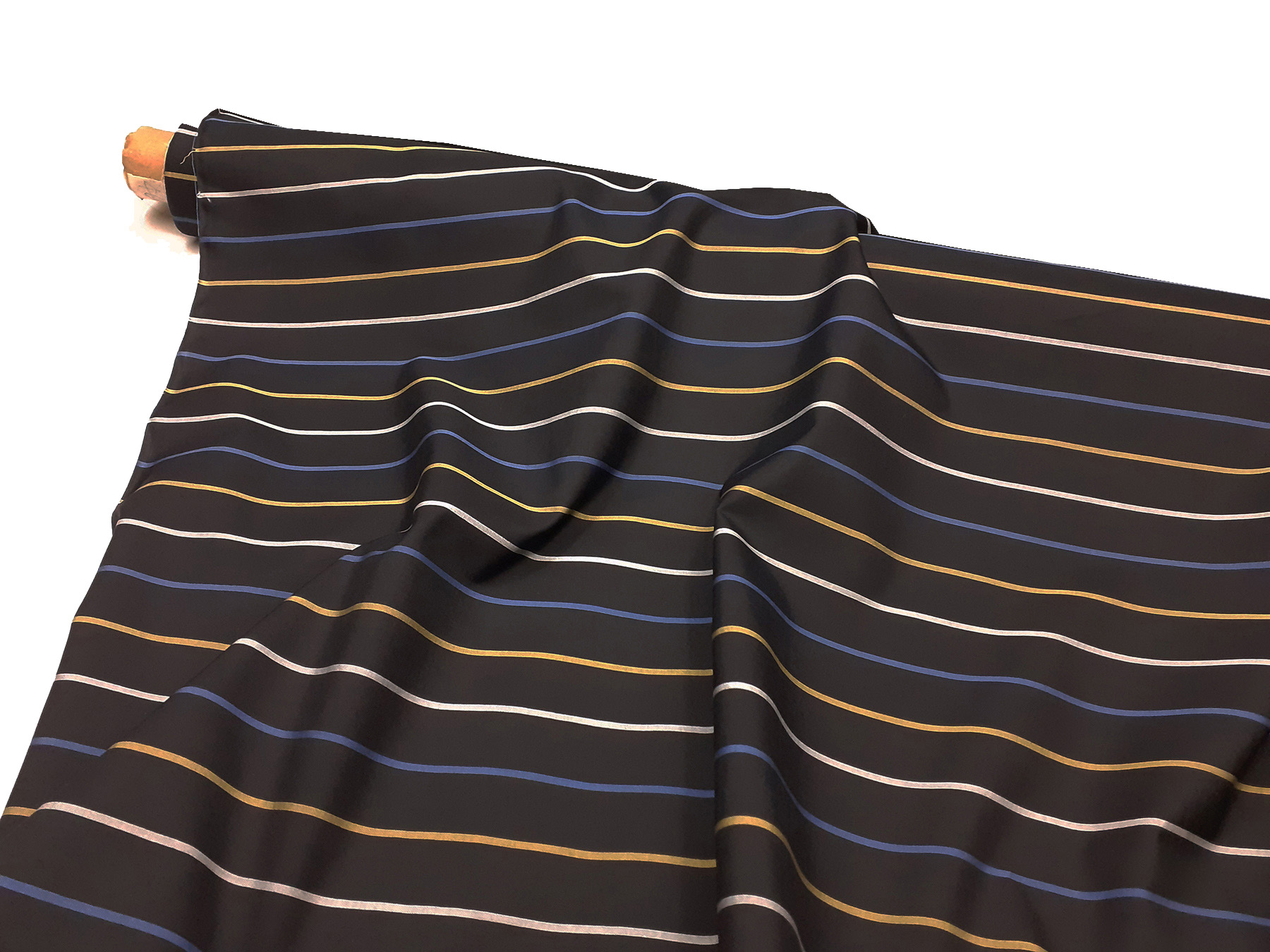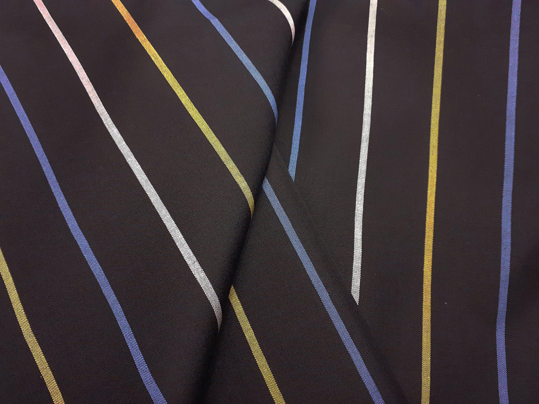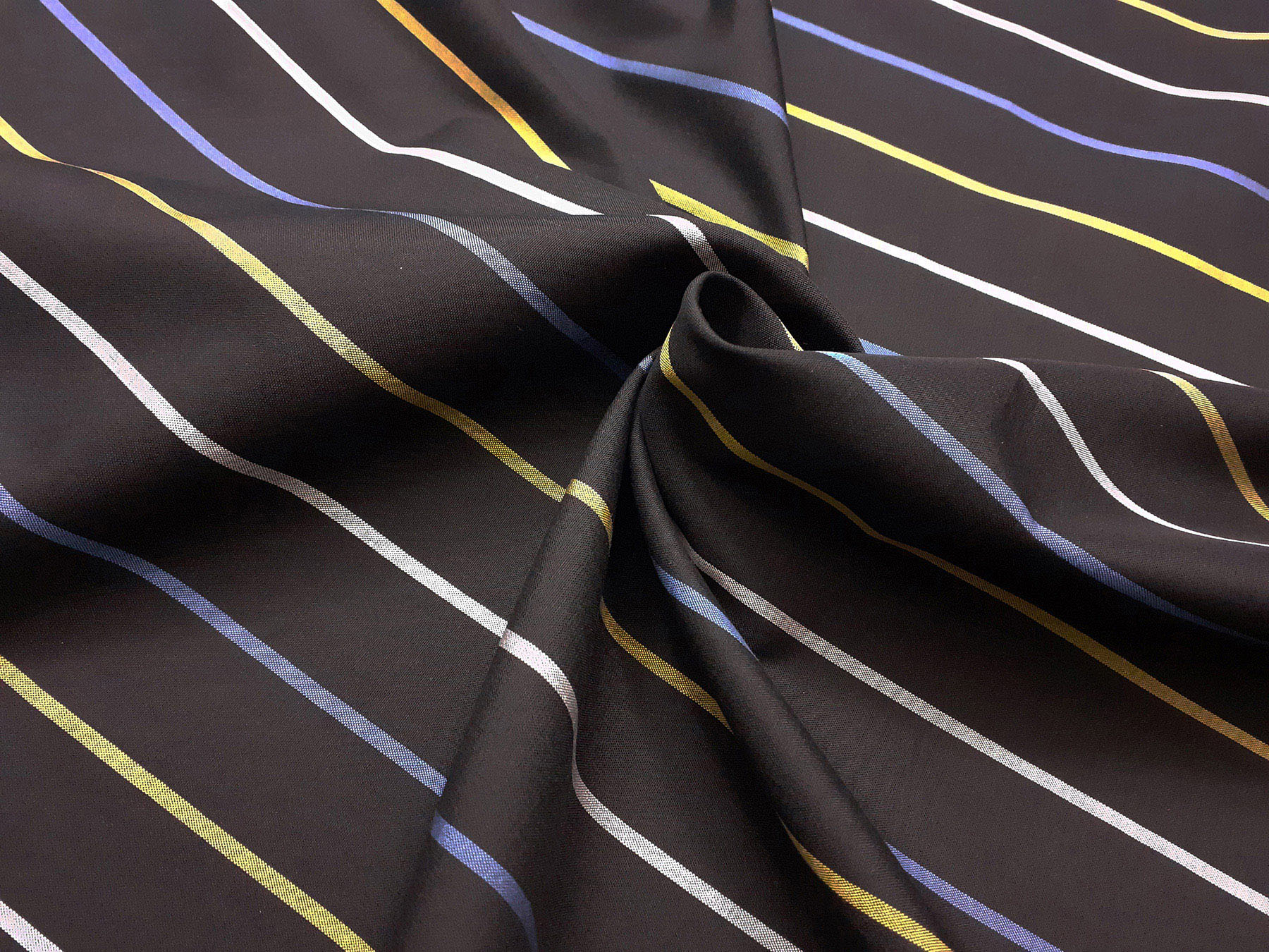 Tessuto per camicie tinto in filo righe giallo e blu su fondo nero