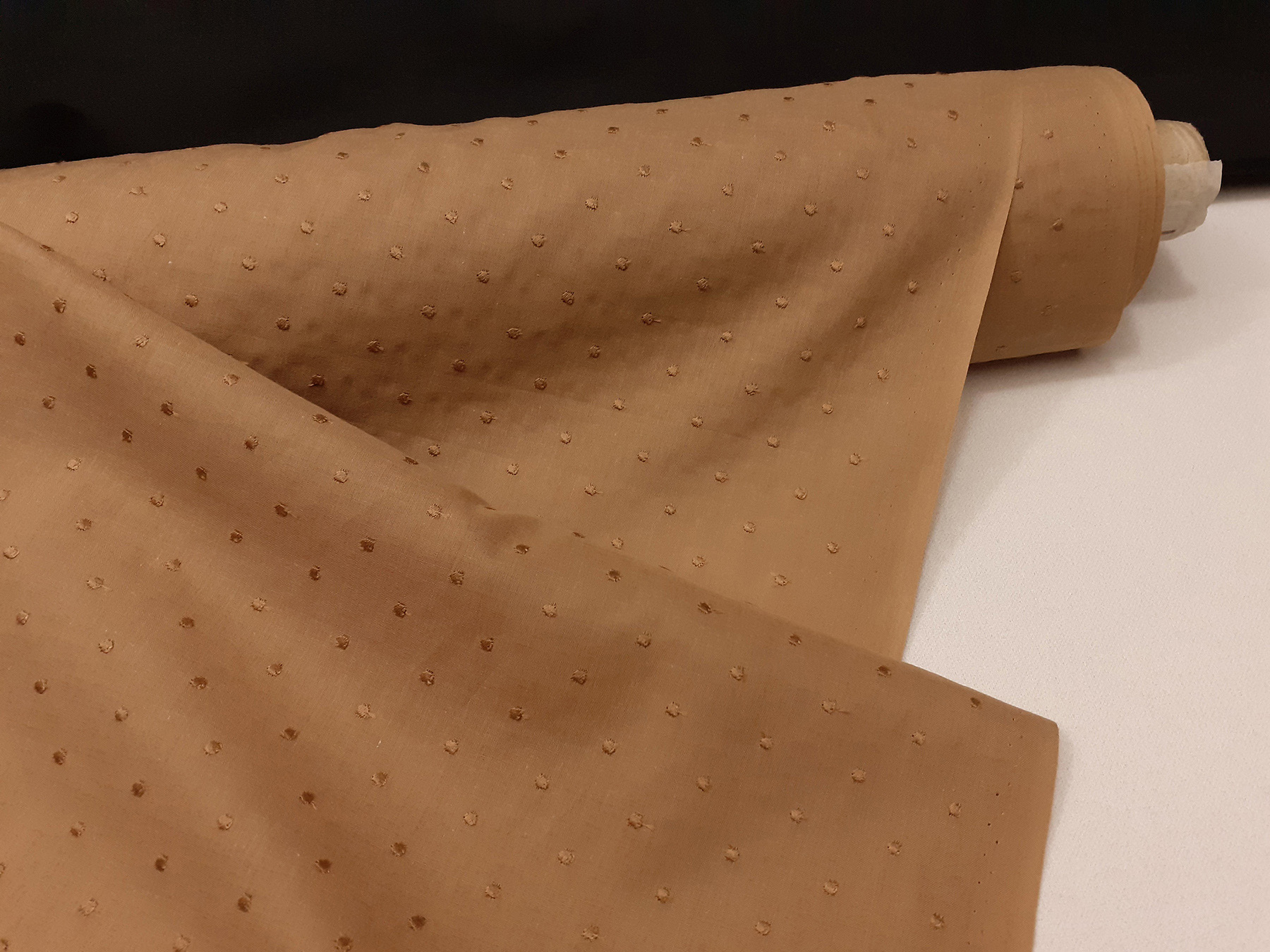 Tessuto per camicie batista “plumetis” beige scuro