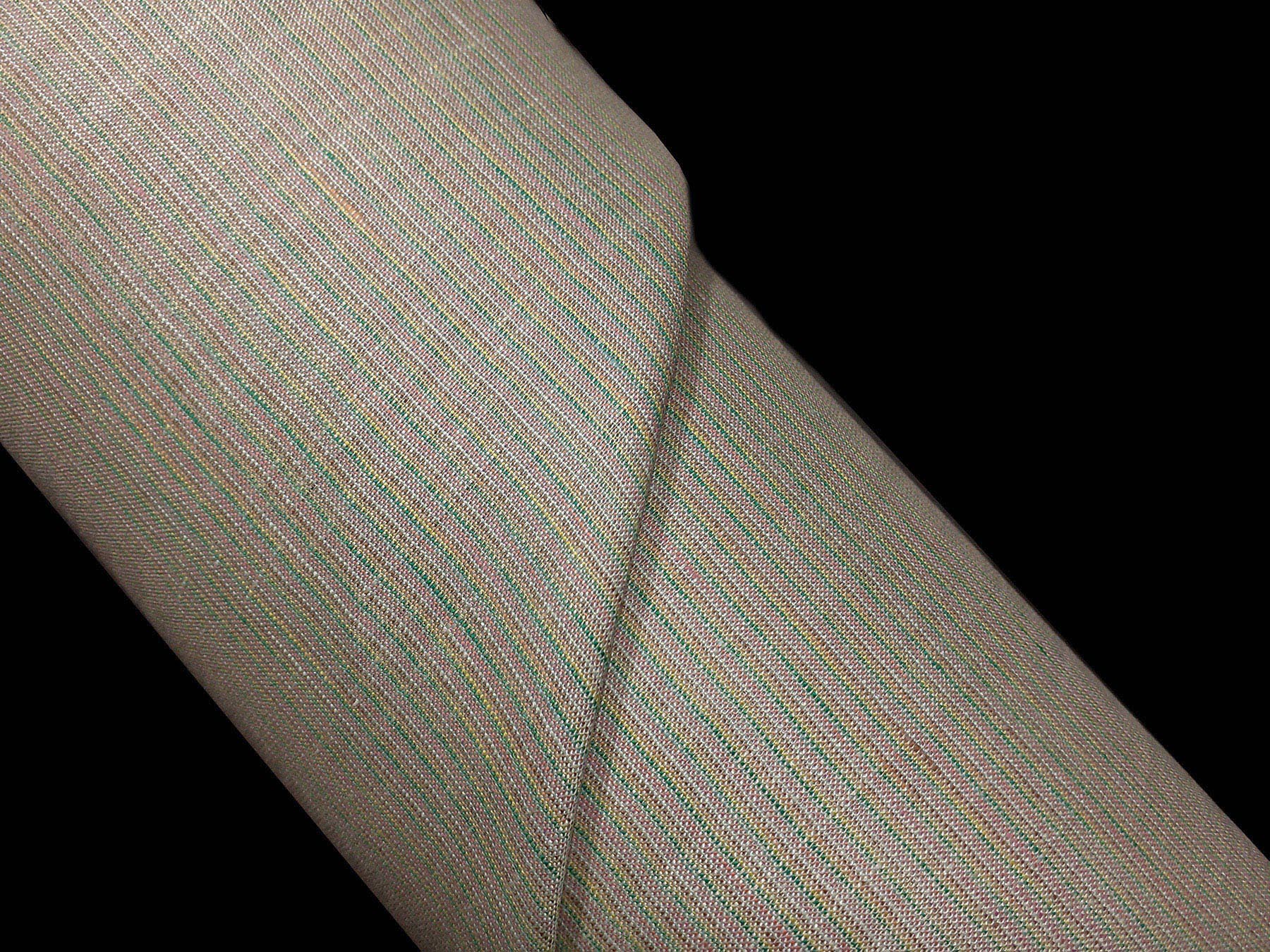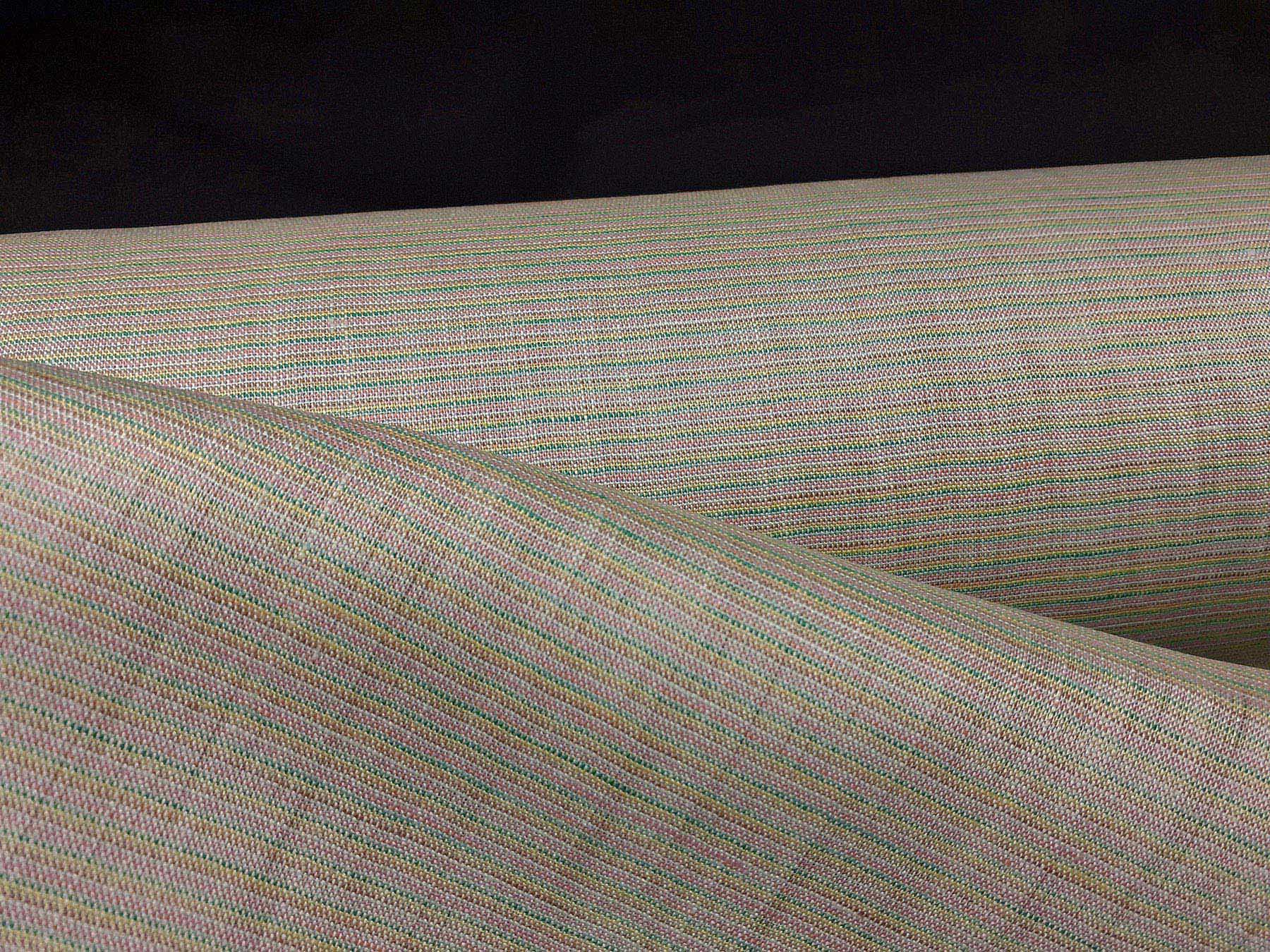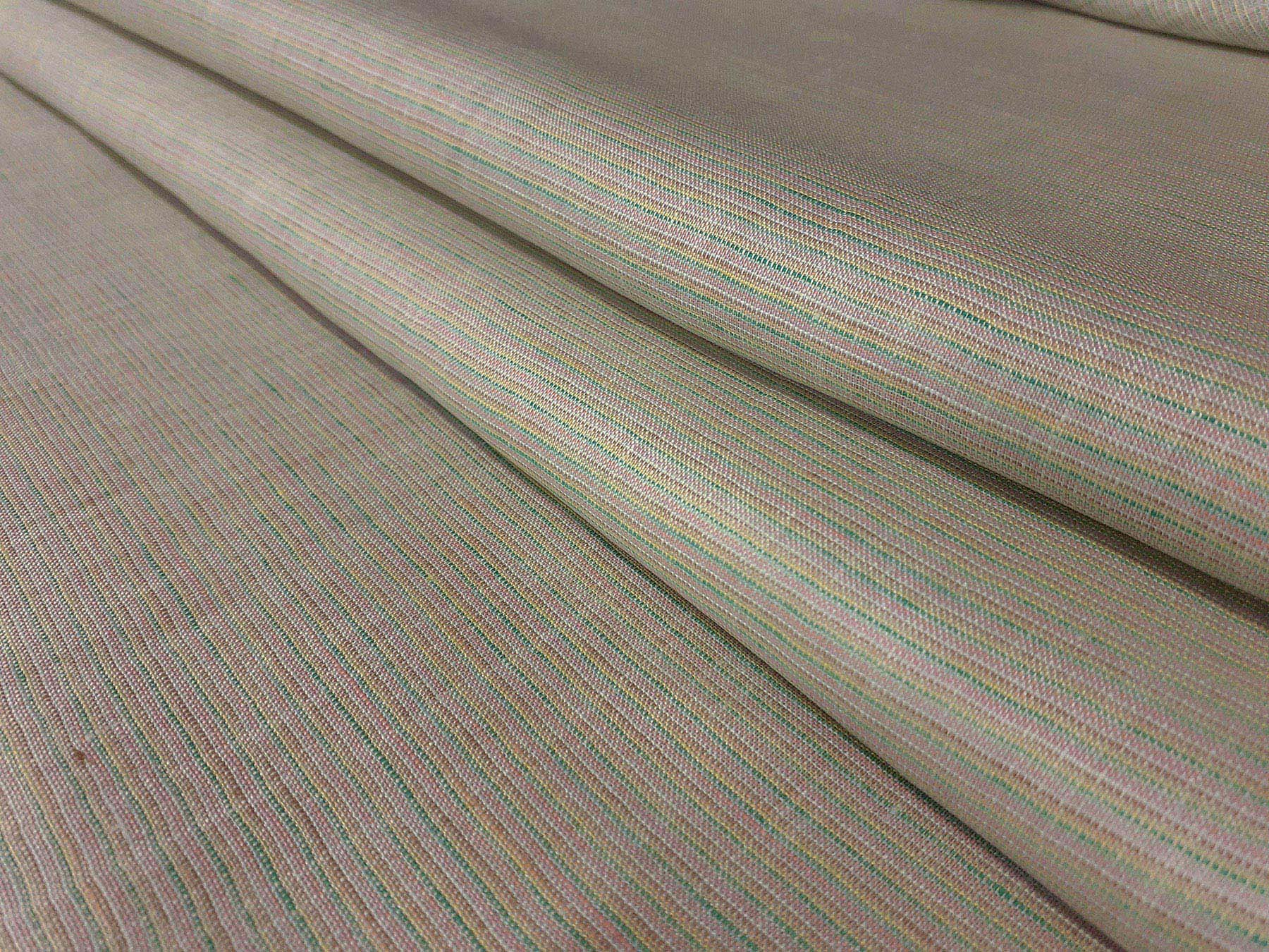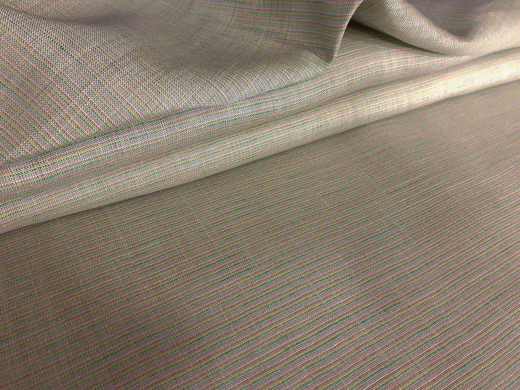 Tessuto in puro lino a piccole righe fondo verde