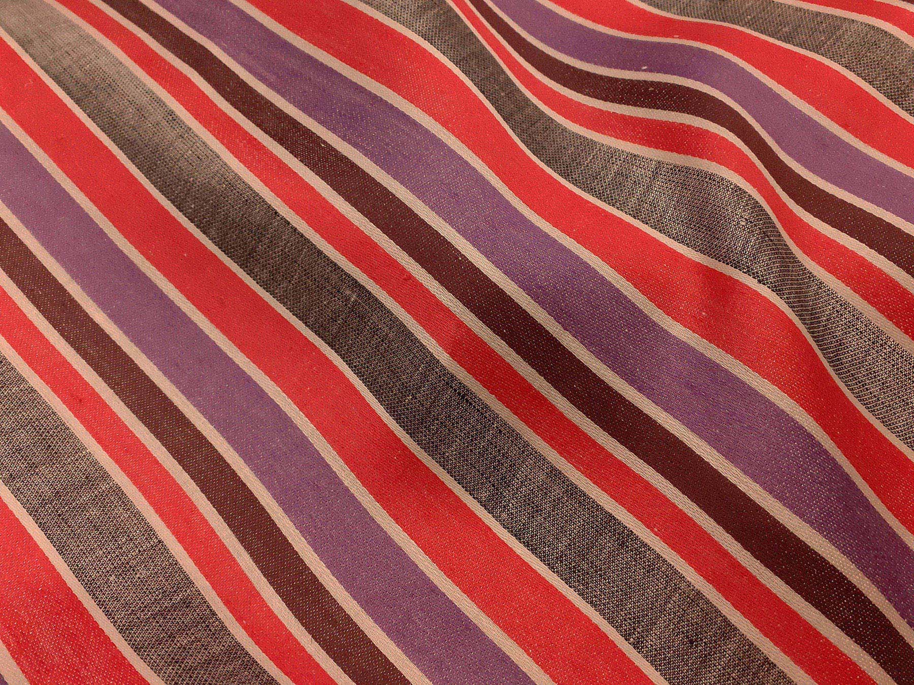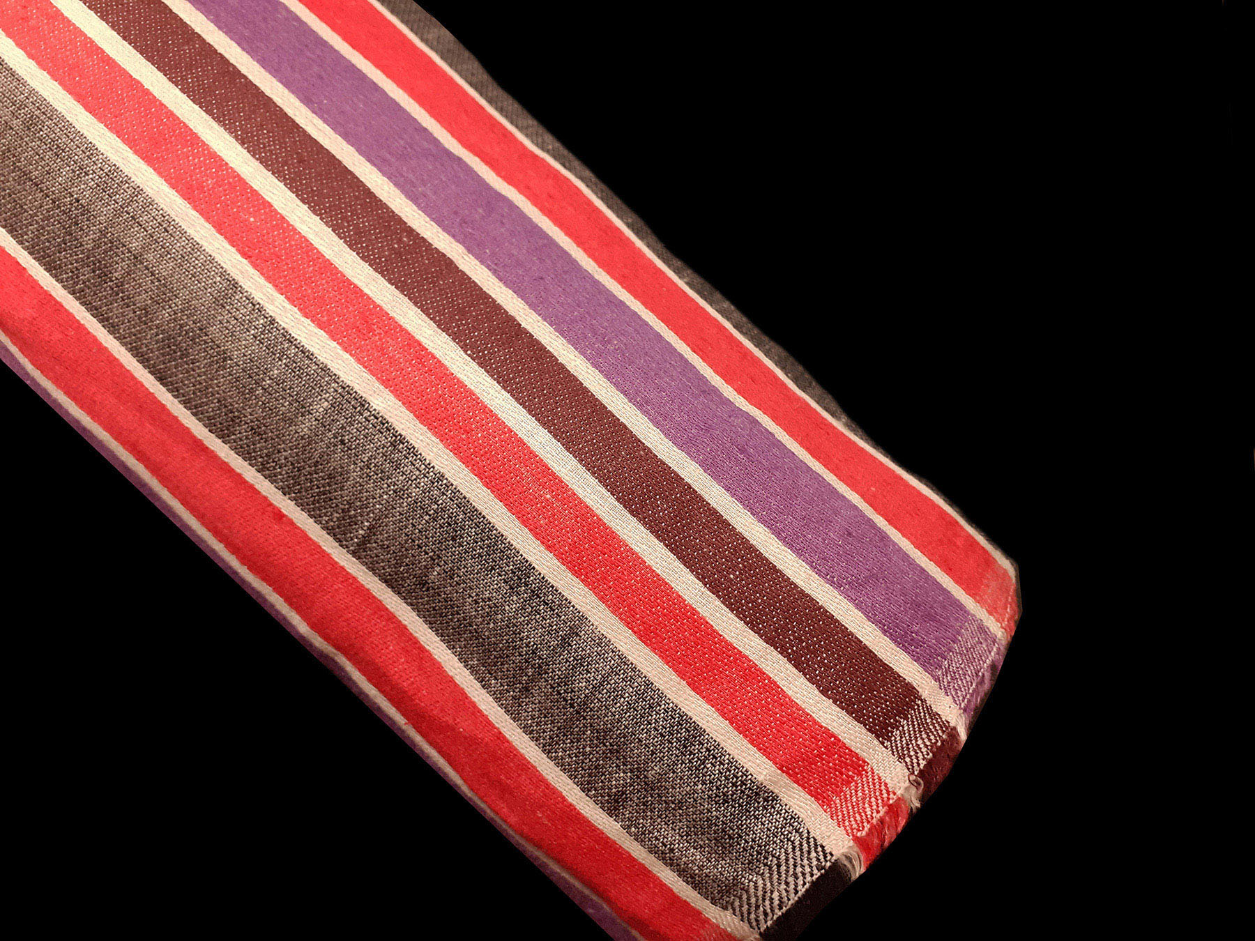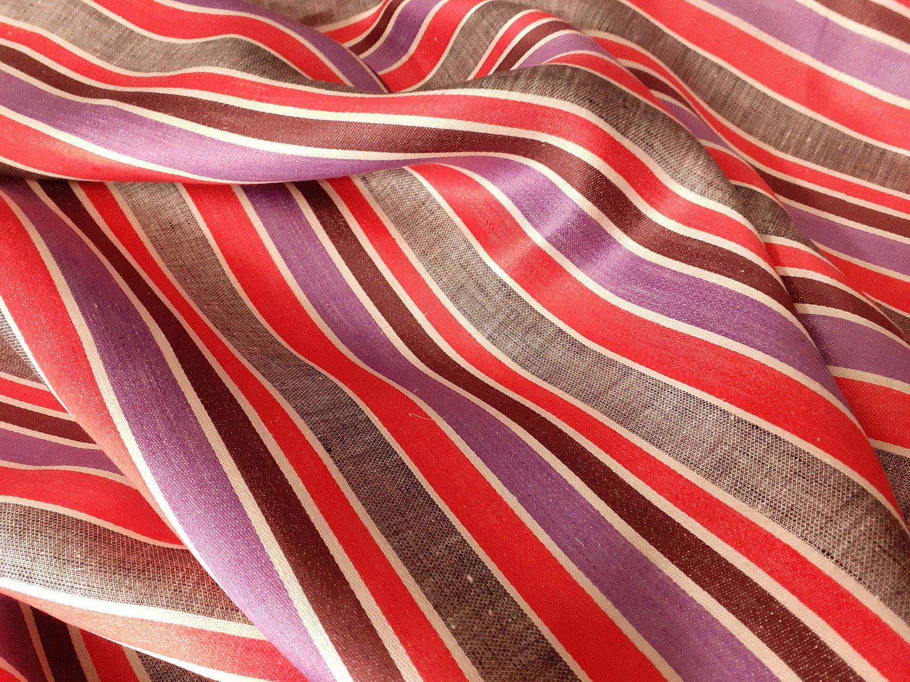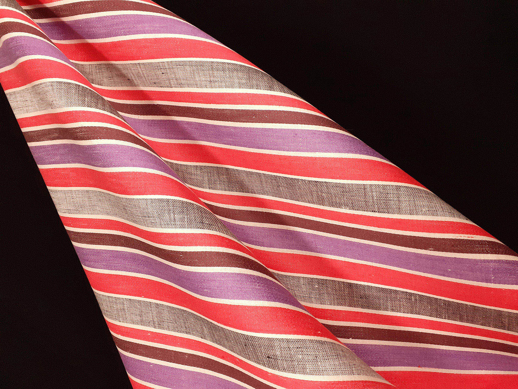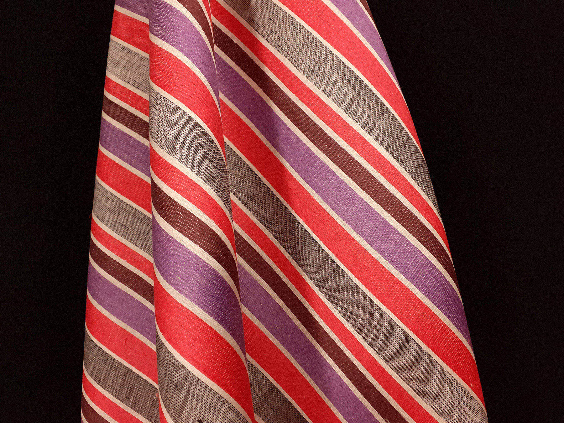 La grisaglia di lino viene realizzata incrociando filati bianchi e neri che danno all’insieme un effetto particolare su cui si inseriscono le righe colorate in raso.
