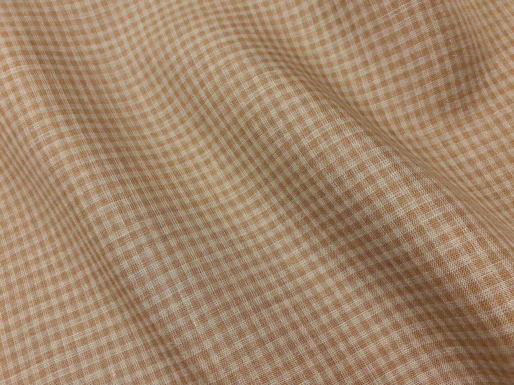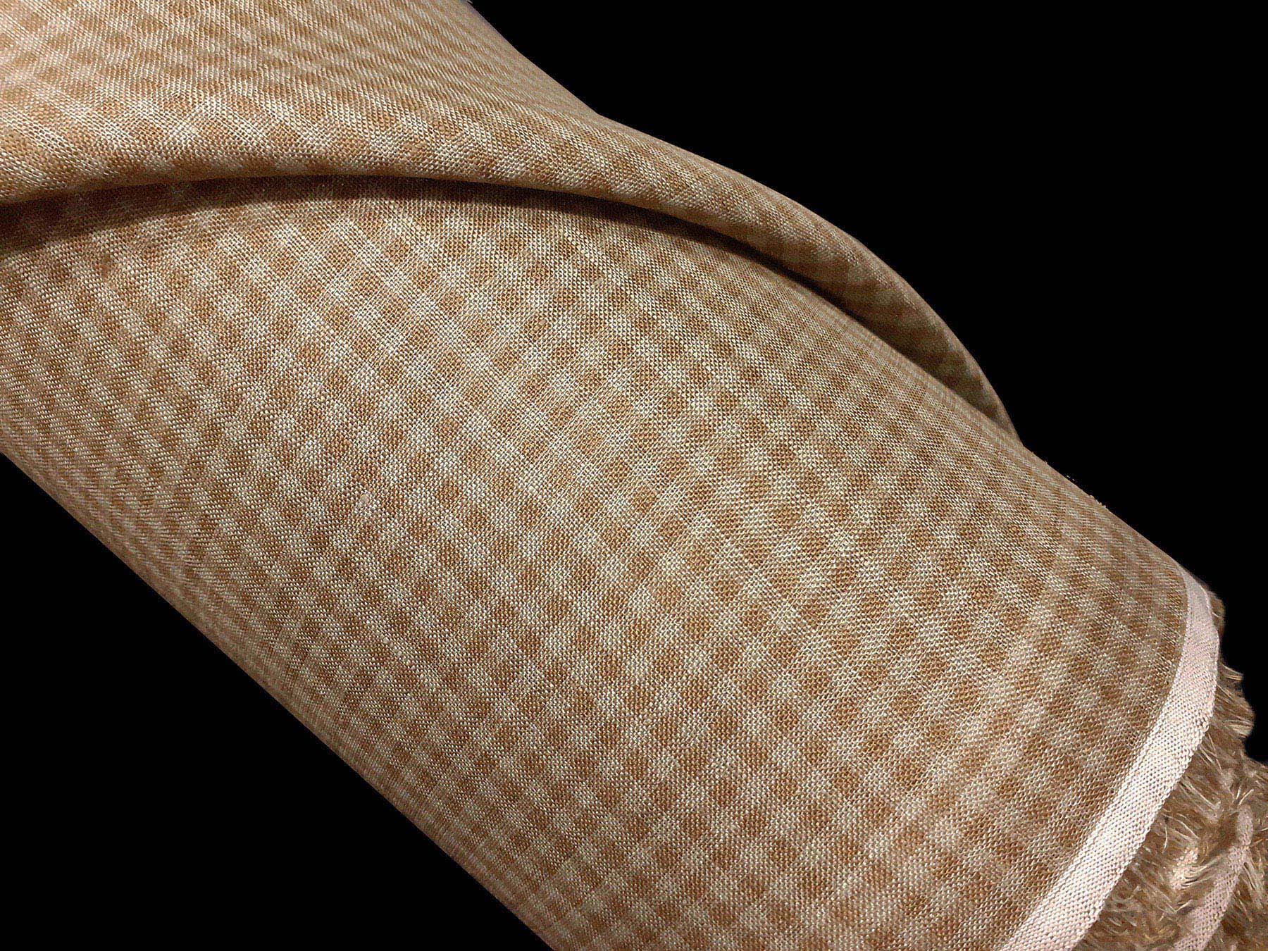 Tessuto in puro lino a quadretti tinta cammello e verde salvia