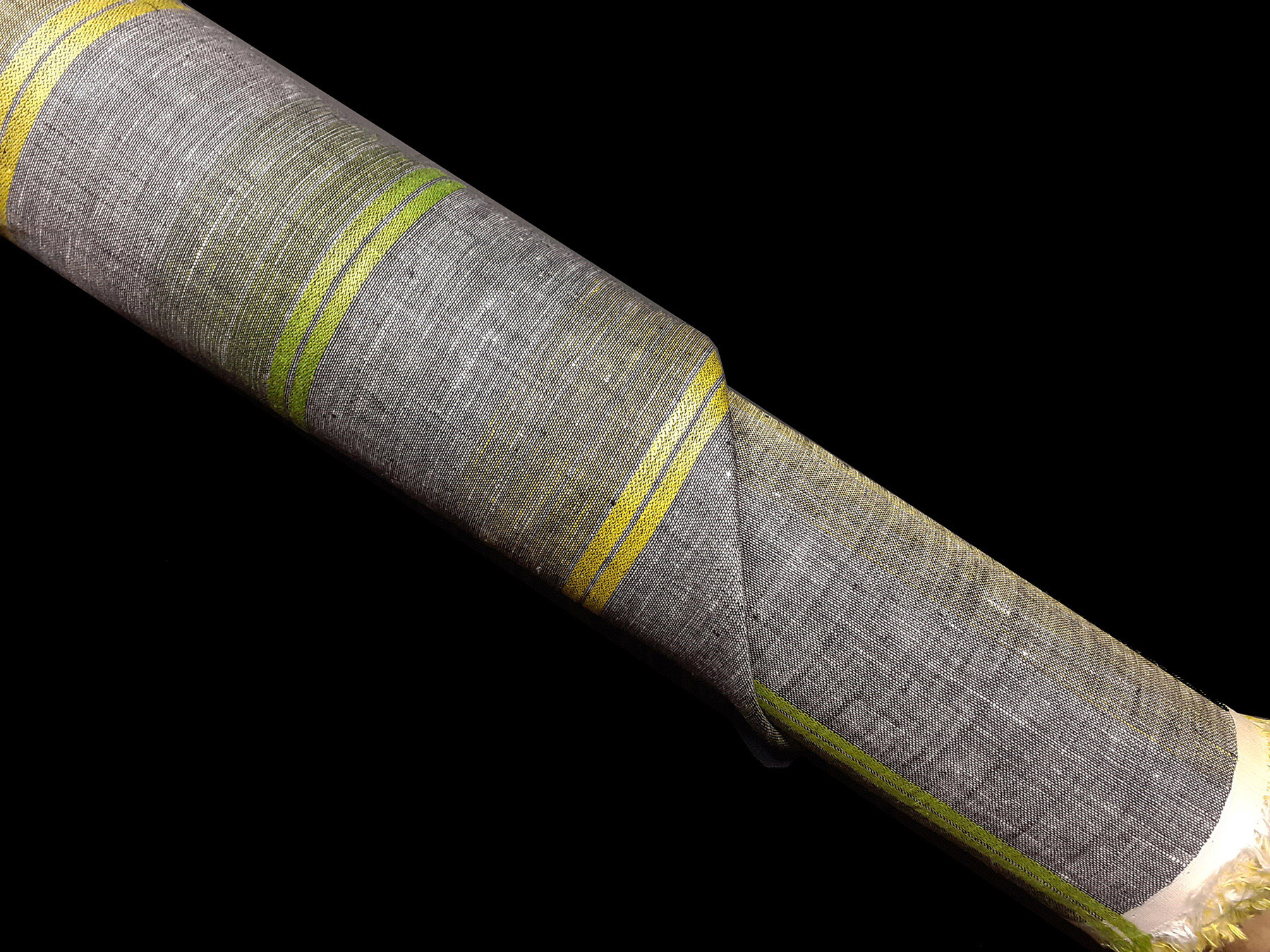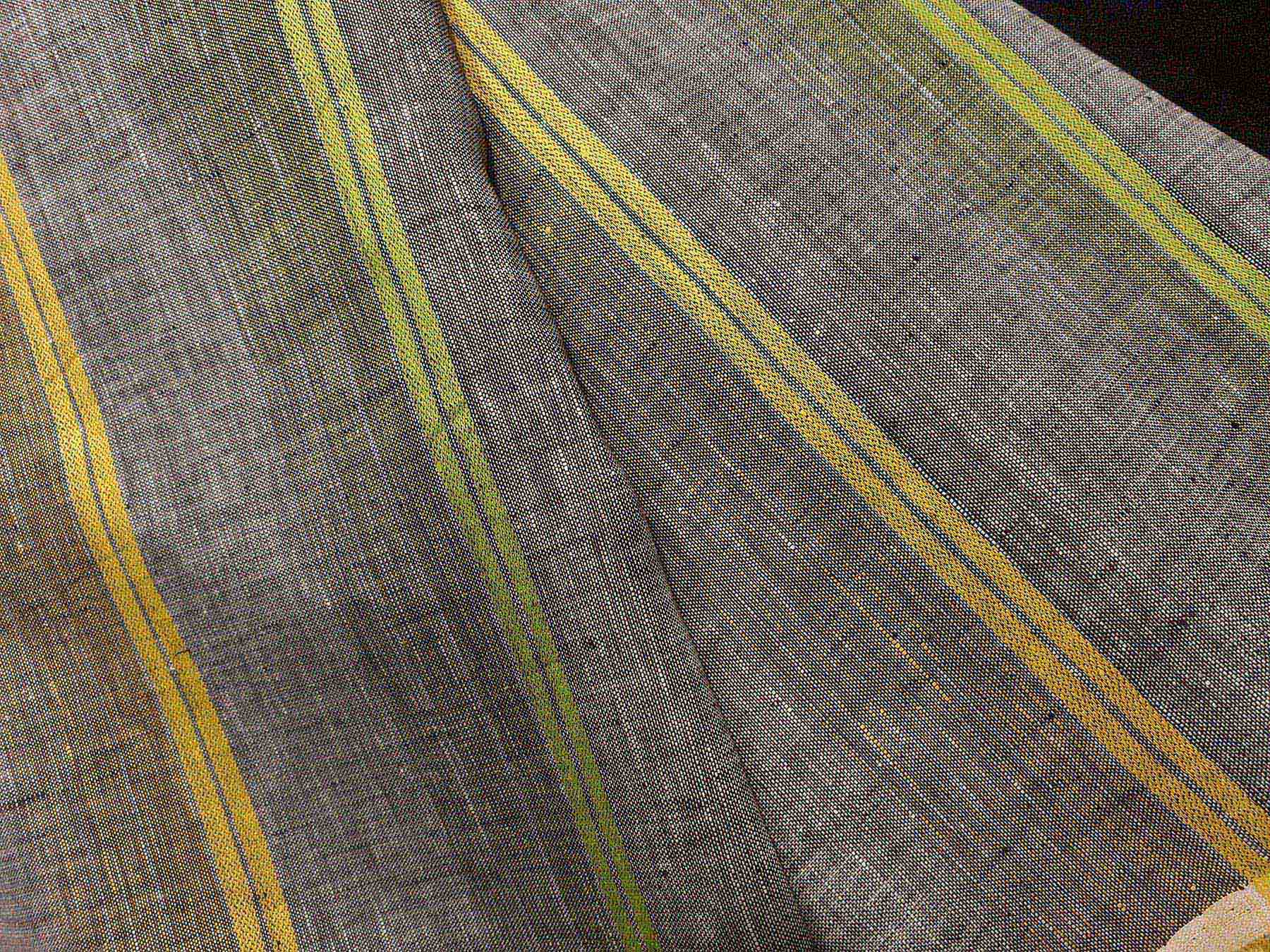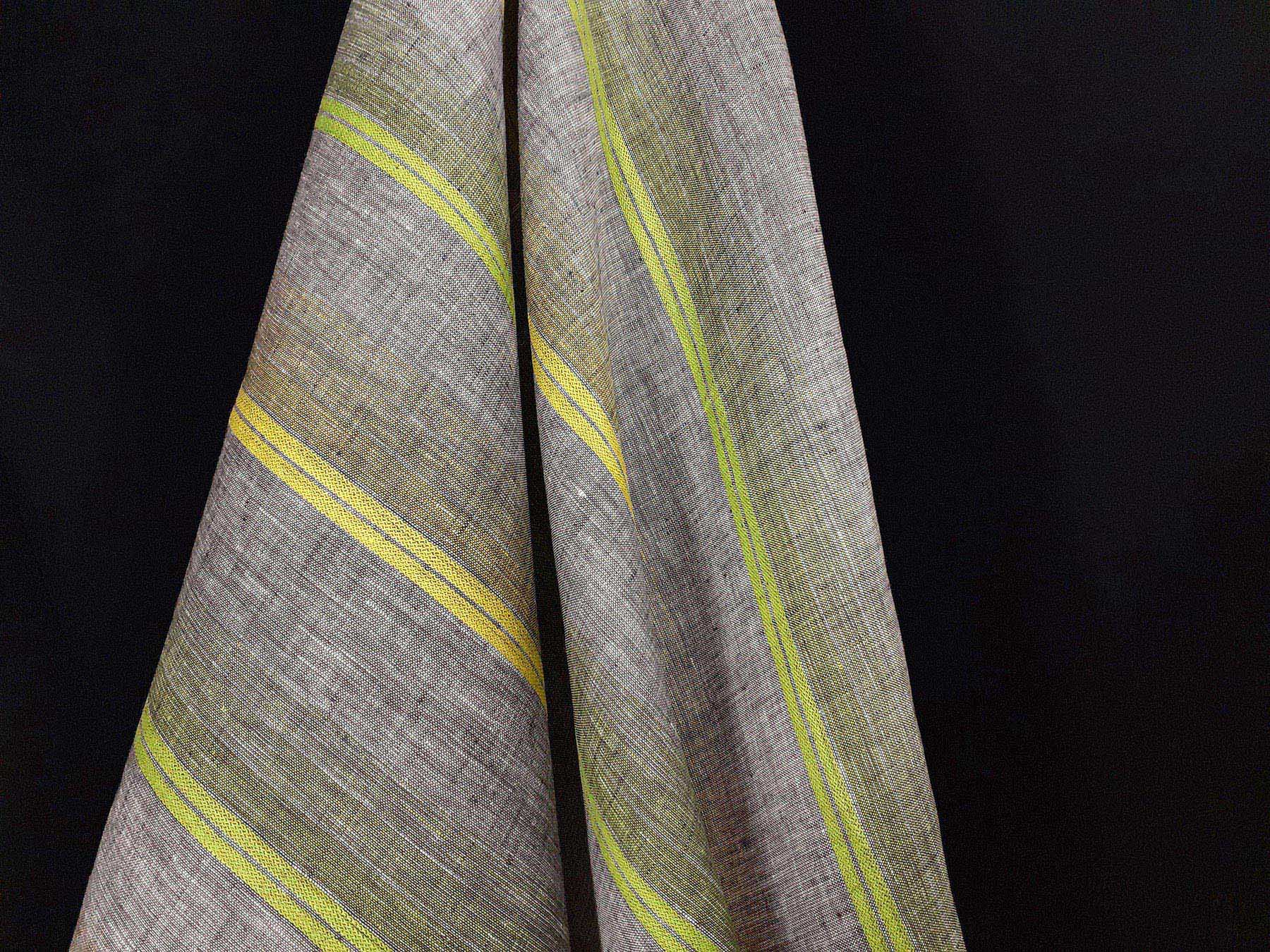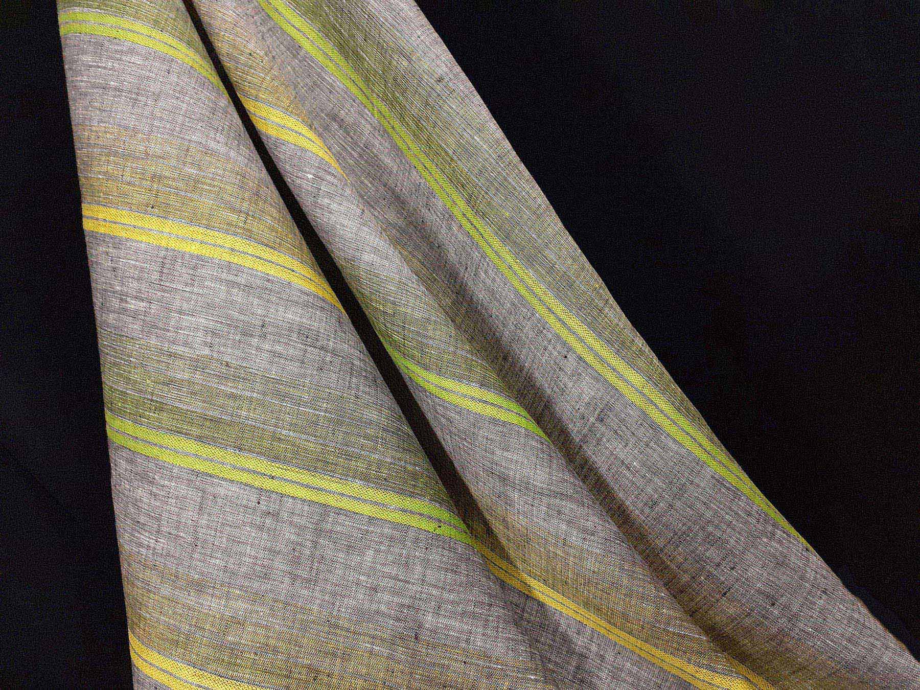 Tessuto per camicie in puro lino a righe giallo e verde su fondo grigio