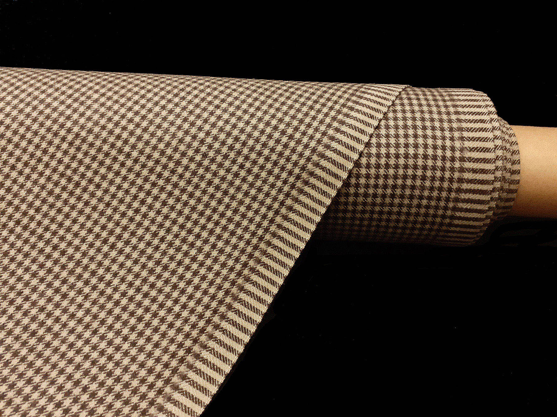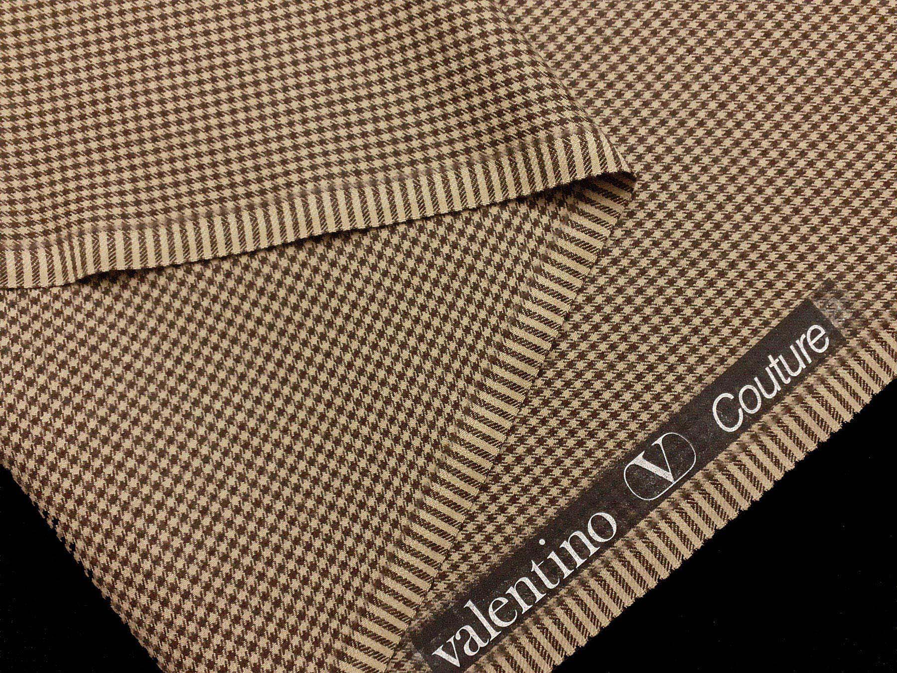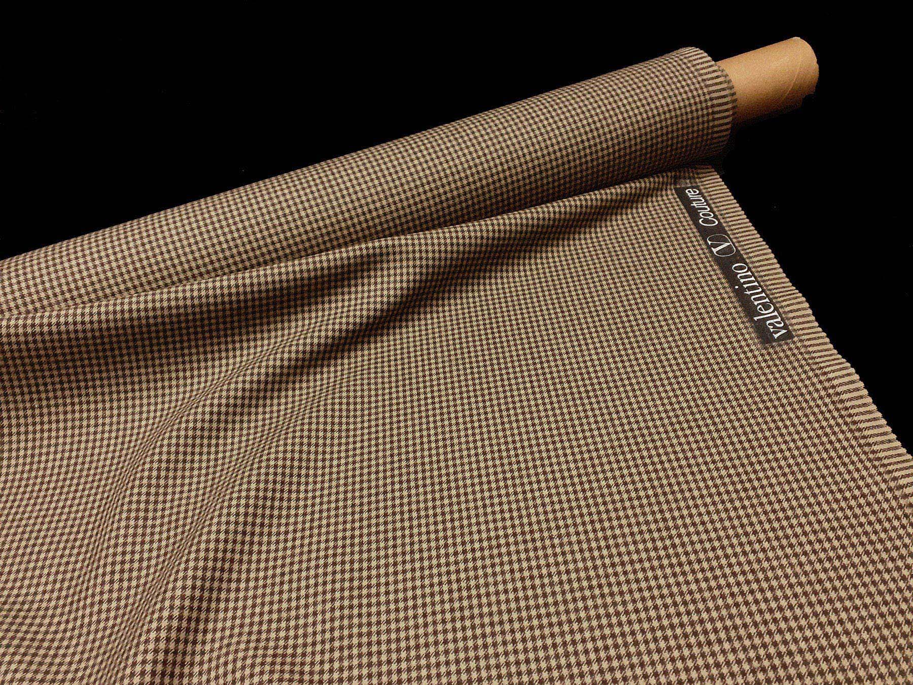 Tessuto in lana merino a quadrettini marrone e beige. Valentino Couture
