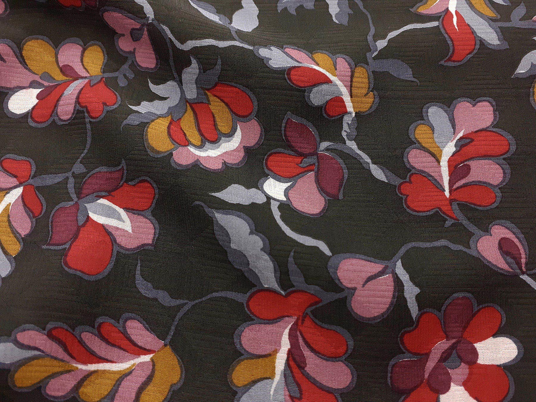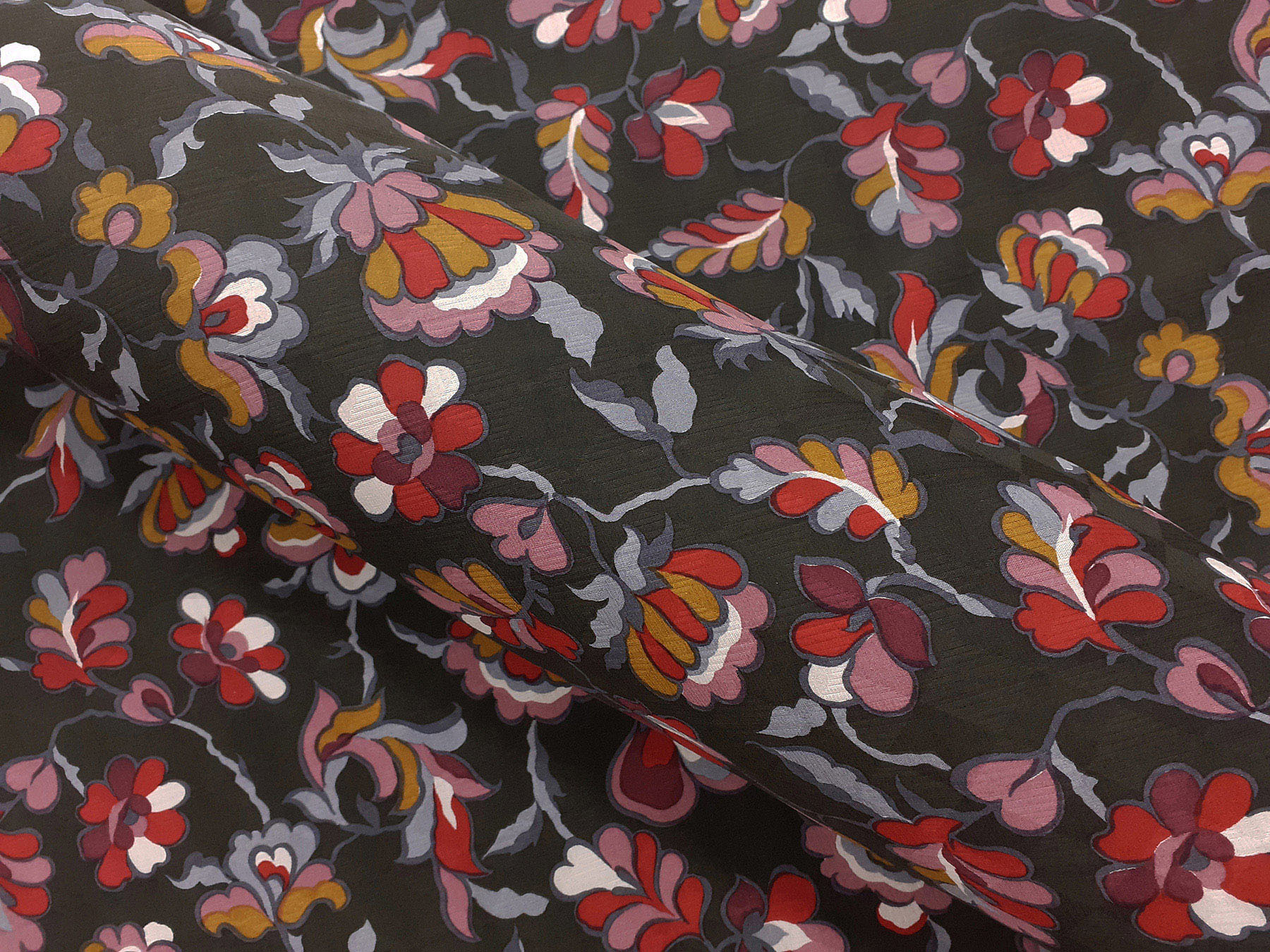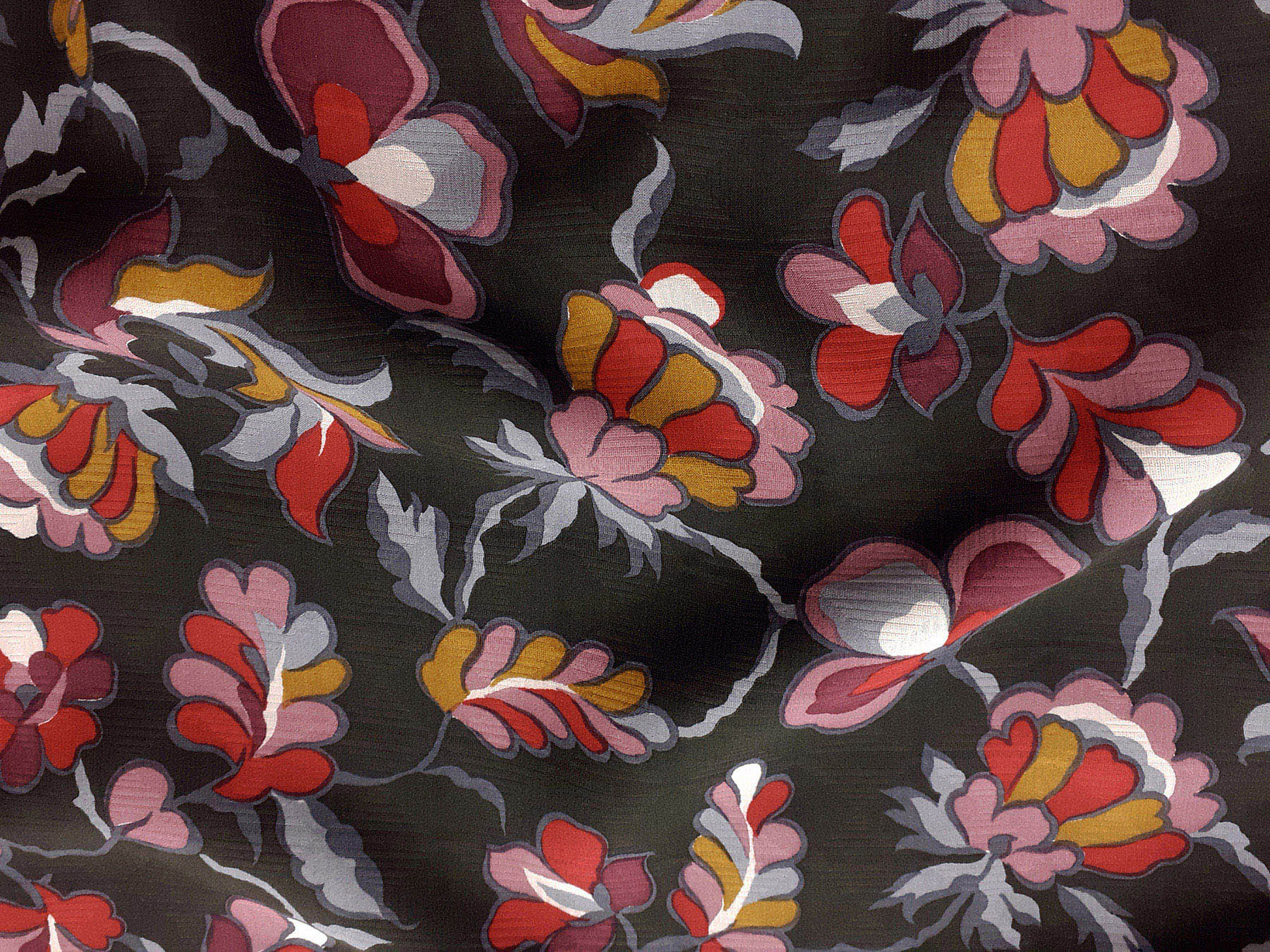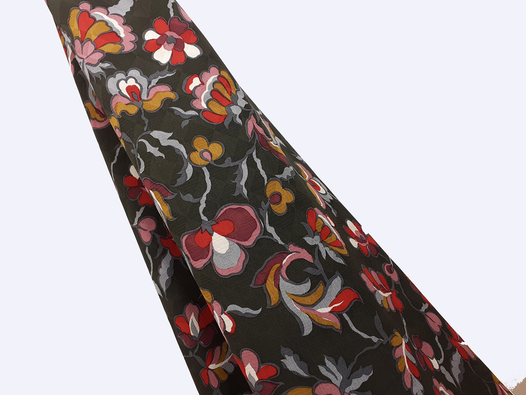 La georgette in seta pura, prodotta a Como, è un tessuto leggero, semi-trasparente, con superficie crespa. La georgette ha un bellissimo drappeggio ed è utilizzabile per la realizzazione di abiti anche a più strati, sovrapposizioni, camicie ed accessori come sciarpe e stole.