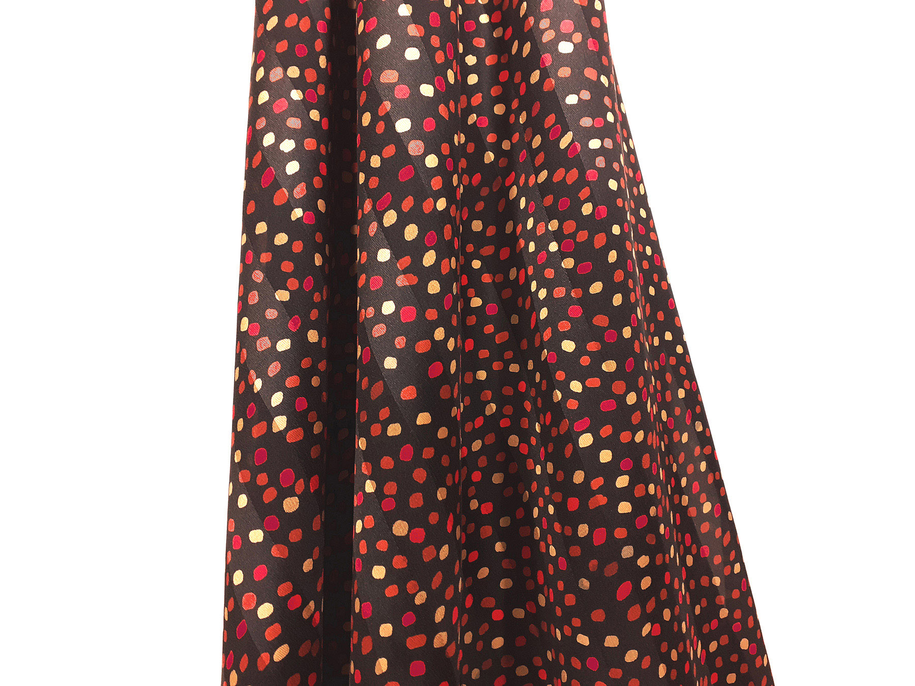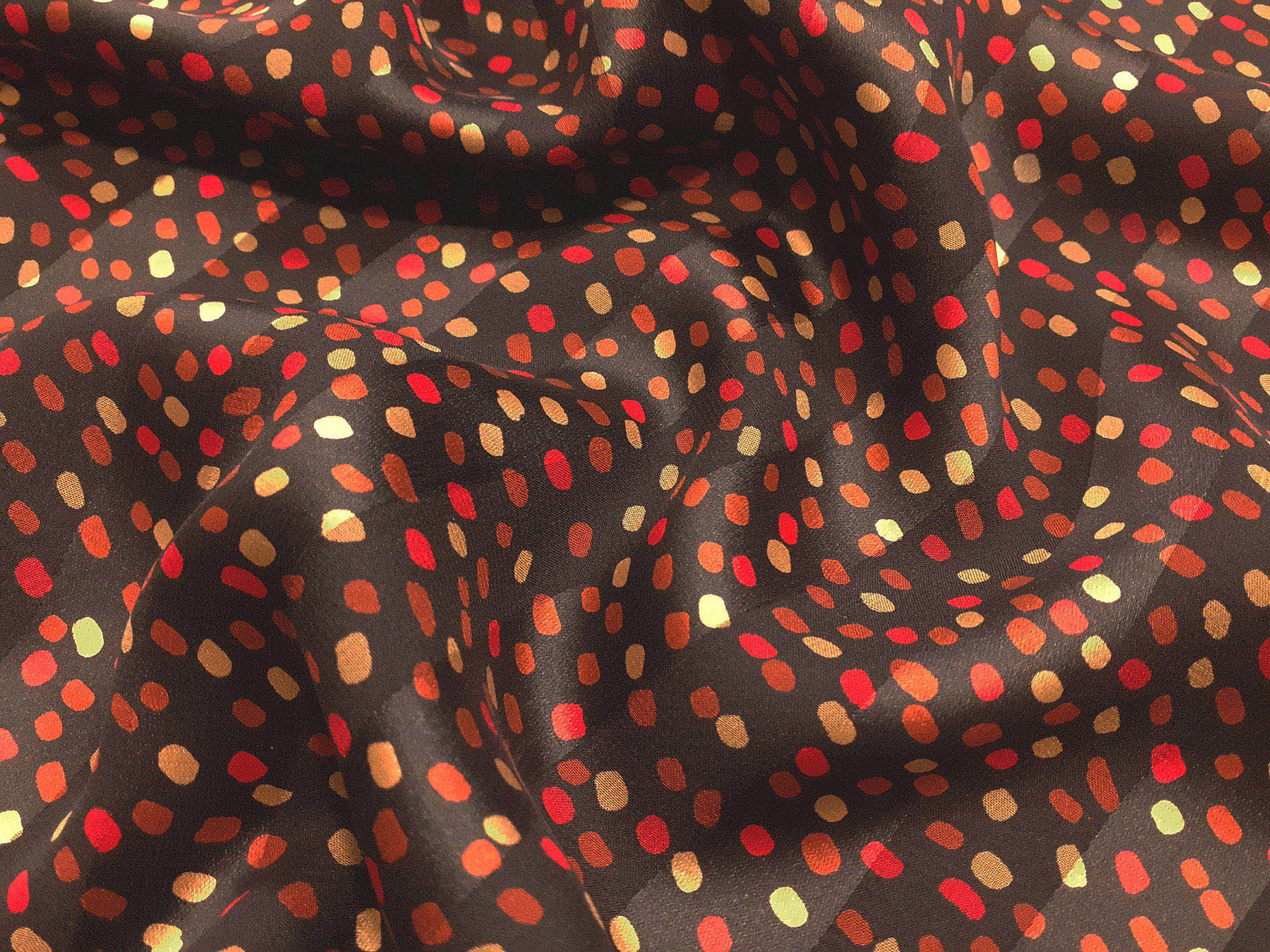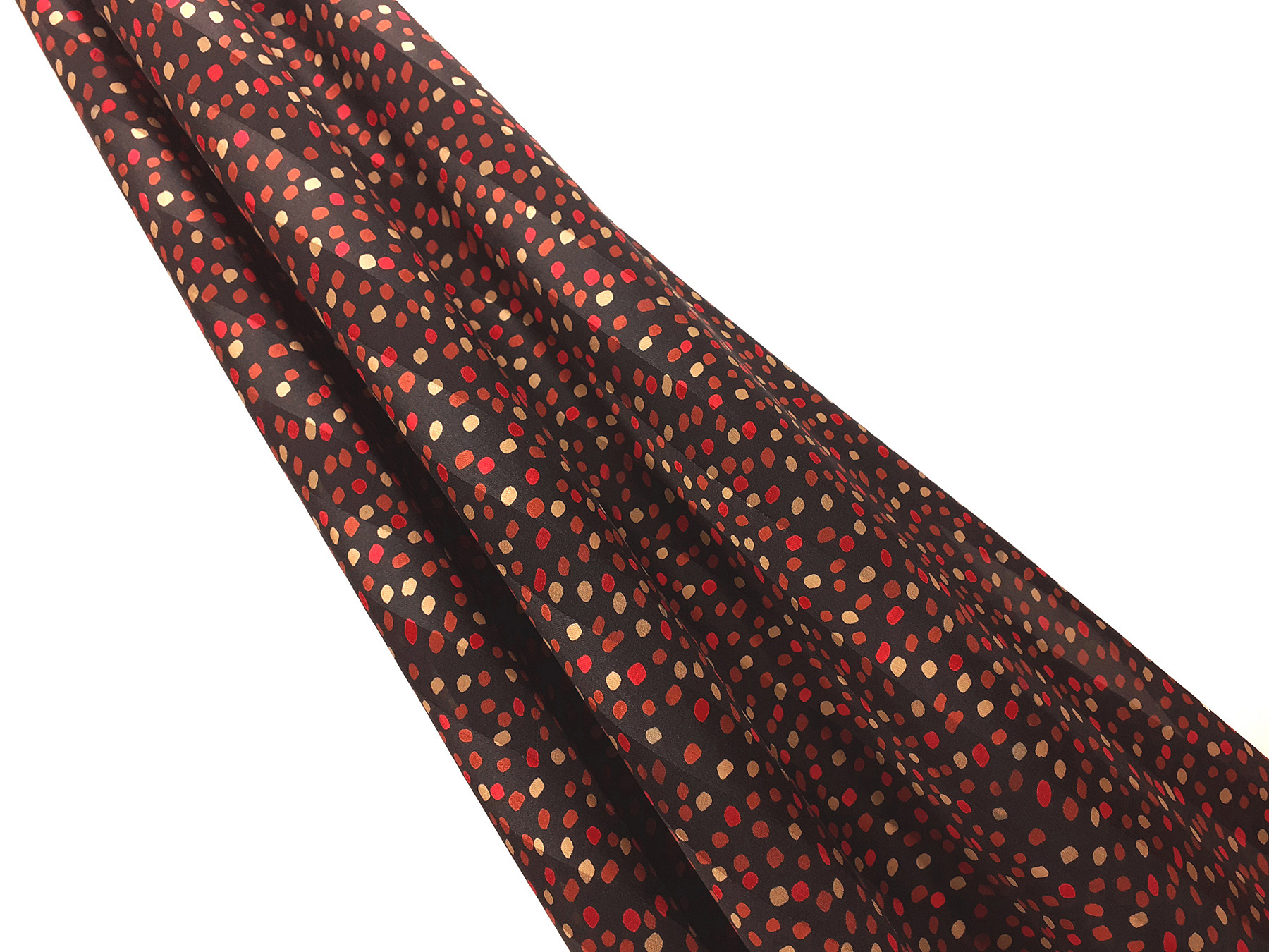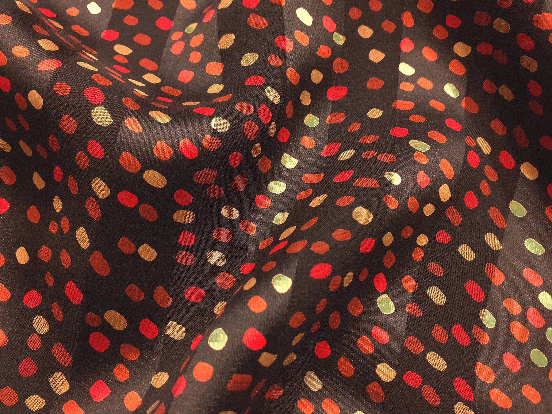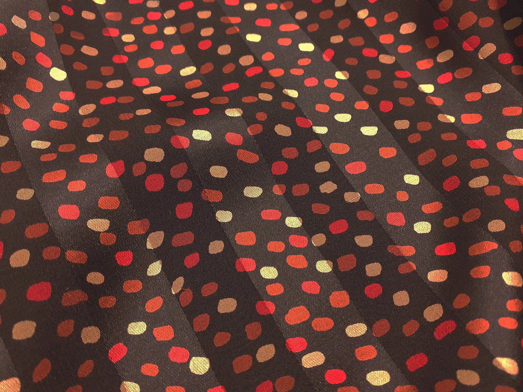 Georgette in seta con righe in raso pois irregolari su fondo nero