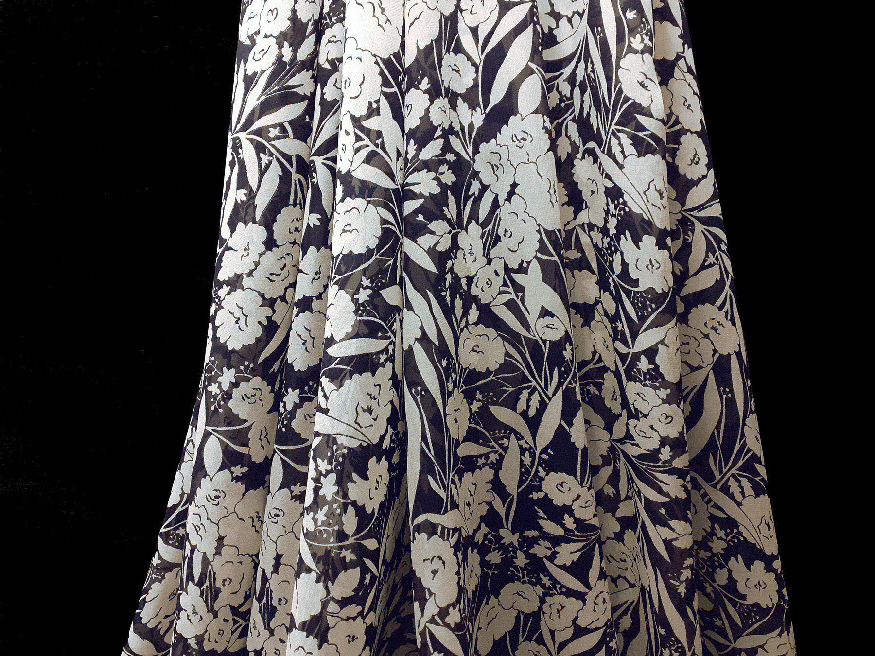 La georgette in seta pura, prodotta a Como, è un tessuto leggero, semi-trasparente, con superficie crespa. La georgette ha un bellissimo drappeggio ed è utilizzabile per la realizzazione di abiti anche a più strati, sovrapposizioni, camicie ed accessori come sciarpe e stole.