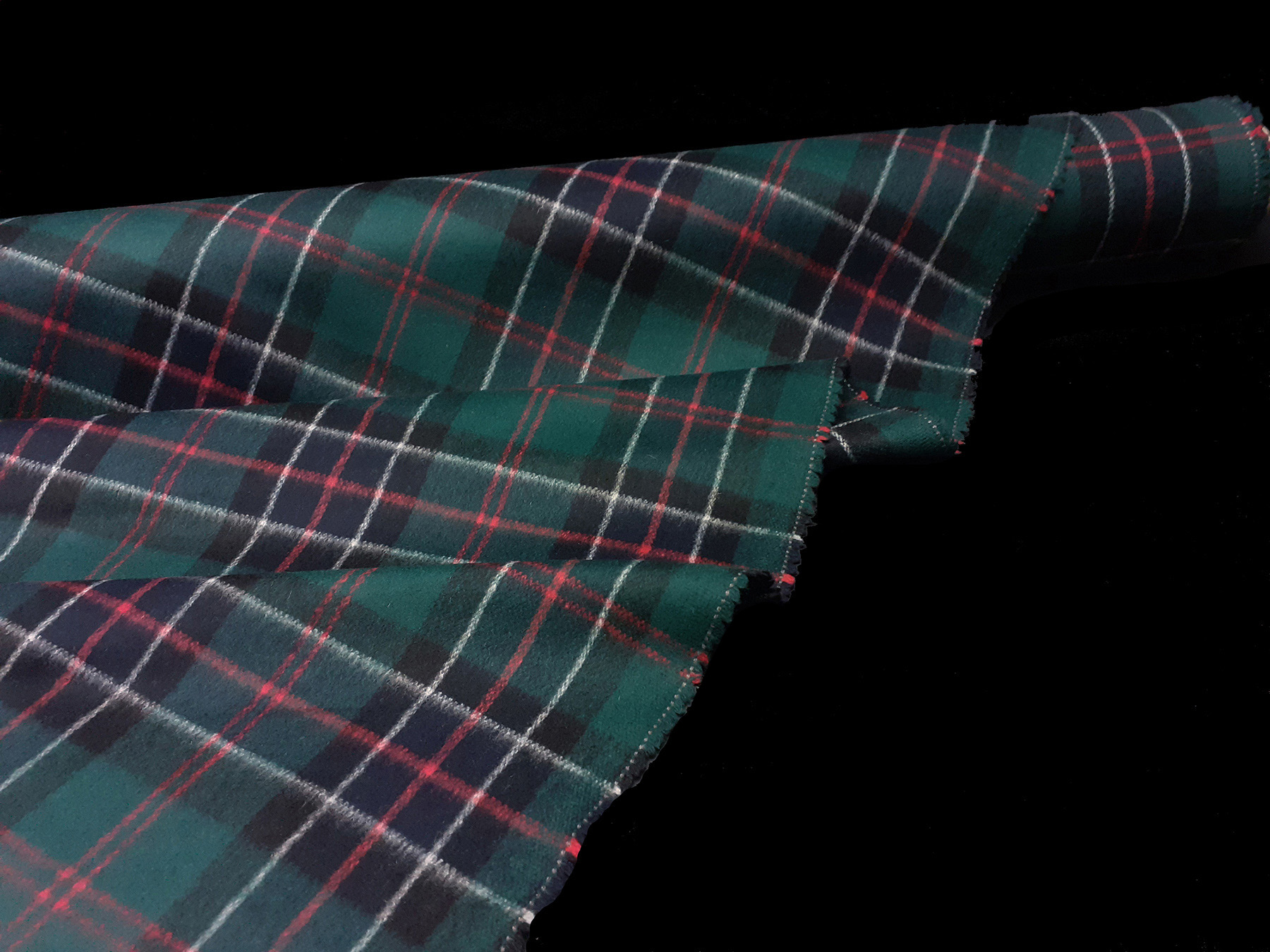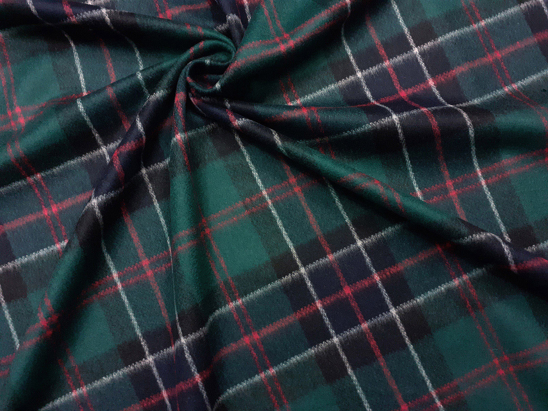 Tessuto Drap in lana disegno scozzese verde e nero