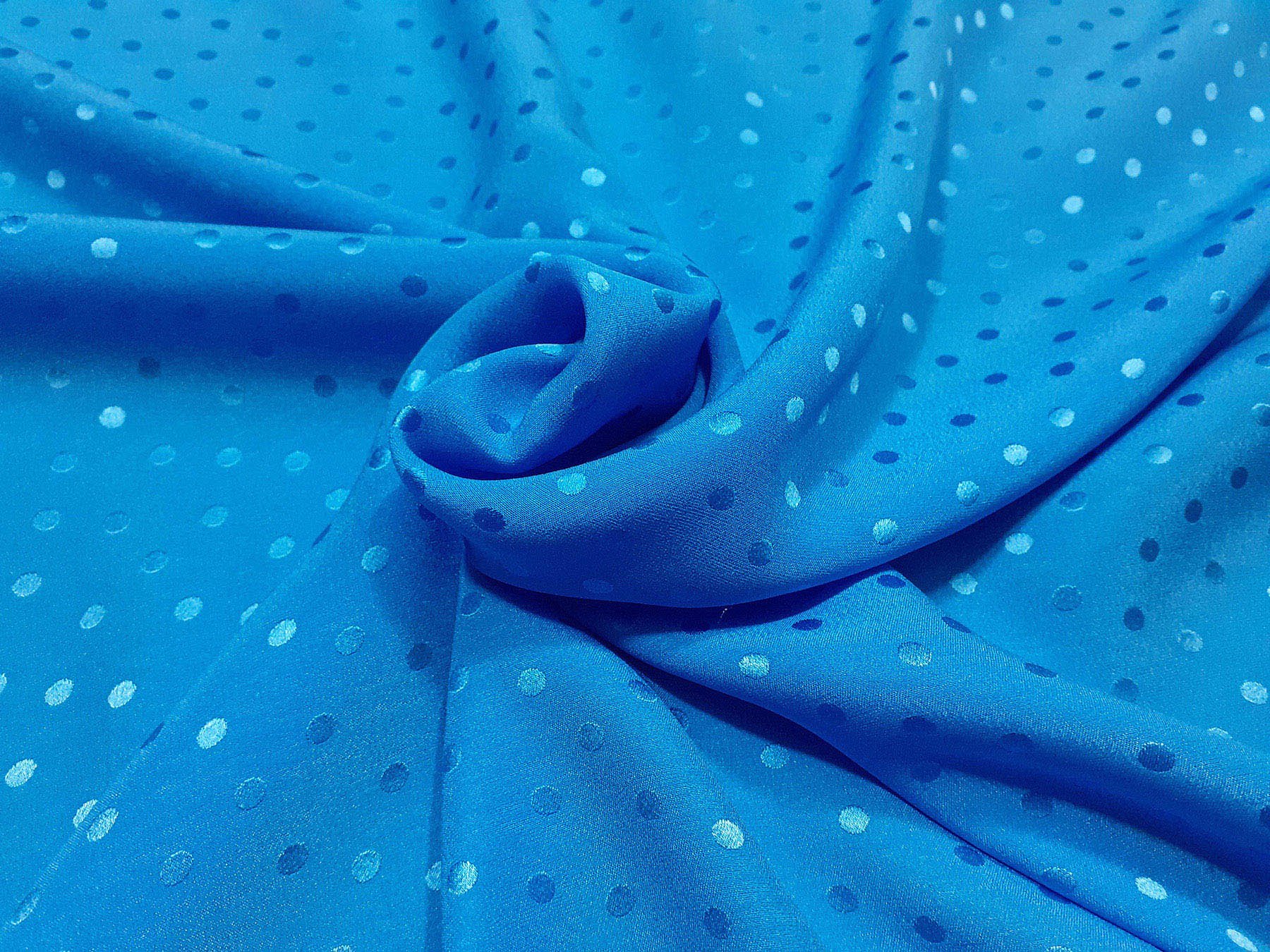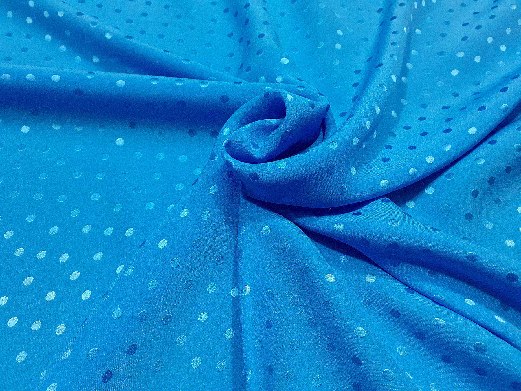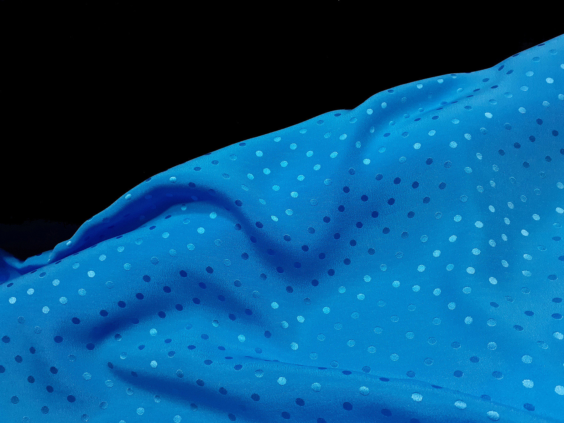 In questo tessuto di seta pura, prodotto a Como, la lavorazione jacquard con il contrasto fra lucido e opaco, crea un piacevole effetto di tridimensionalità. Perfetto per la realizzazione di abiti ampi e sinuosi, grazie alla sua morbidezza e caduta, può essere utilizzato anche per capi più lineari che mettono in evidenza la ricchezza e la particolarità di questo tipo di tessuto.