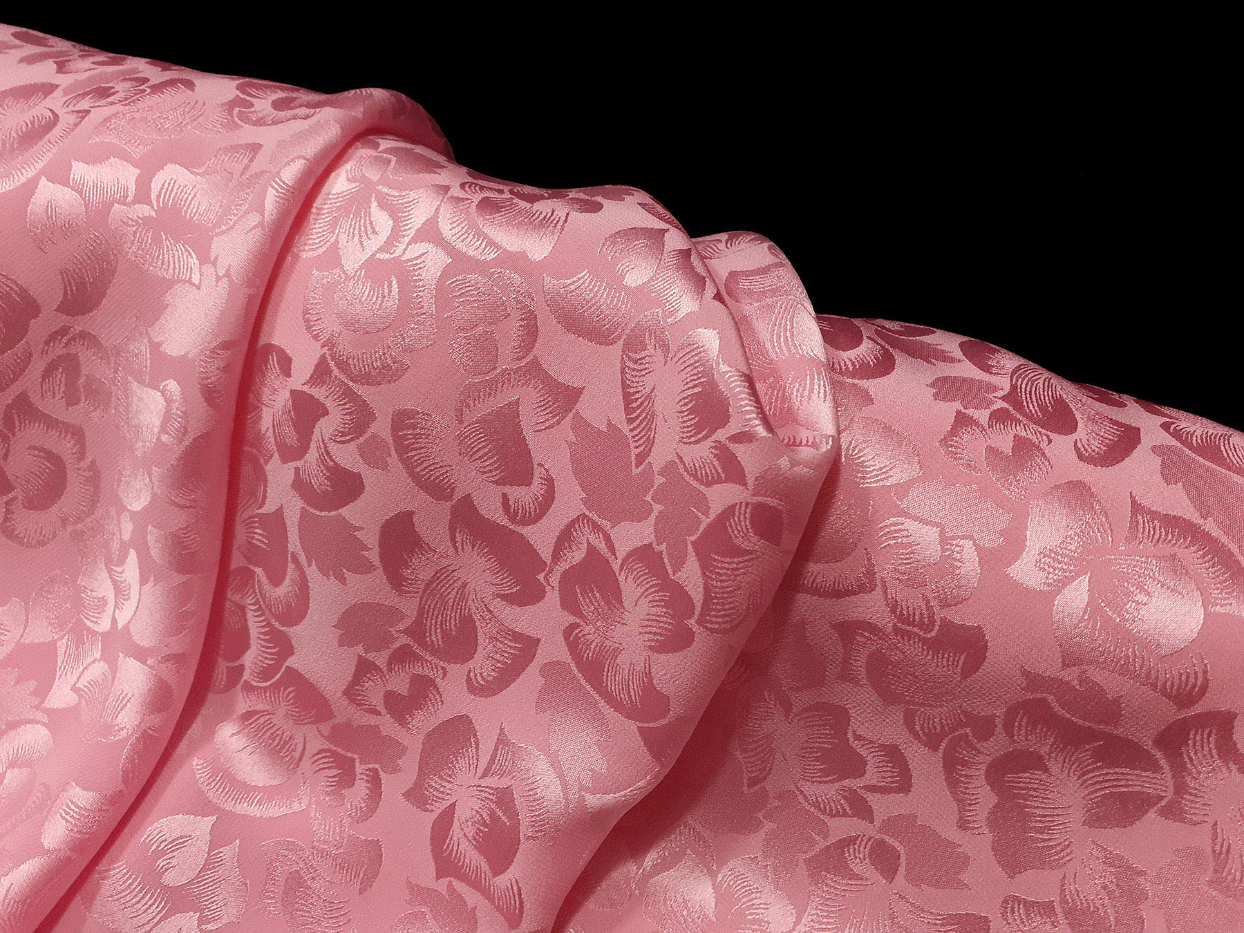 In questo tessuto di seta pura, prodotto a Como, la lavorazione jacquard con il contrasto fra lucido e opaco, crea un piacevole effetto di tridimensionalità. Perfetto per la realizzazione di abiti ampi e sinuosi, grazie alla sua morbidezza e caduta, può essere utilizzato anche per capi più lineari che mettono in evidenza la ricchezza e la particolarità di questo tipo di tessuto.