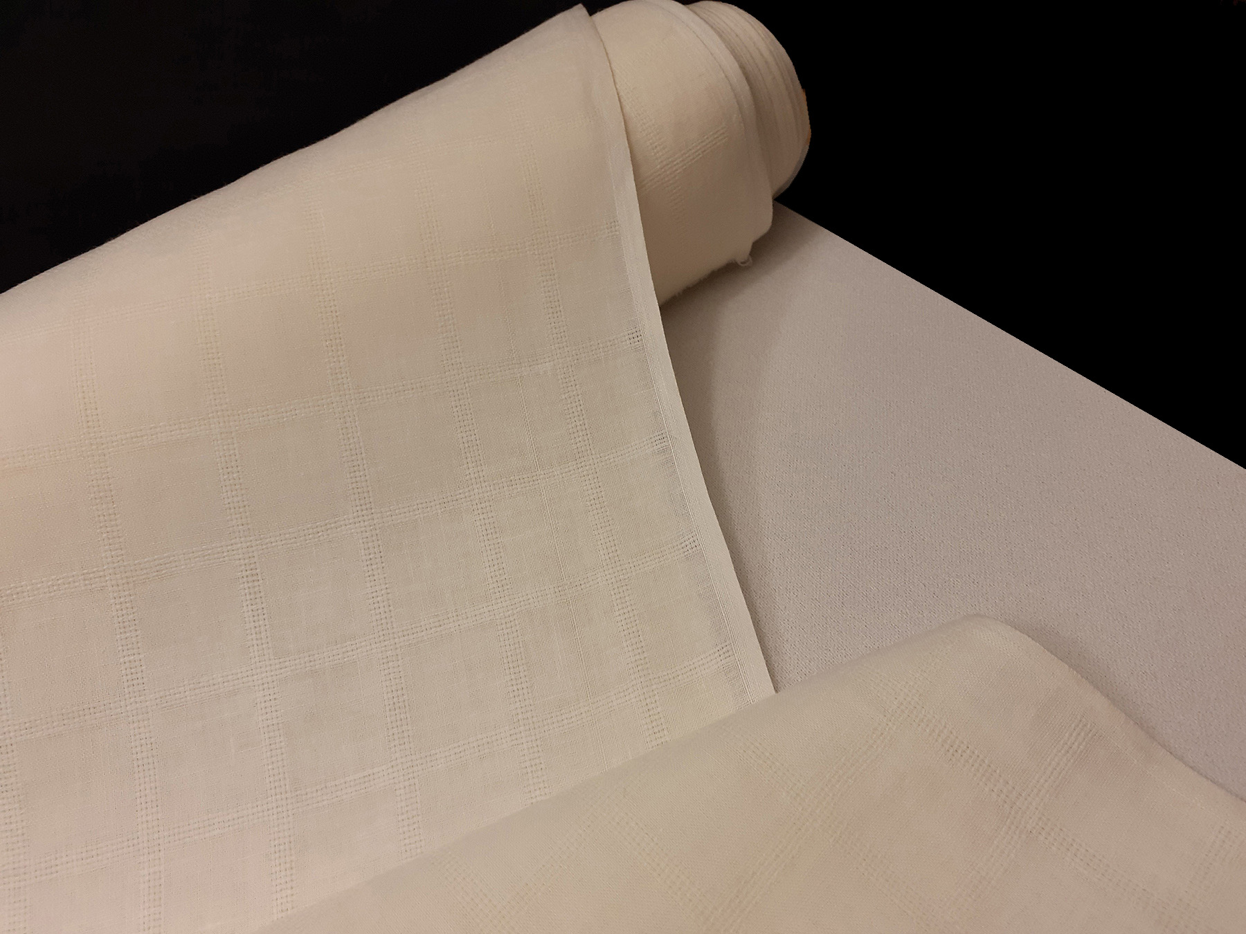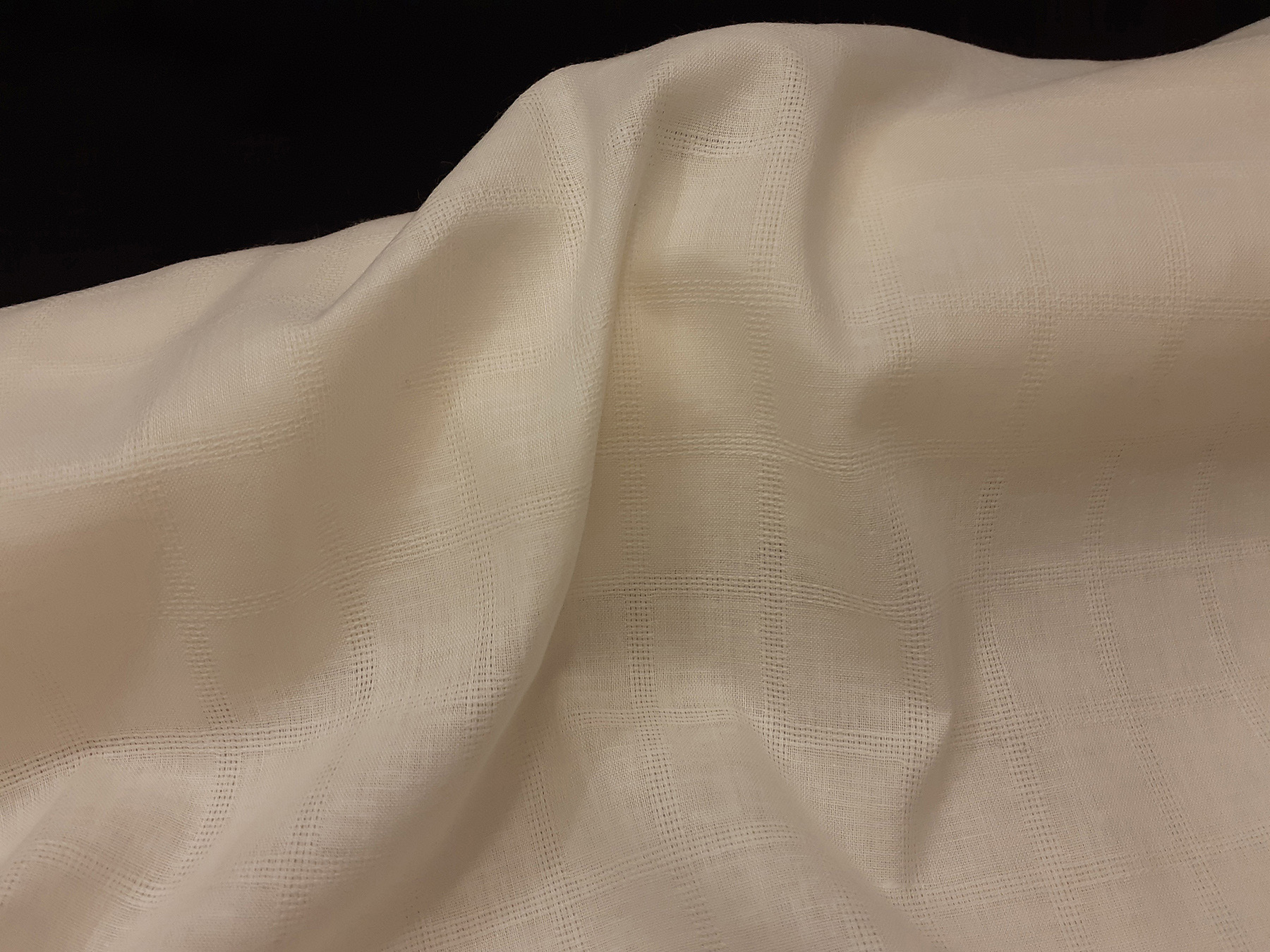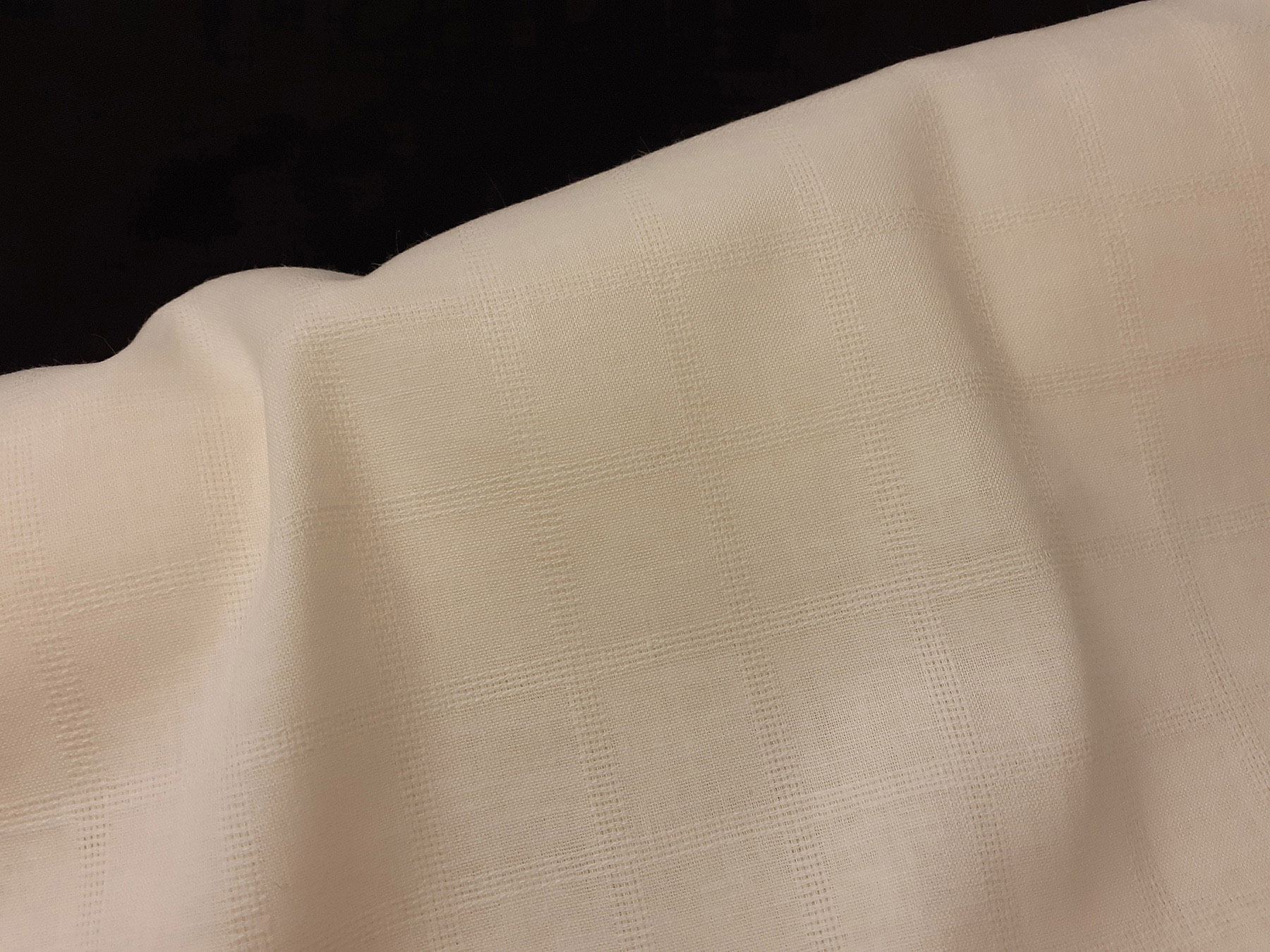 Tessuto di medio peso in cotone. Ha mano morbida e aspetto lucente. La quadrettatura è evidenziata da una tessitura “a jour”. Perfetto per realizzare camicie