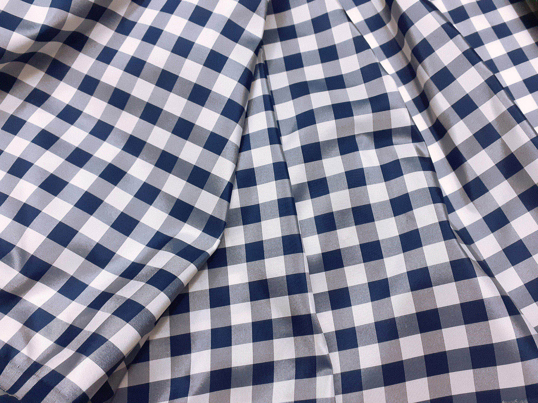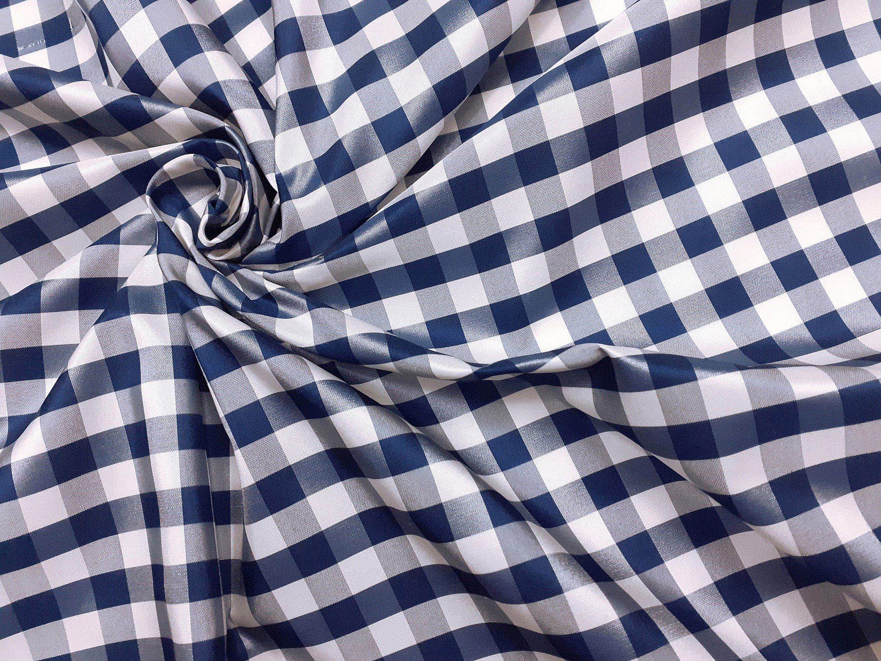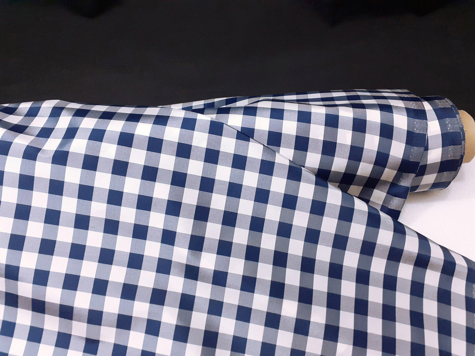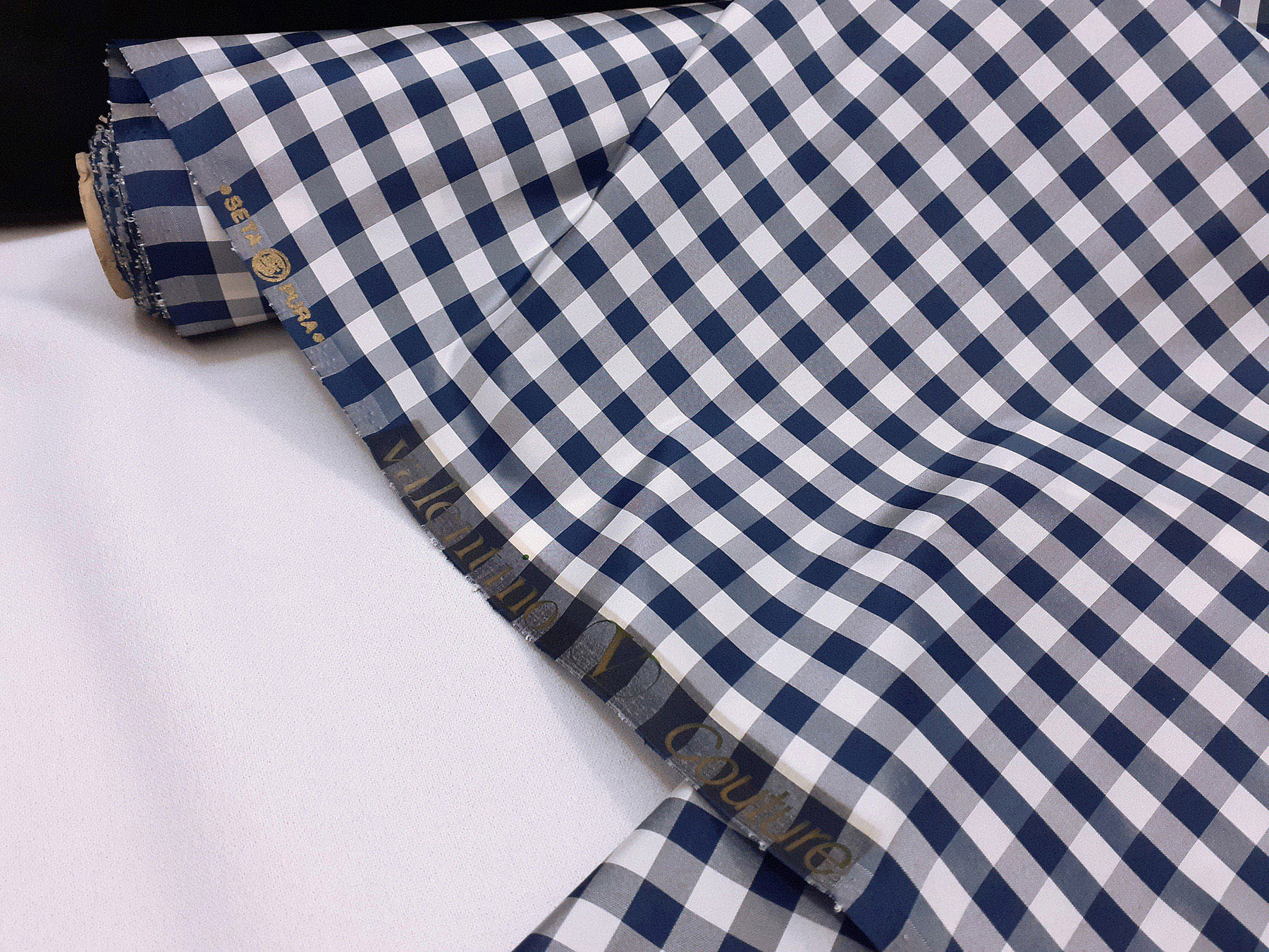 Seta taffetà tinta in filo a quadretti bianco e blu. Valentino Couture