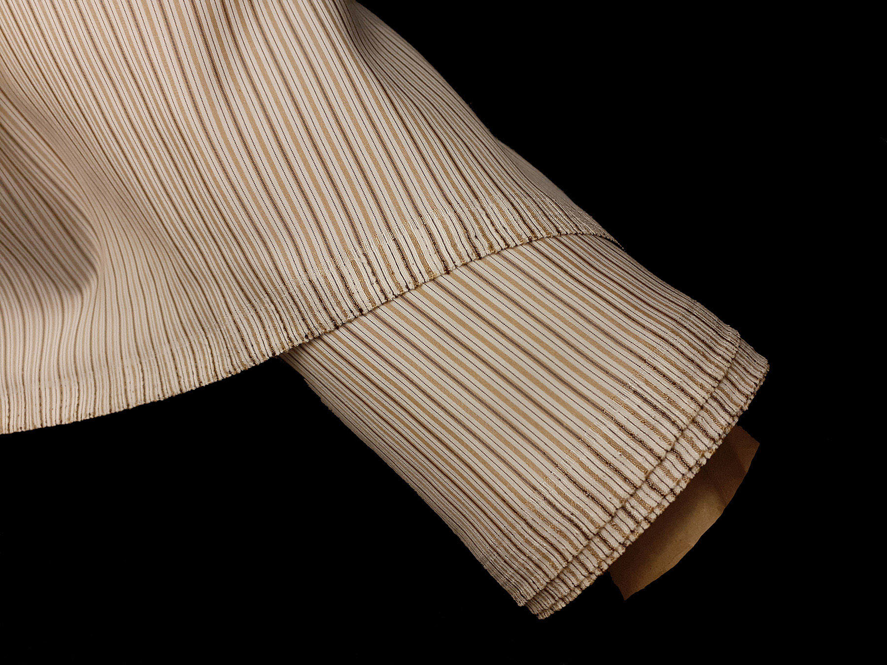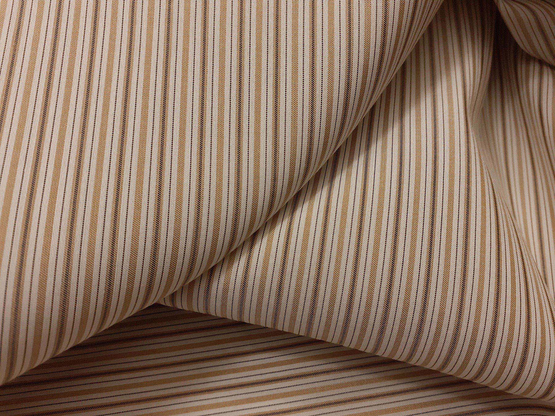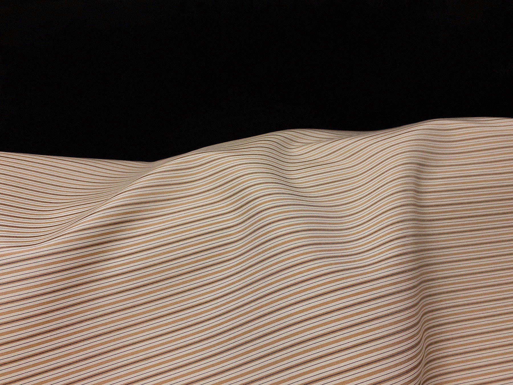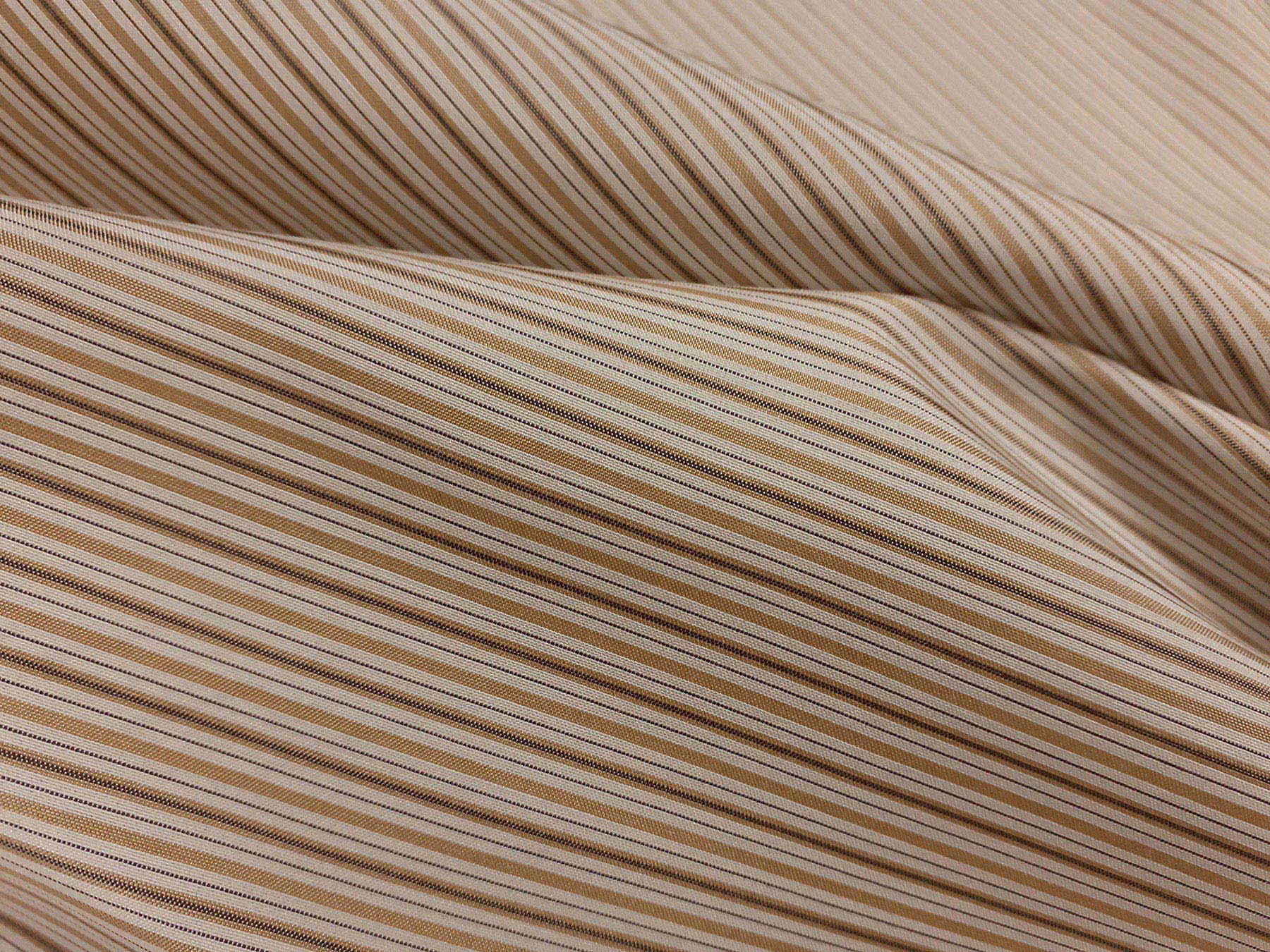 Seta per camicie tinta in filo a righe beige e marrone su fondo avorio