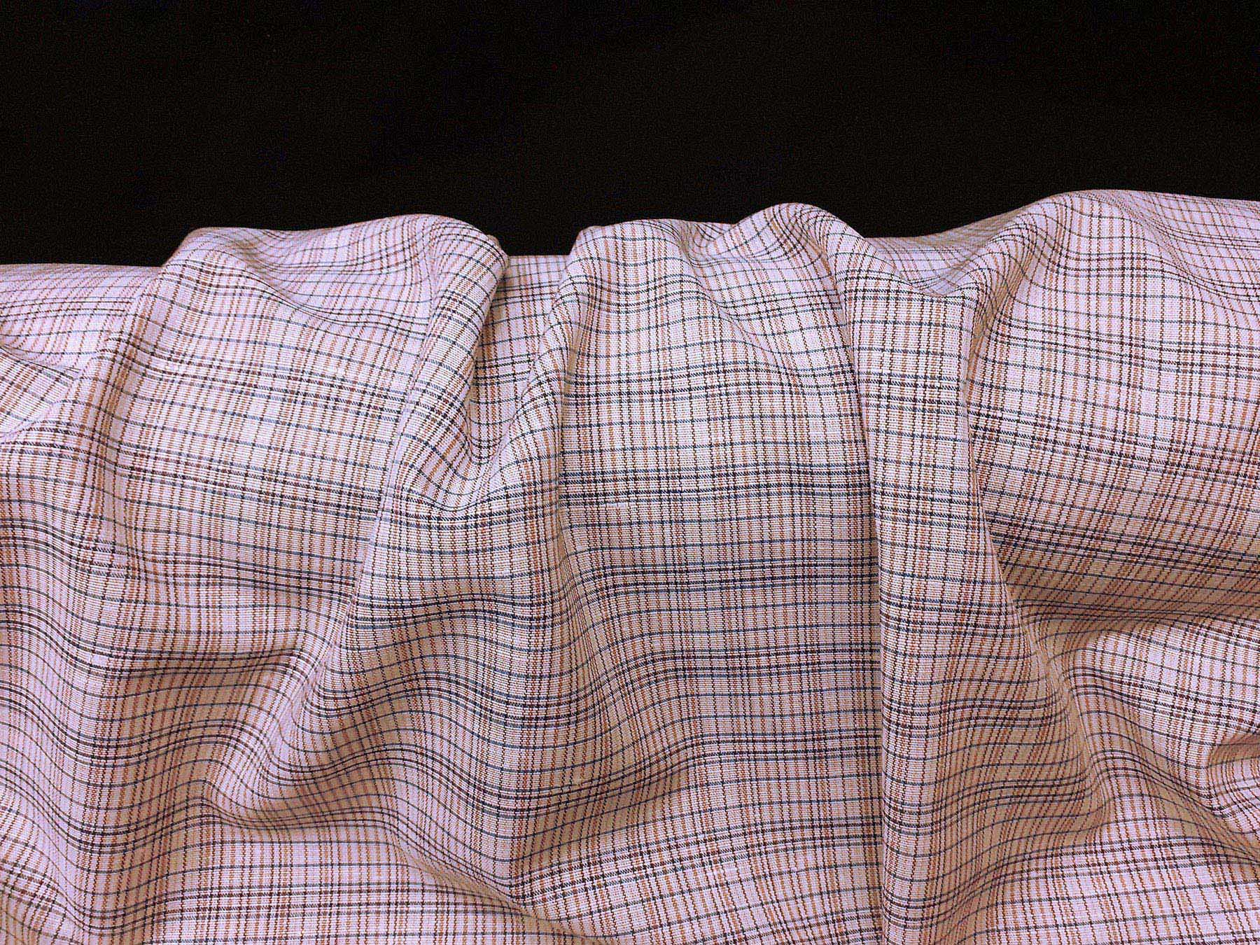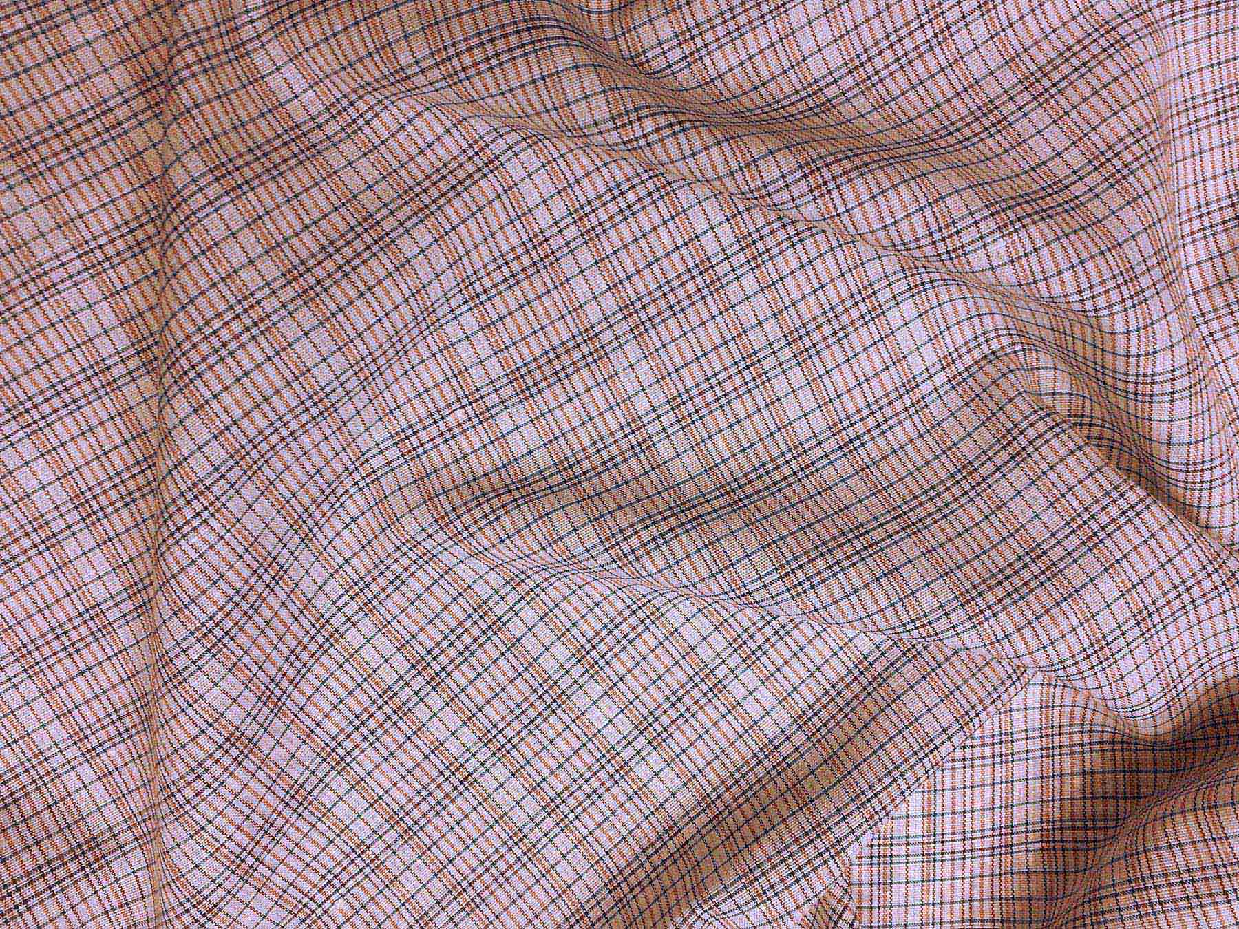 Tessuto lino e cotone a quadretti e righe multicolori su fondo bianco.
