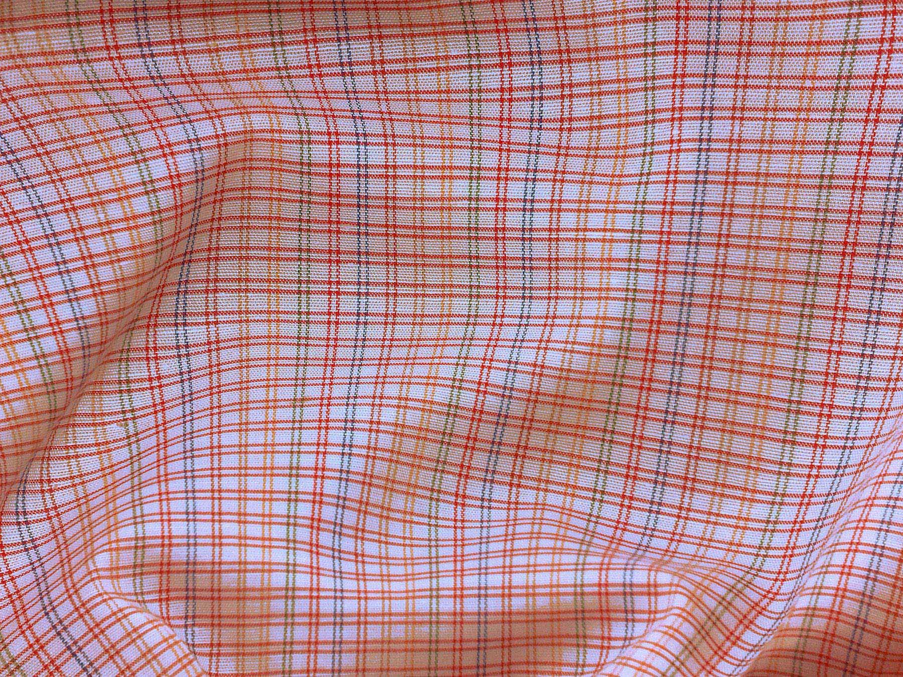 Tessuto lino e cotone a quadretti e righe multicolori su fondo bianco.
