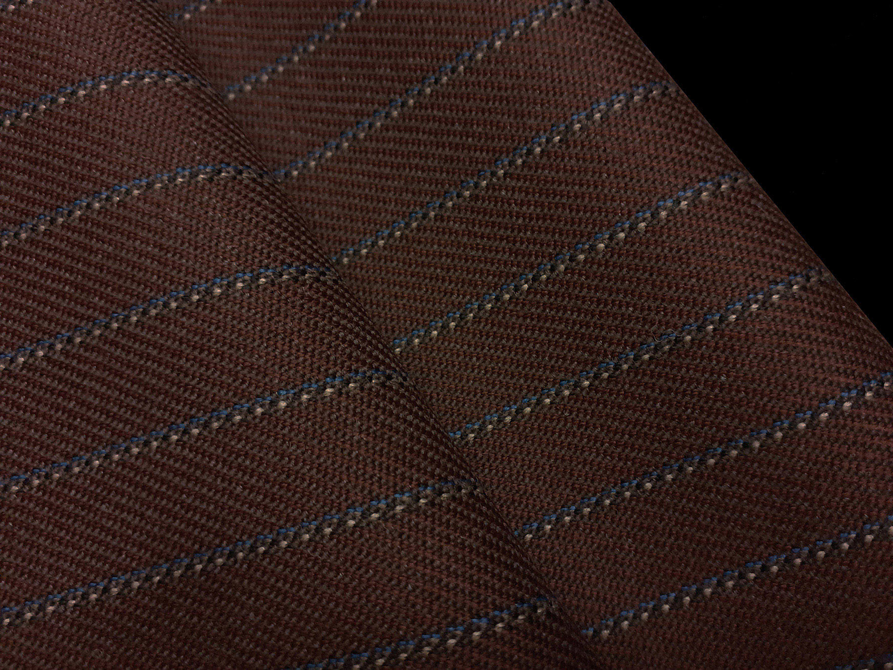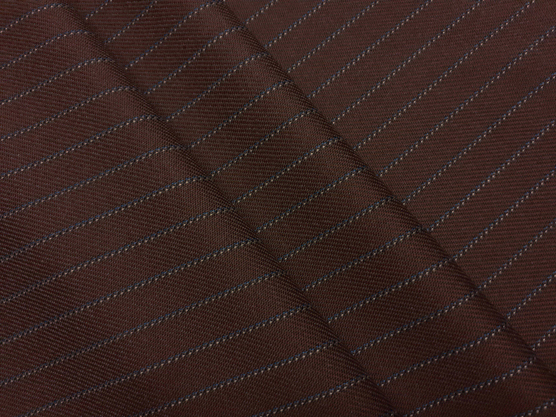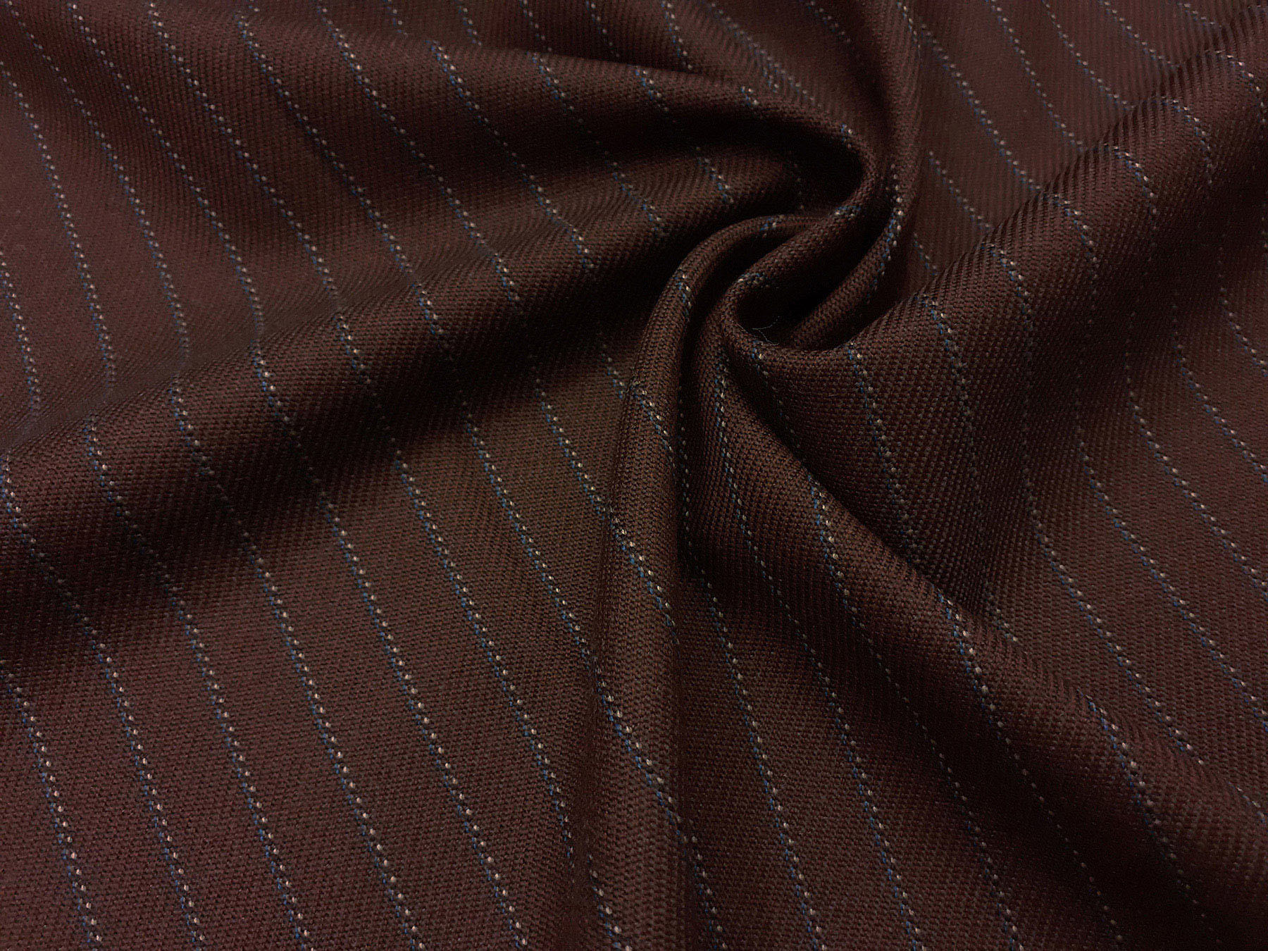 Tessuto in lana merino per giacconi a righe blu fondo marrone cacao
