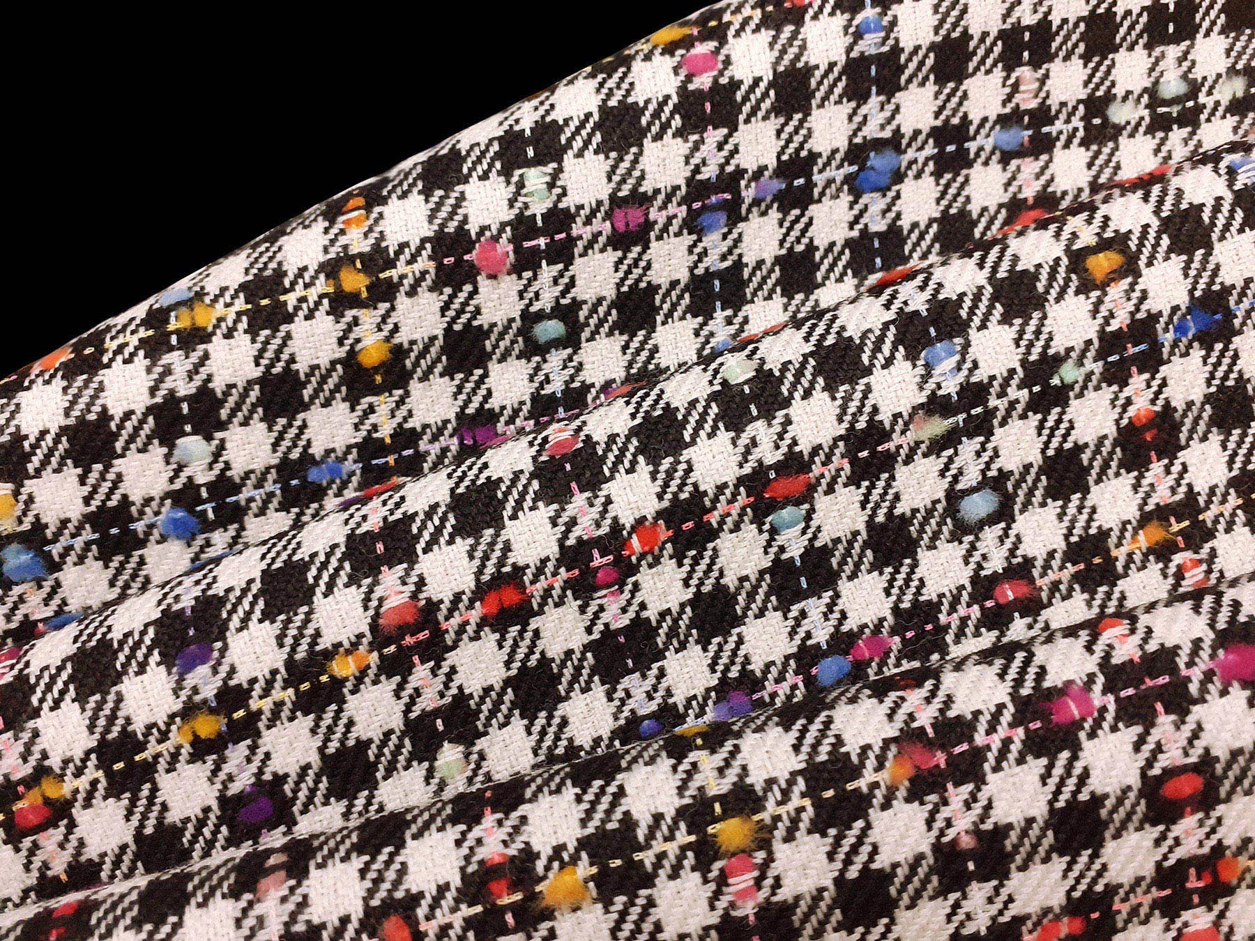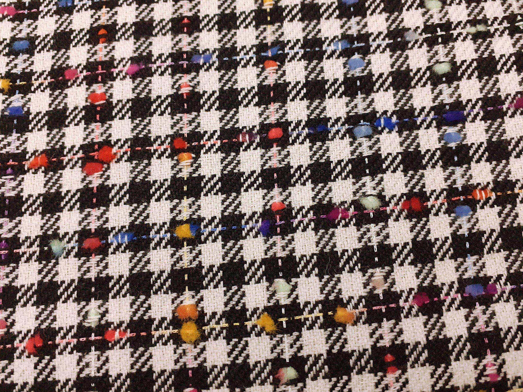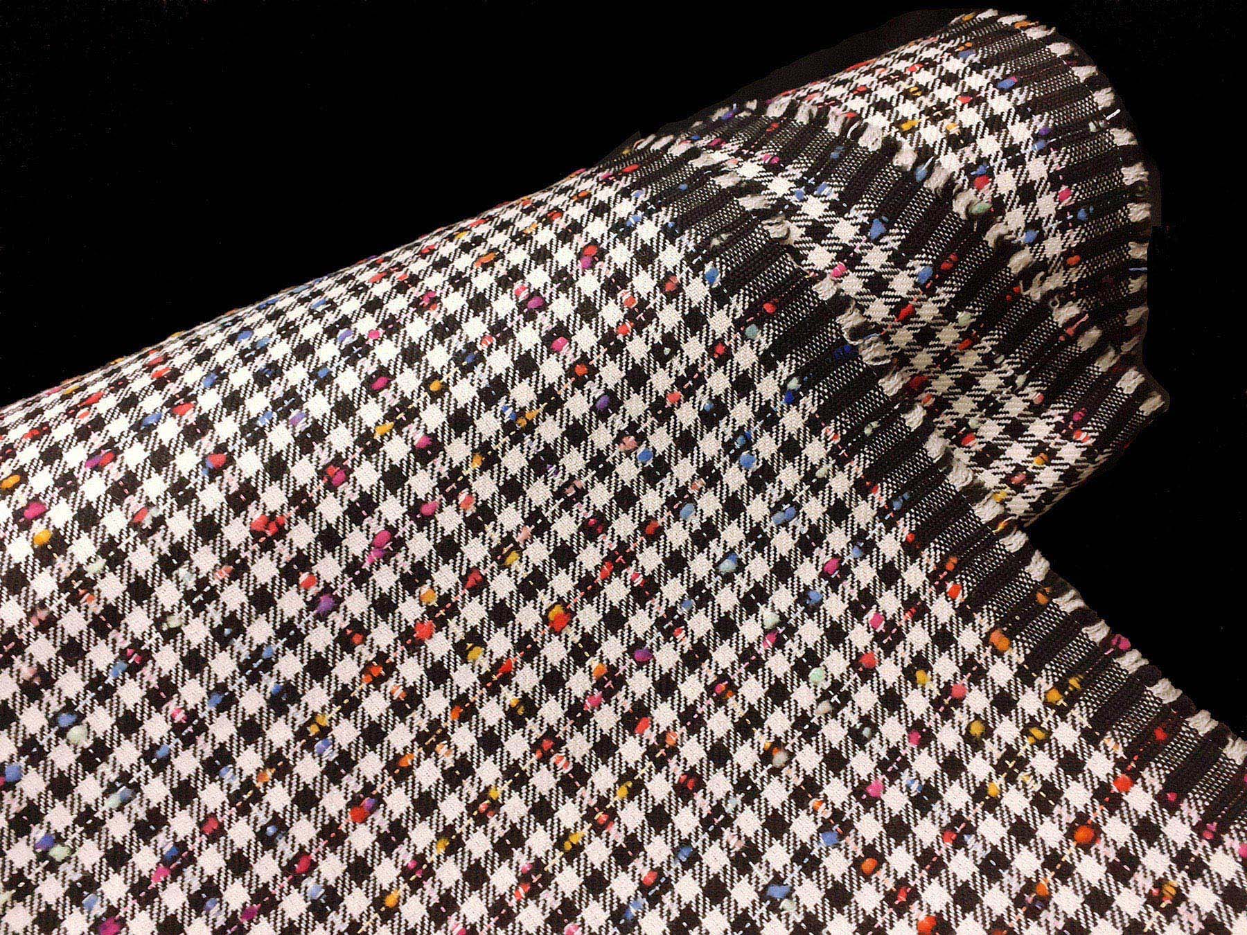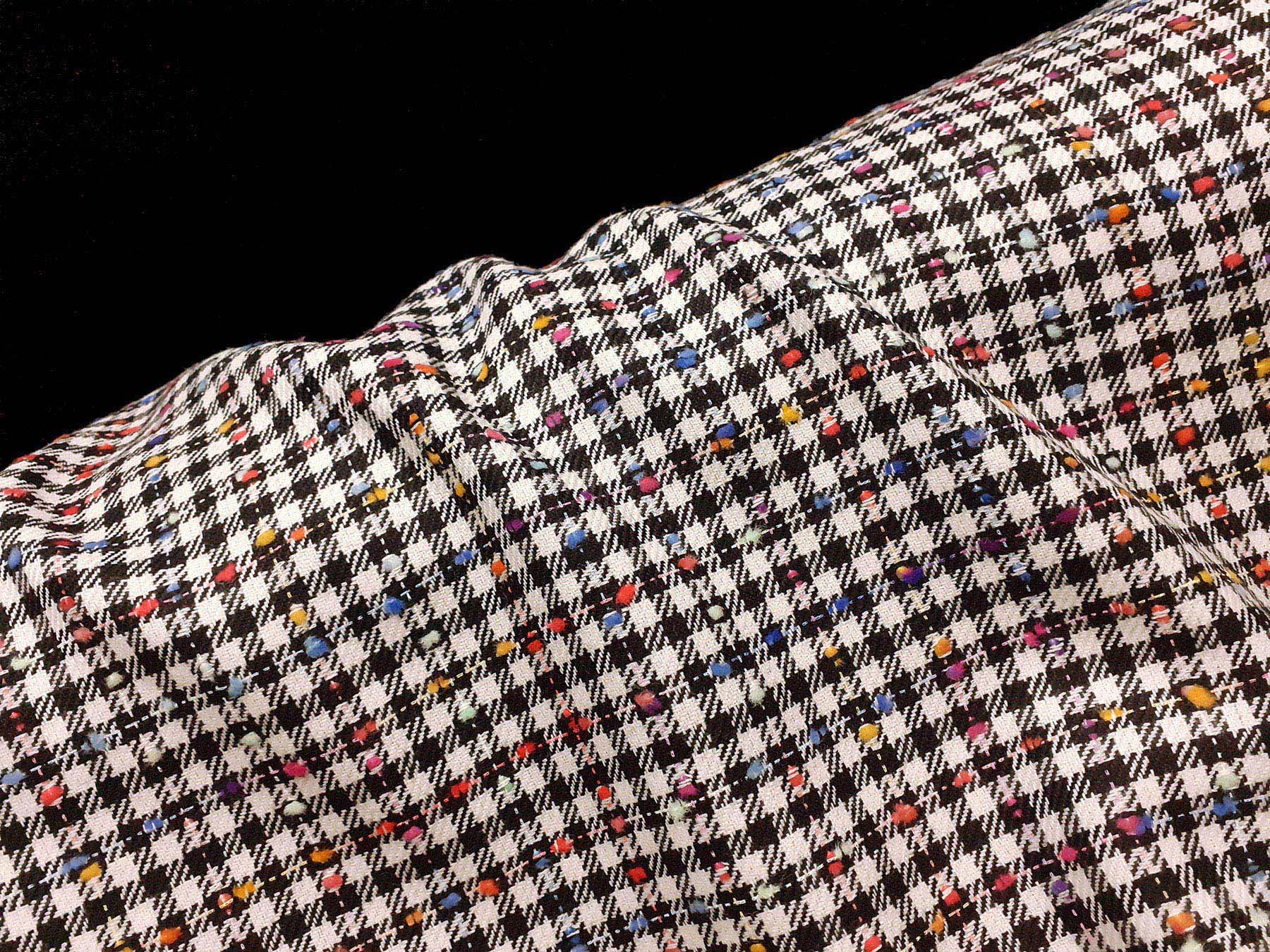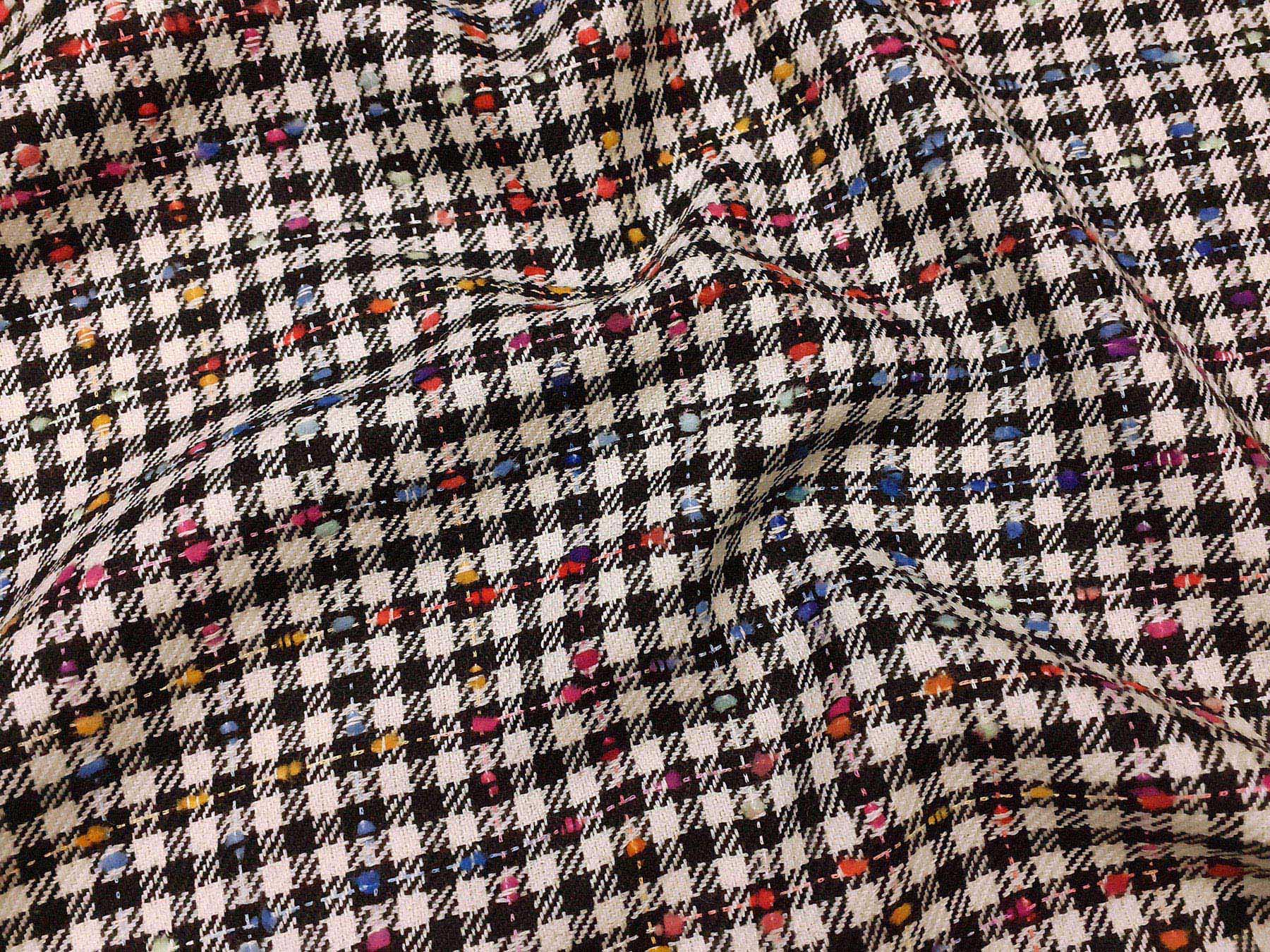 Tessuto in lana merino effetto “tweed” su quadretti bianchi e neri