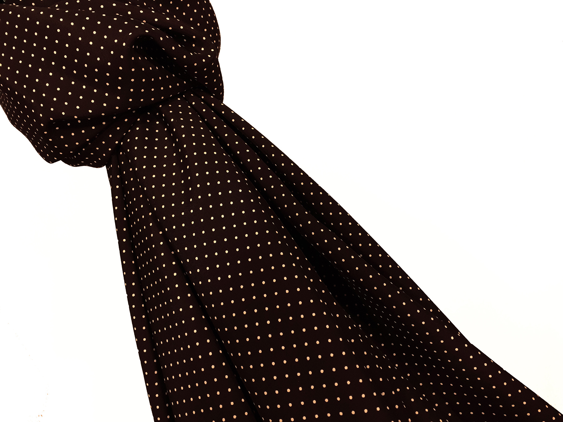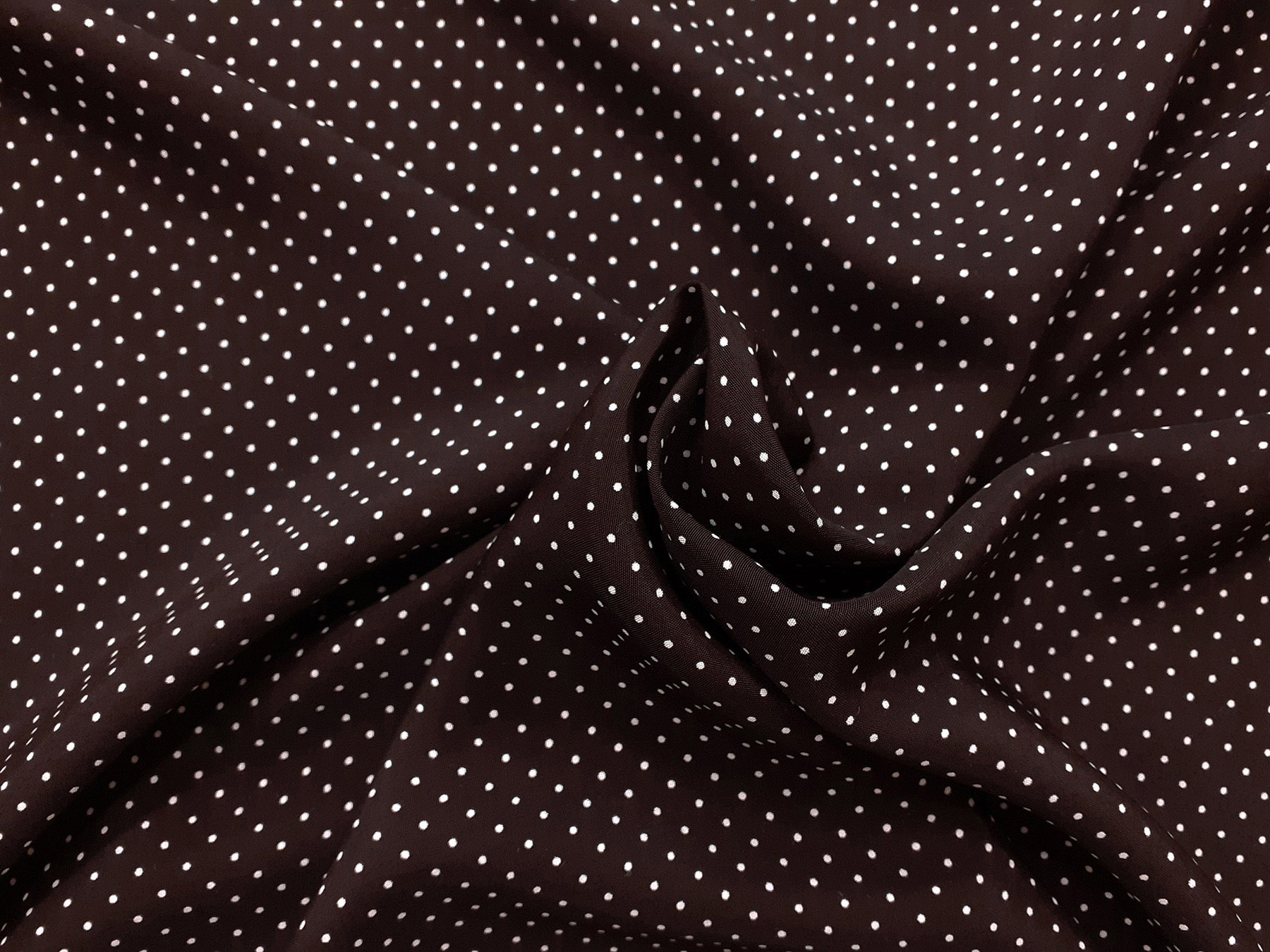 Tessuto in viscosa fantasia a pois fondo marrone