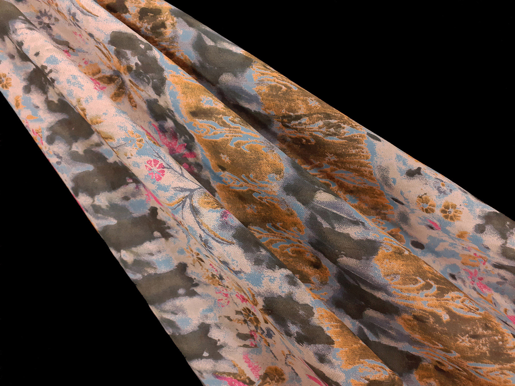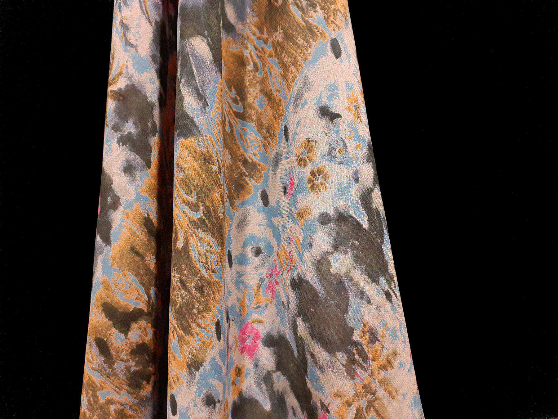 La georgette in viscosa, è un tessuto leggero, semi-trasparente, con superficie crespa. La georgette ha un bellissimo drappeggio ed è utilizzabile per la realizzazione di abiti anche a più strati e camicie. Si consiglia di bagnare il tessuto prima della confezione in quanto si restringe in modo sensibile.