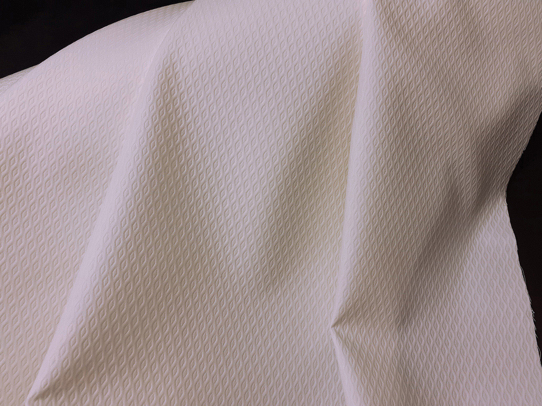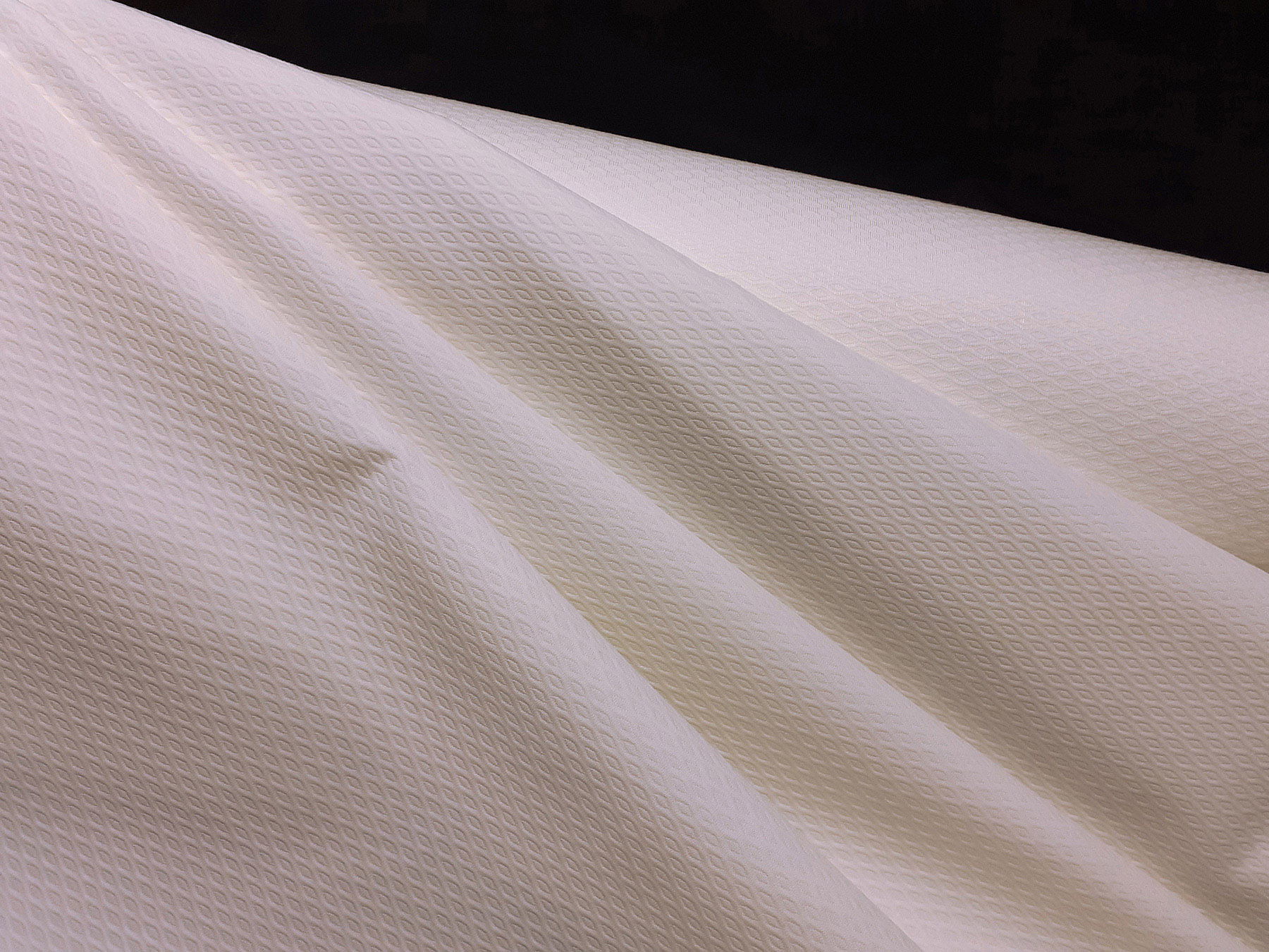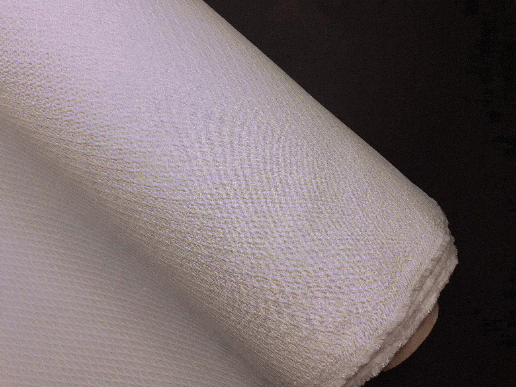 Questo tessuto Piquet con piccoli motivi in rilievo a rombi è stato realizzato in puro cotone mercerizzato e ritorto. Di peso sostenuto è indicato nella realizzazione di capi spalla per donna, ma anche per abiti diritti e gonne.