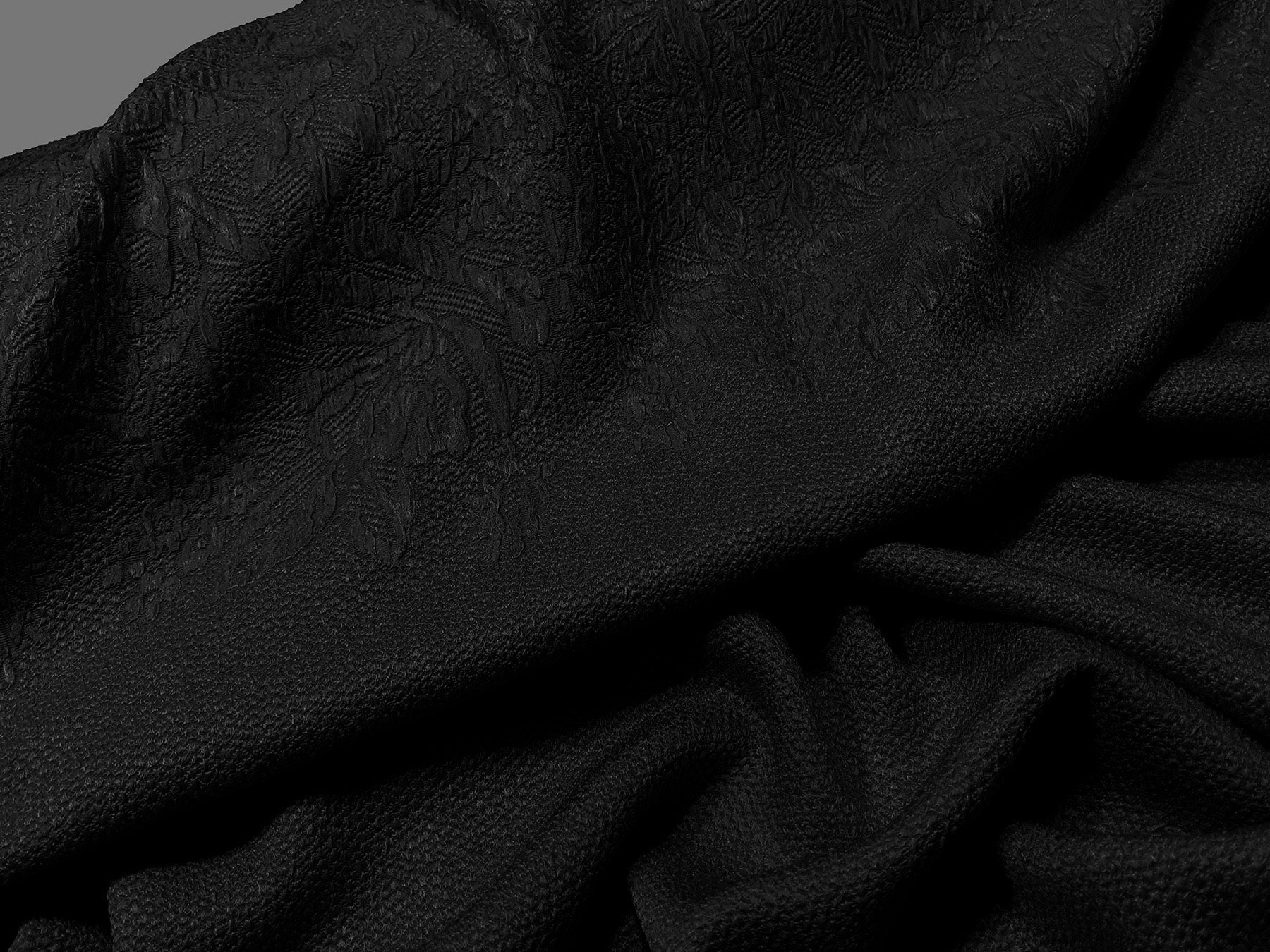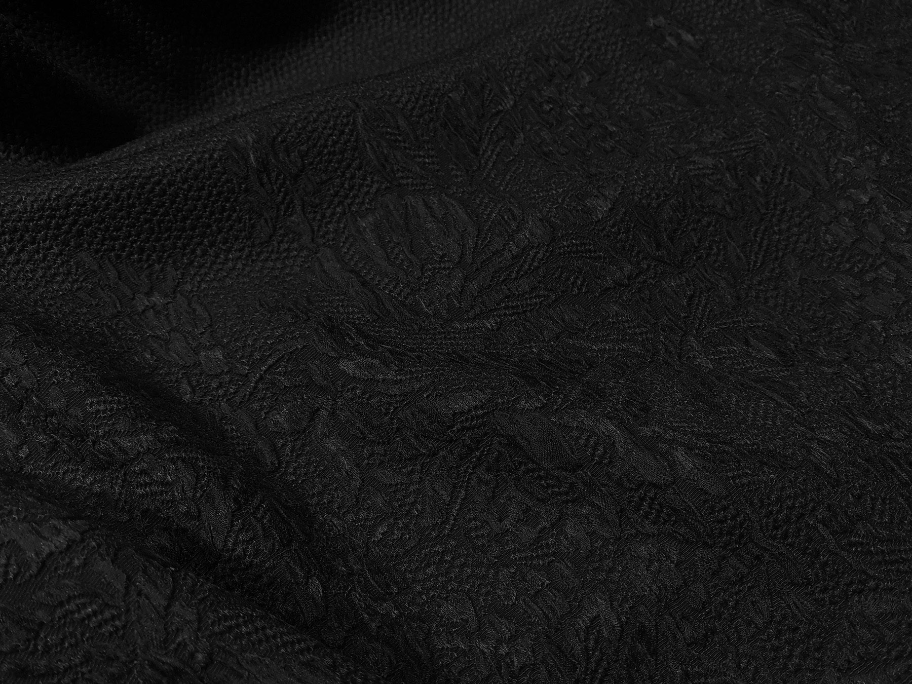 Nei tessuti di seta pura la lavorazione jacquard, con il contrasto fra lucido e opaco, crea un piacevole effetto di tridimensionalità. Perfetto per la realizzazione di abiti ampi e sinuosi grazie alla sua morbidezza e caduta, può essere utilizzato anche per capi più lineari che mettono in evidenza la ricchezza e la particolarità di questo tipo di tessuto. Pannello di 150 cm.
