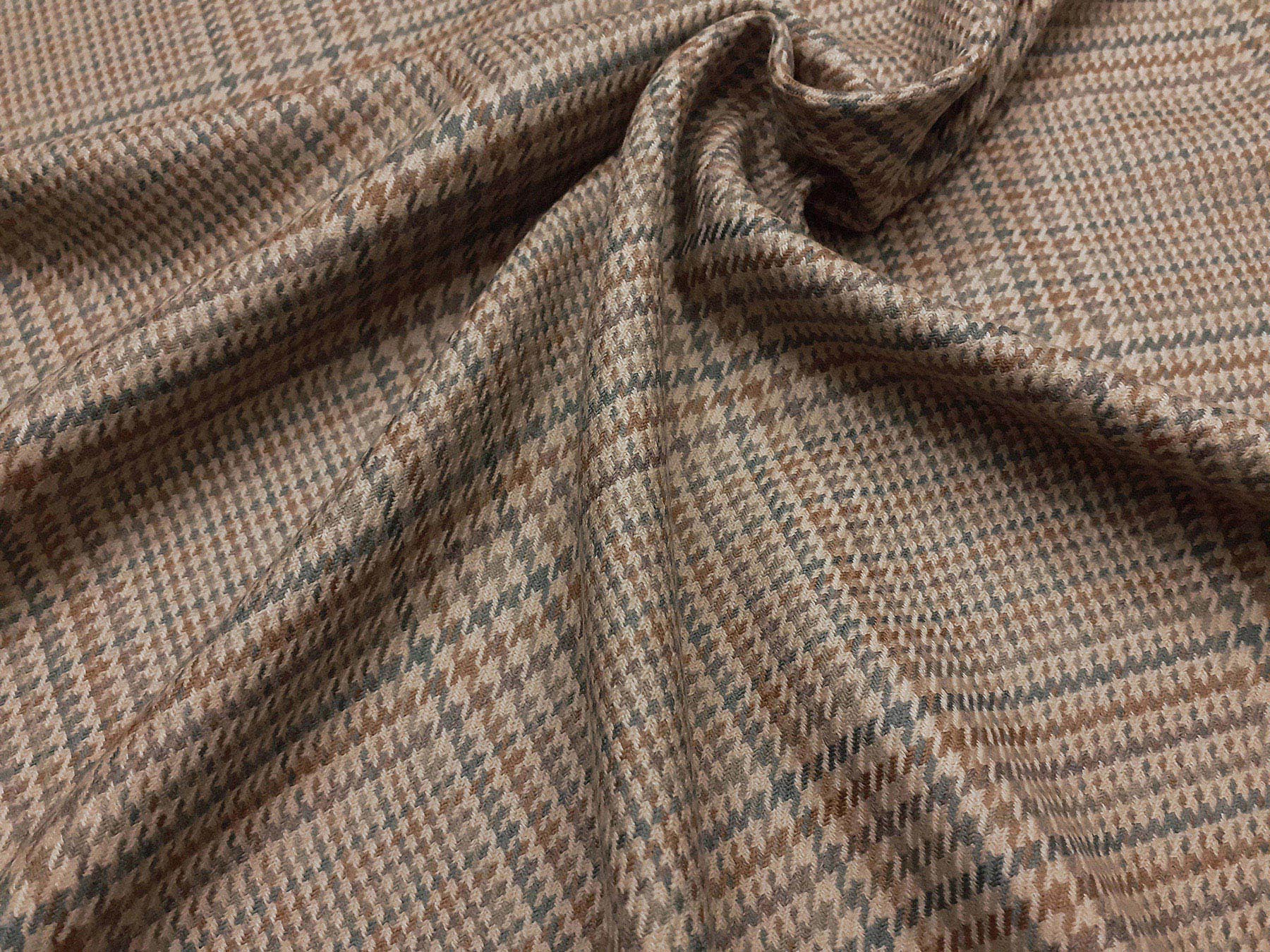 Flanella in lana beige Principe di Galles colori pastello