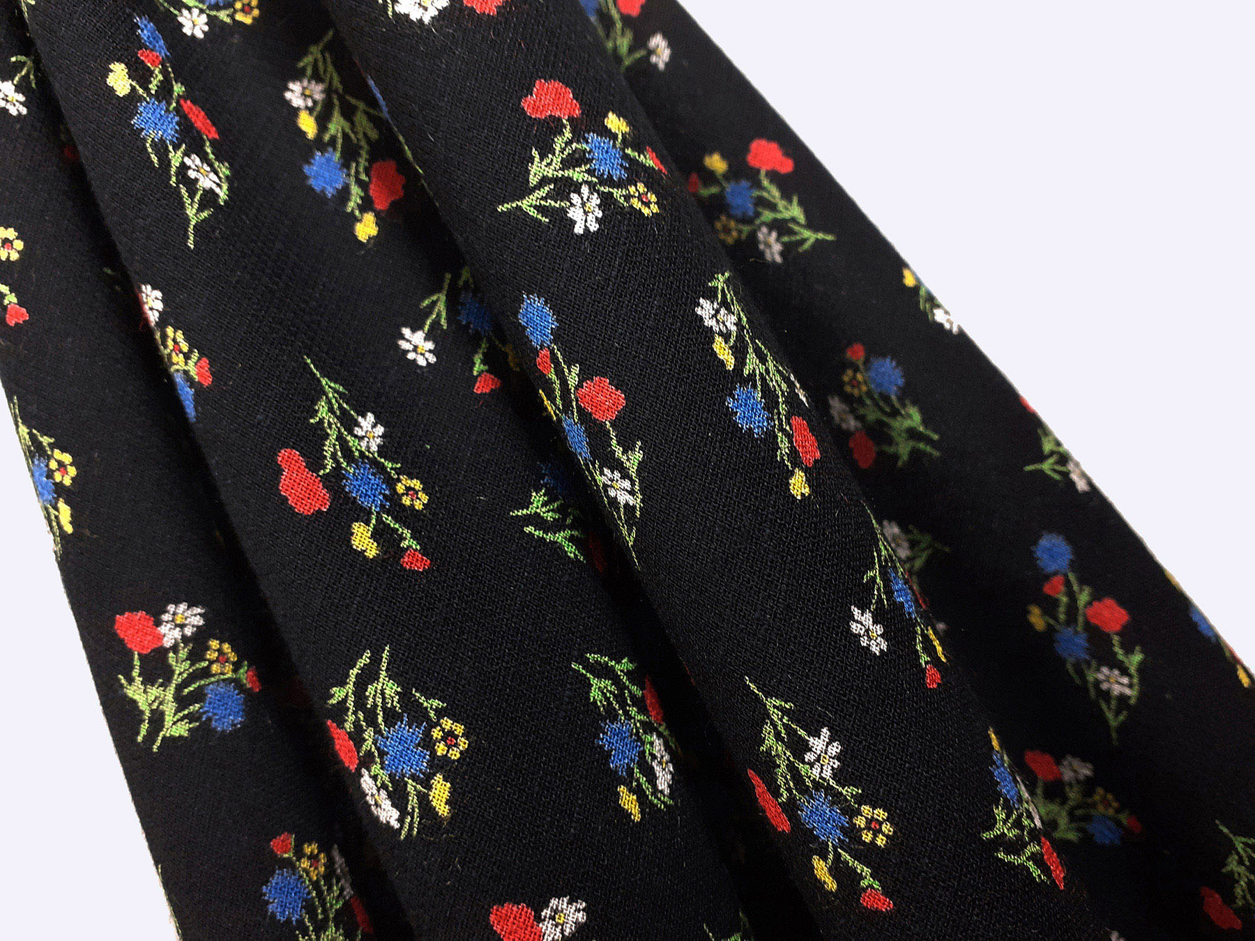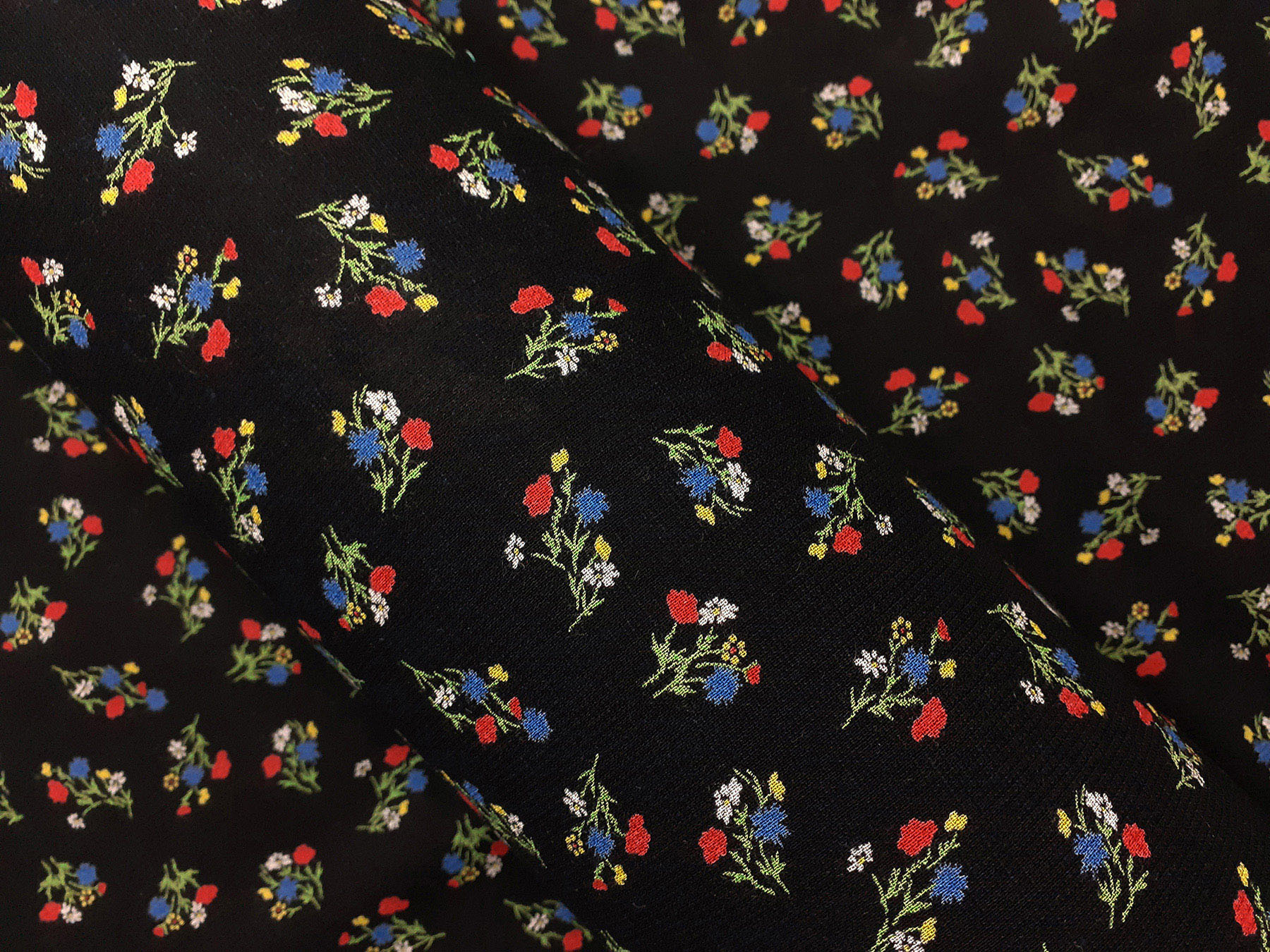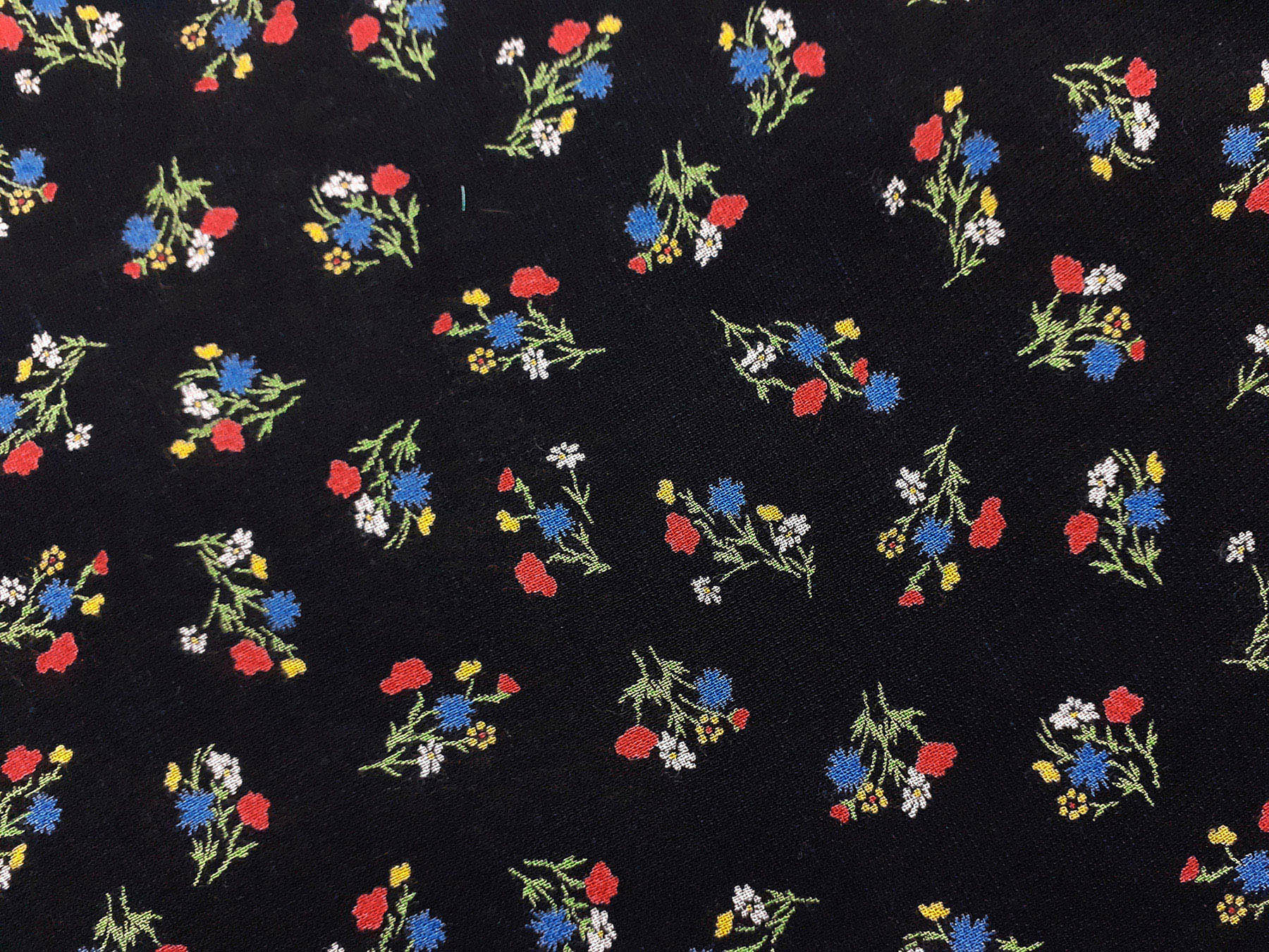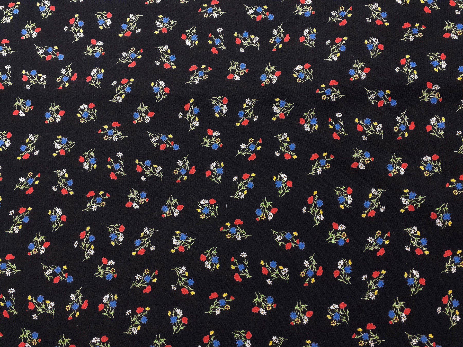 Tessuto in lino e viscosa fantasia floreale fondo nero